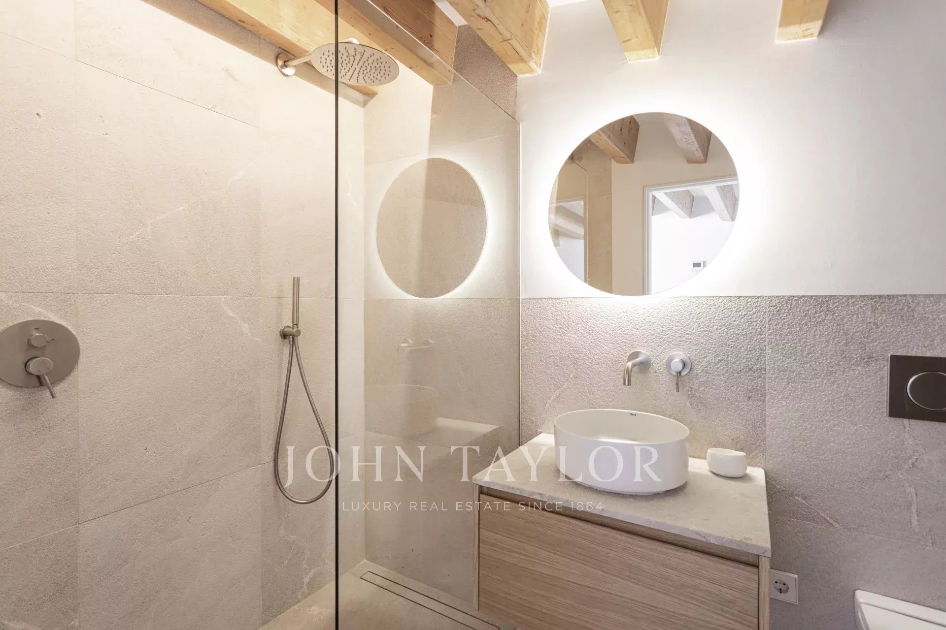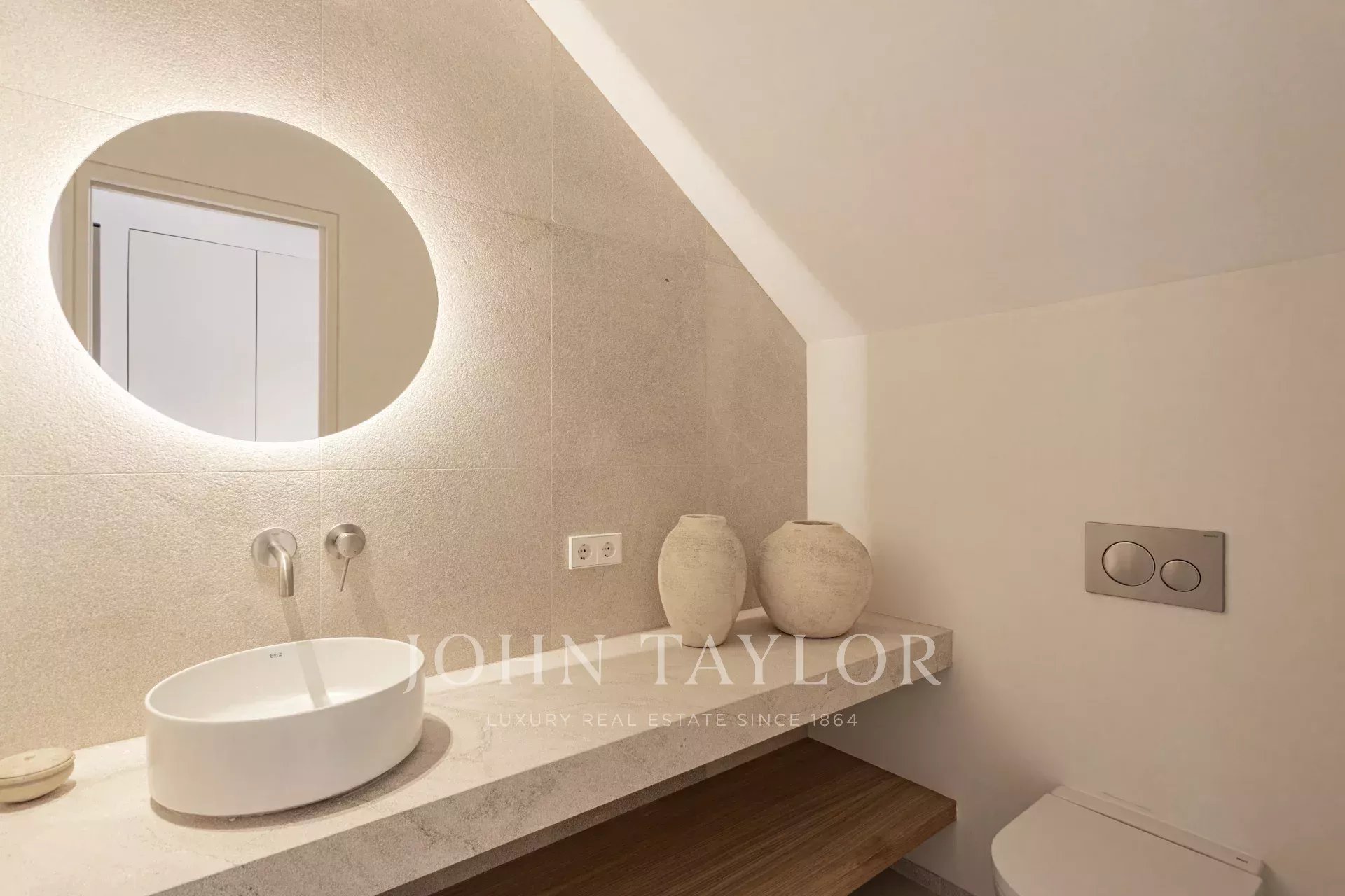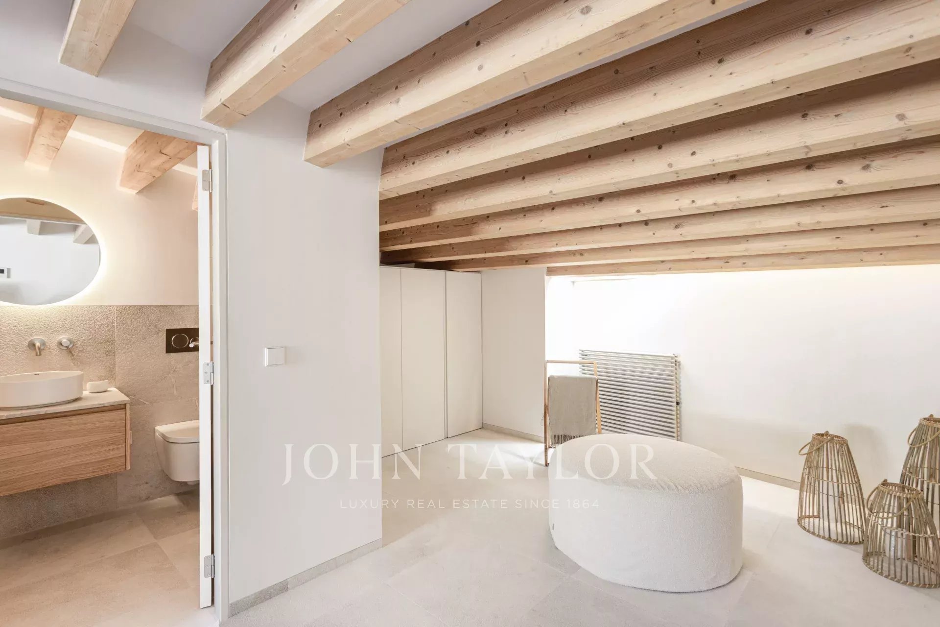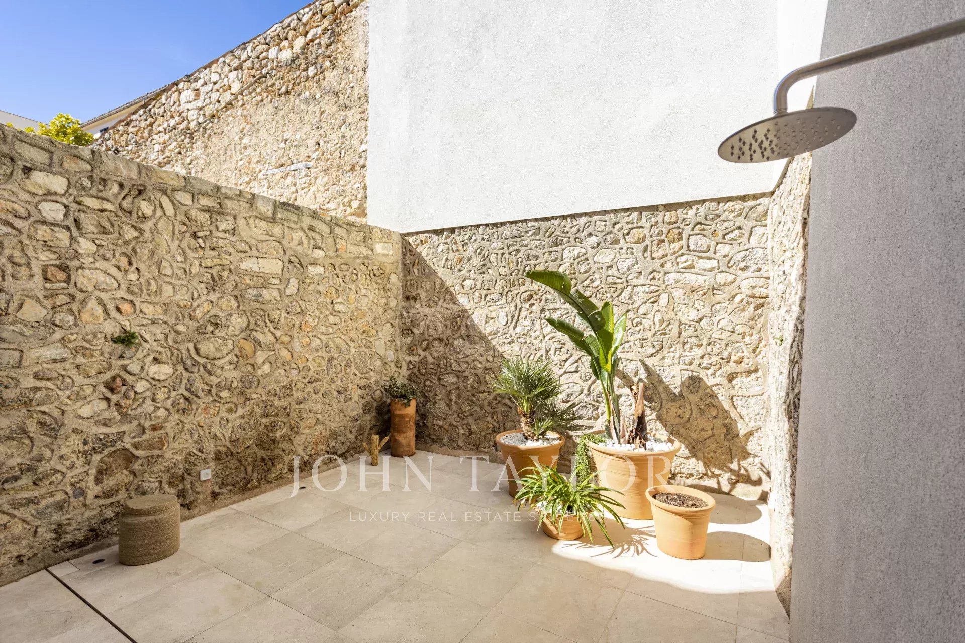 Esta deslumbrante moradia em banda com três quartos, três casas de banho e uma casa de banho para hóspedes foi submetida a uma renovação completa, transformando-a num espaço moderno e luxuoso com um toque de charme rústico. Com uma localização privilegiada no centro da cidade, apenas a dois minutos a pé da icónica igreja, esta propriedade oferece o melhor de dois mundos: conveniência urbana e o ambiente tranquilo de um ambiente rural. Ao entrar na casa, será recebido por uma sensação de calor e elegância. As paredes de pedra e as vigas de madeira conferem carácter e autenticidade aos espaços, enquanto os materiais de alta qualidade utilizados em toda a propriedade garantem um nível inigualável de qualidade e conforto. O primeiro andar alberga um único espaço, a sala de estar com lareira, bem como uma sala de jantar e uma cozinha de design totalmente equipada com electrodomésticos de última geração e acabamentos de primeira qualidade. A partir daqui, pode aceder a um dos dois terraços para desfrutar de refeições ao ar livre ou relaxar sob o sol quente do Mediterrâneo. A propriedade tem radiadores em todas as divisões e ar condicionado canalizado.