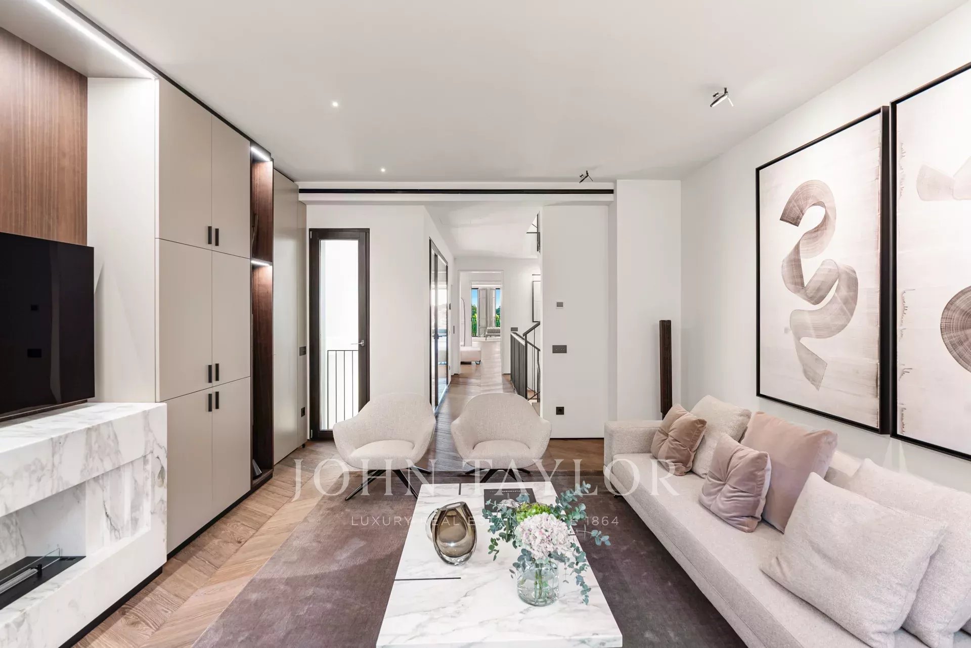 A propriedade oferece 792 m2 de área de habitação interior construída em quatro pisos, acessíveis através de um elevador. O interior elegante foi transformado para oferecer quatro suites requintadas com roupeiros embutidos e vista para o mar, três salas de estar elegantes em plano aberto com lareiras, um spa com sauna e banho turco, uma área de fitness e uma área de entretenimento verdadeiramente espetacular. Um impressionante terraço adicional de 120 m2 no último piso com um churrasco a gás, uma espaçosa área de refeições, uma sala de estar e uma área de relaxamento é o local perfeito para desfrutar do exterior da propriedade, quer seja para aproveitar o sol, relaxar ou divertir-se com amigos e família.