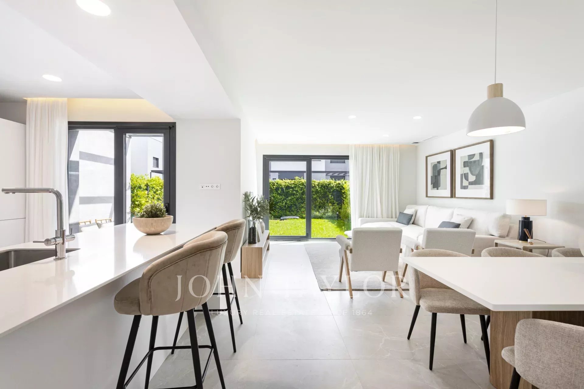 Na parte de trás, um jardim privado com alpendre e piscina convida-o a relaxar, receber convidados e desfrutar do maravilhoso clima de Maiorca enquanto cuida do seu bem-estar.