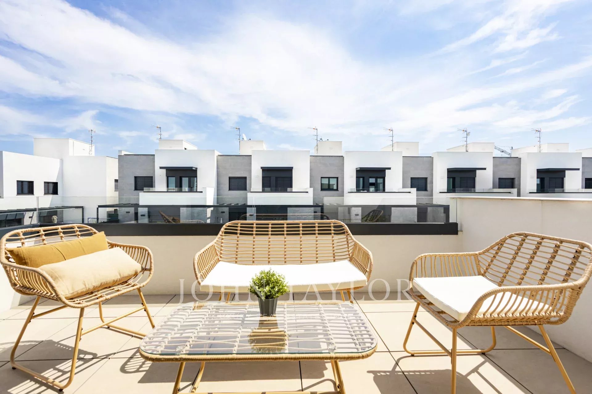 No terraço, uma área chill-out com mesa de jantar é perfeita para descobrir novas formas de desfrutar da vida ao ar livre, partilhar refeições com entes queridos ou admirar o pôr do sol.