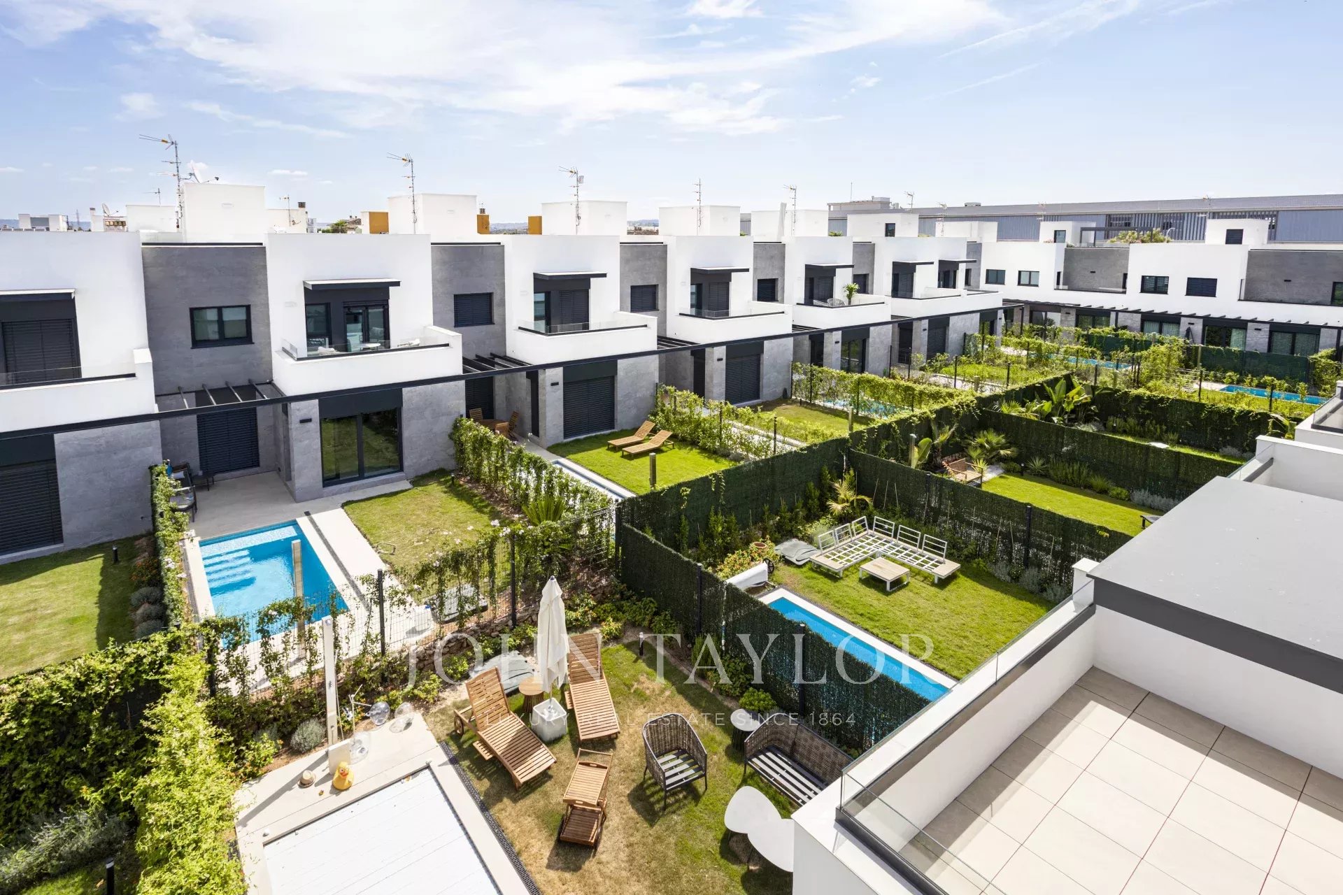 Moradias em banda com jardim e piscina