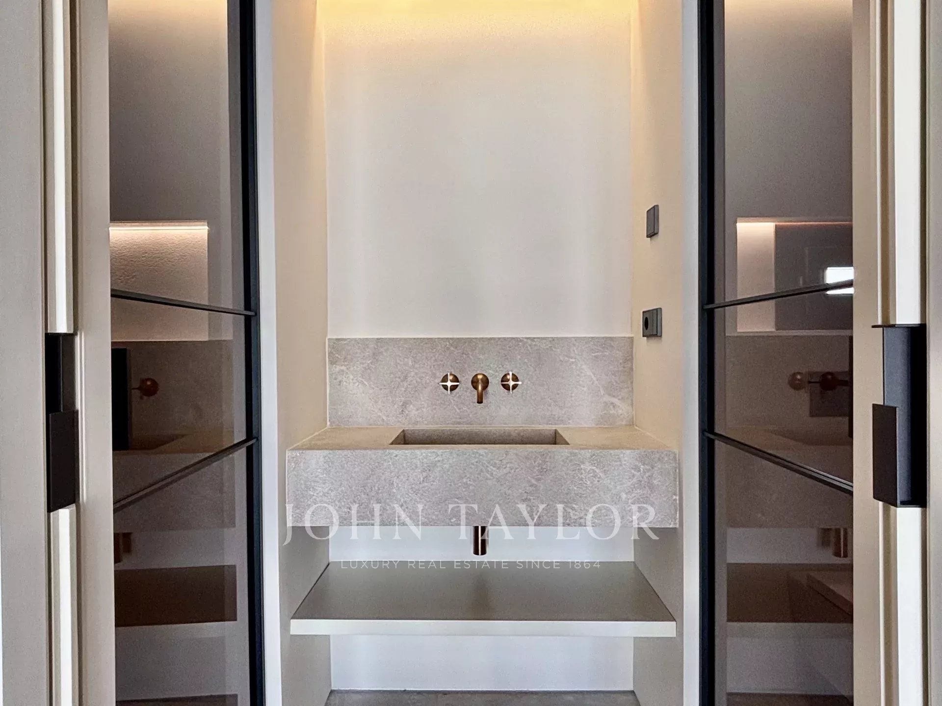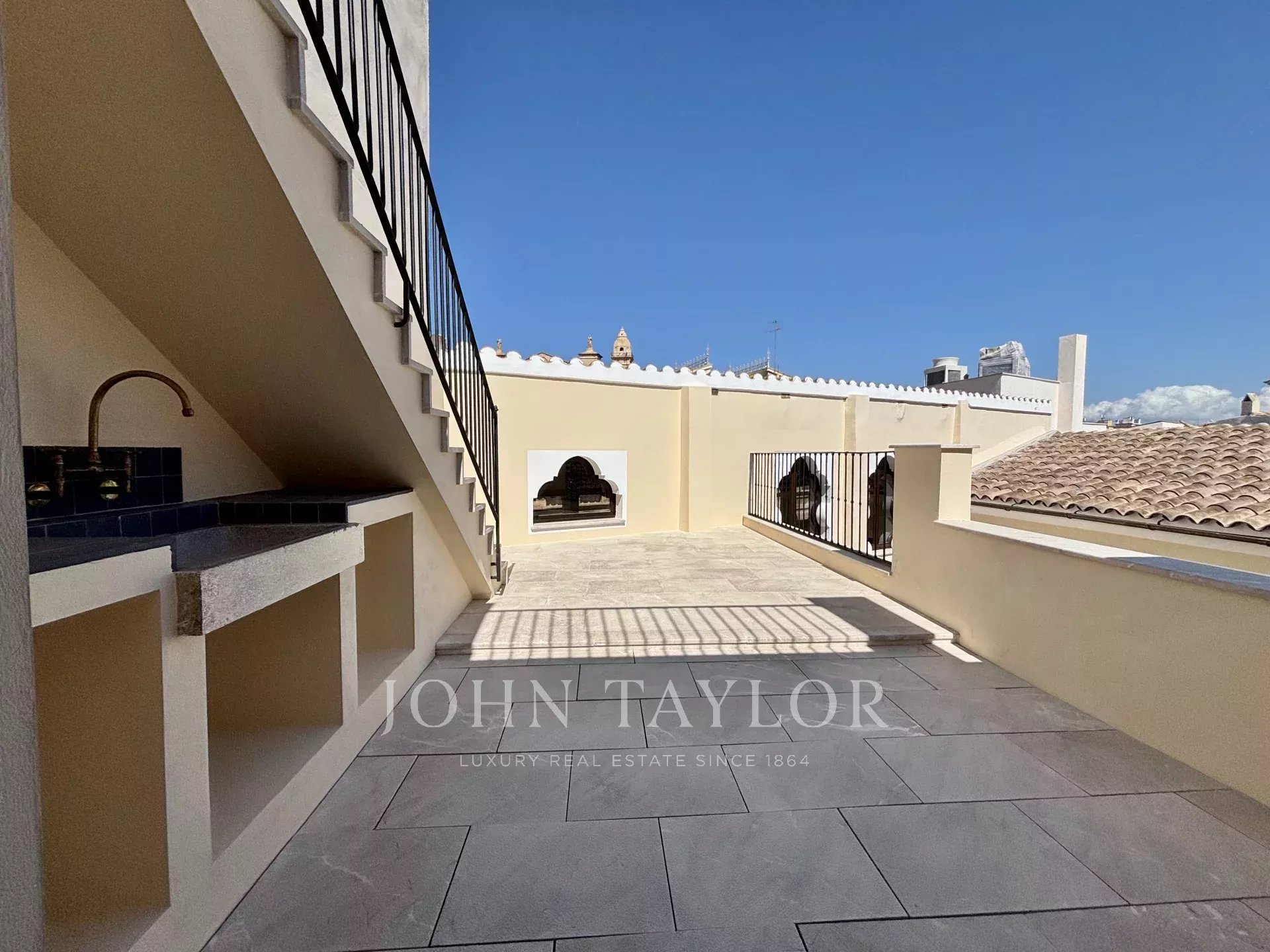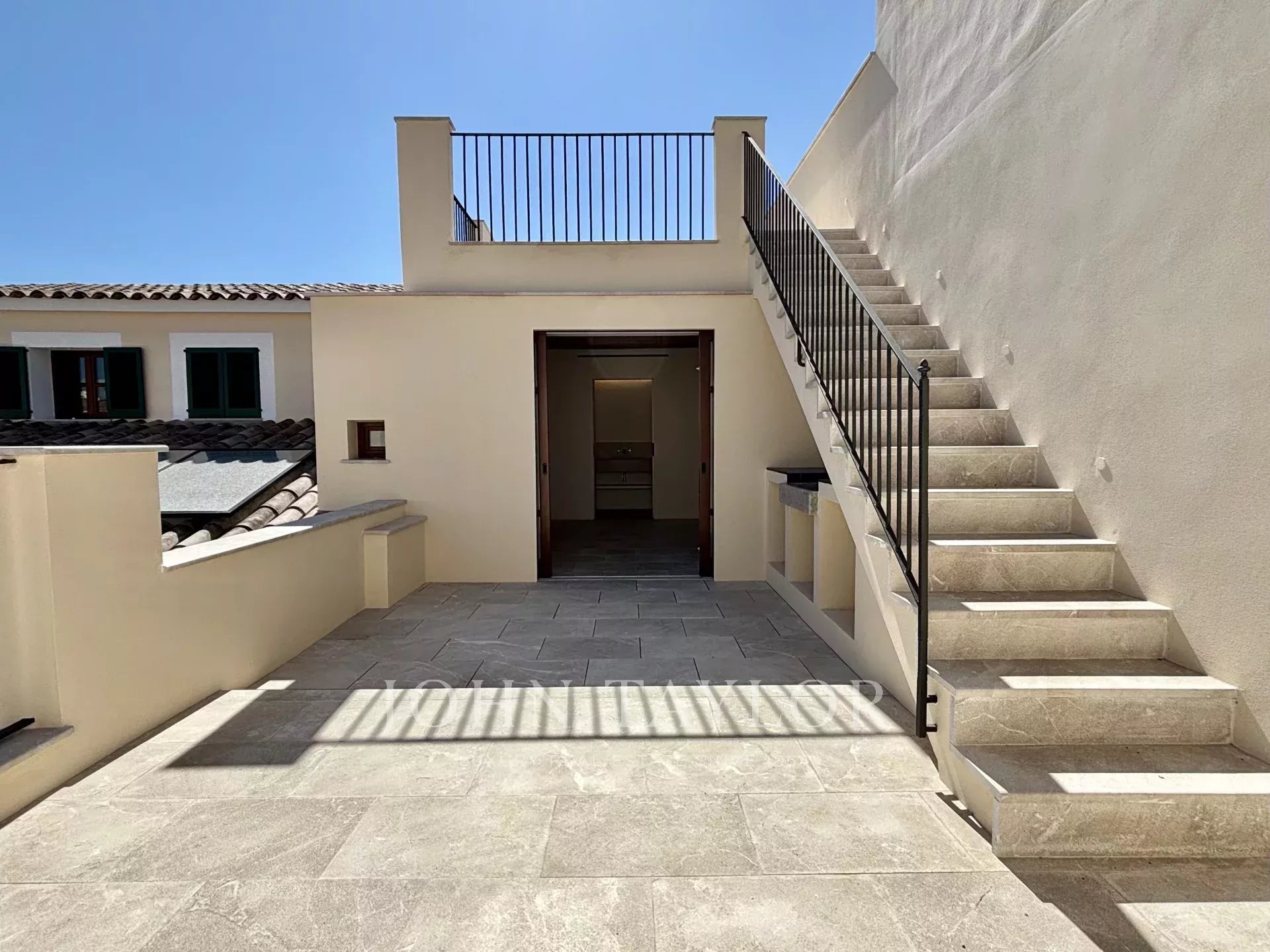 Existem três apartamentos adicionais, cada um com um quarto e uma casa de banho, a serem renovados, oferecendo a opção de aumentar para sete quartos e oito casas de banho. A propriedade inclui vários terraços e um pátio interior.