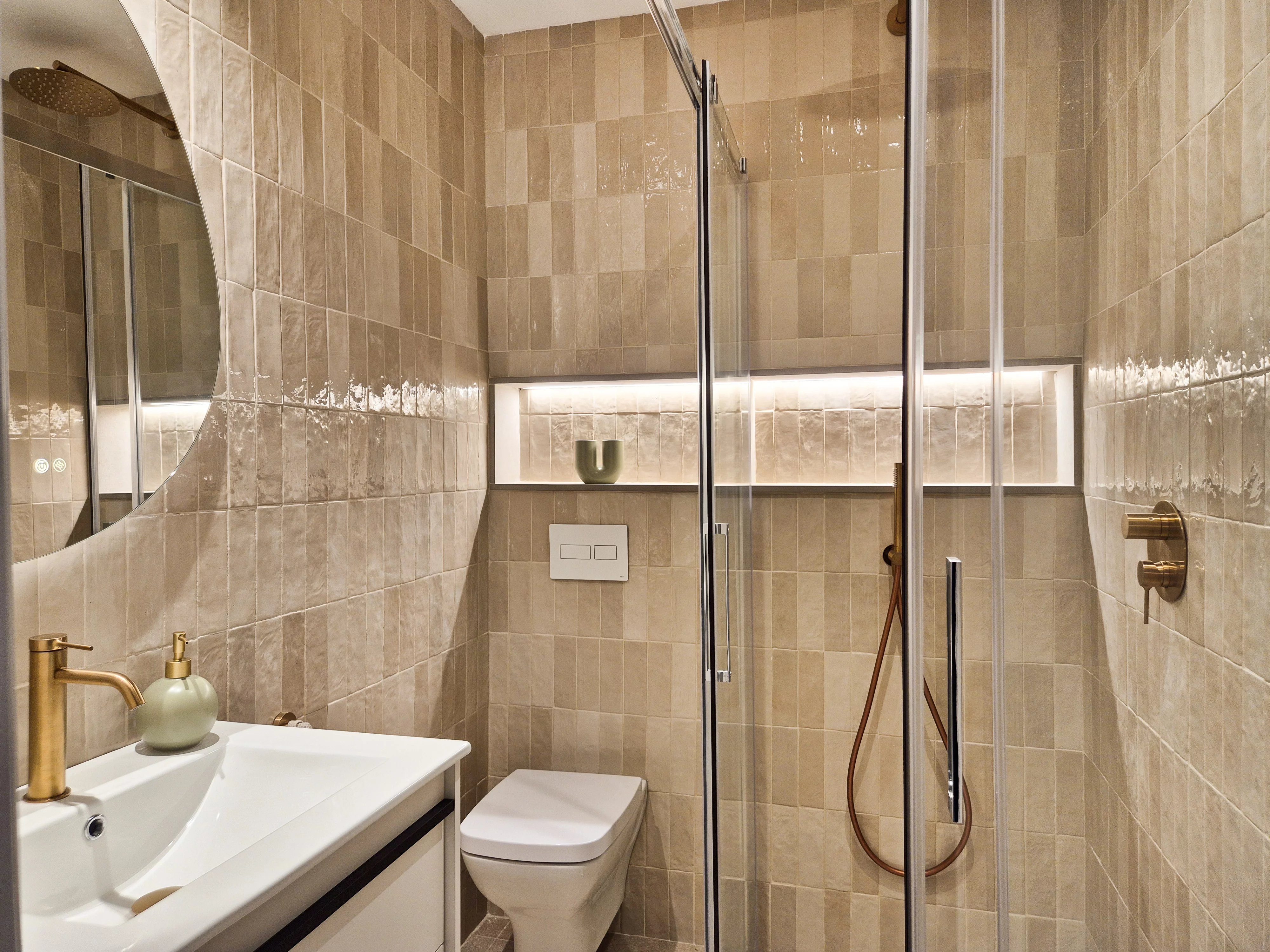 A casa está situada num terreno de 300 m² e dispõe de controlo climático aerotérmico avançado, aquecimento por piso radiante e ar condicionado individual em todos os quartos. Os materiais elegantes, o pavimento de grande formato e os acessórios de cobre feitos à medida elevam os interiores, enquanto uma garagem mecanizada acrescenta uma comodidade rara nesta área exclusiva.