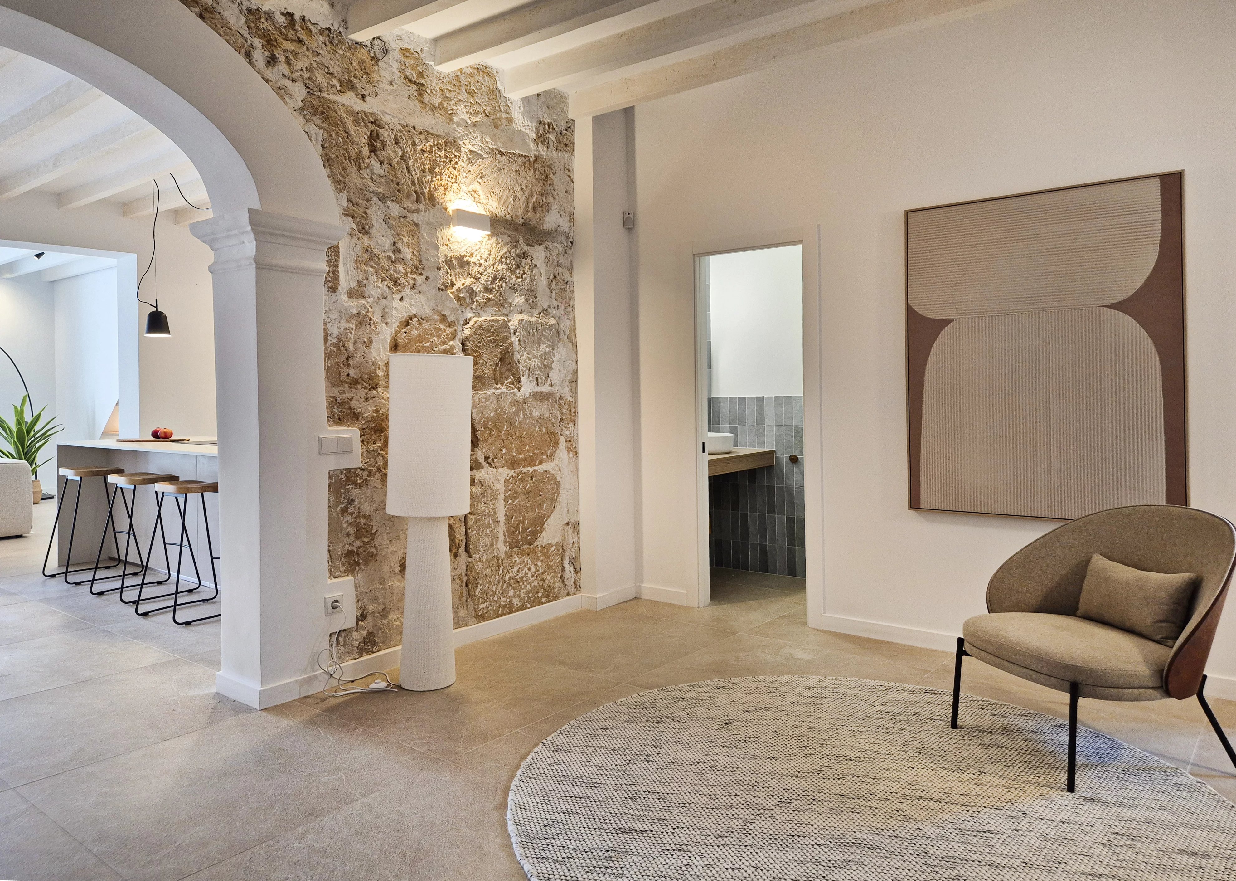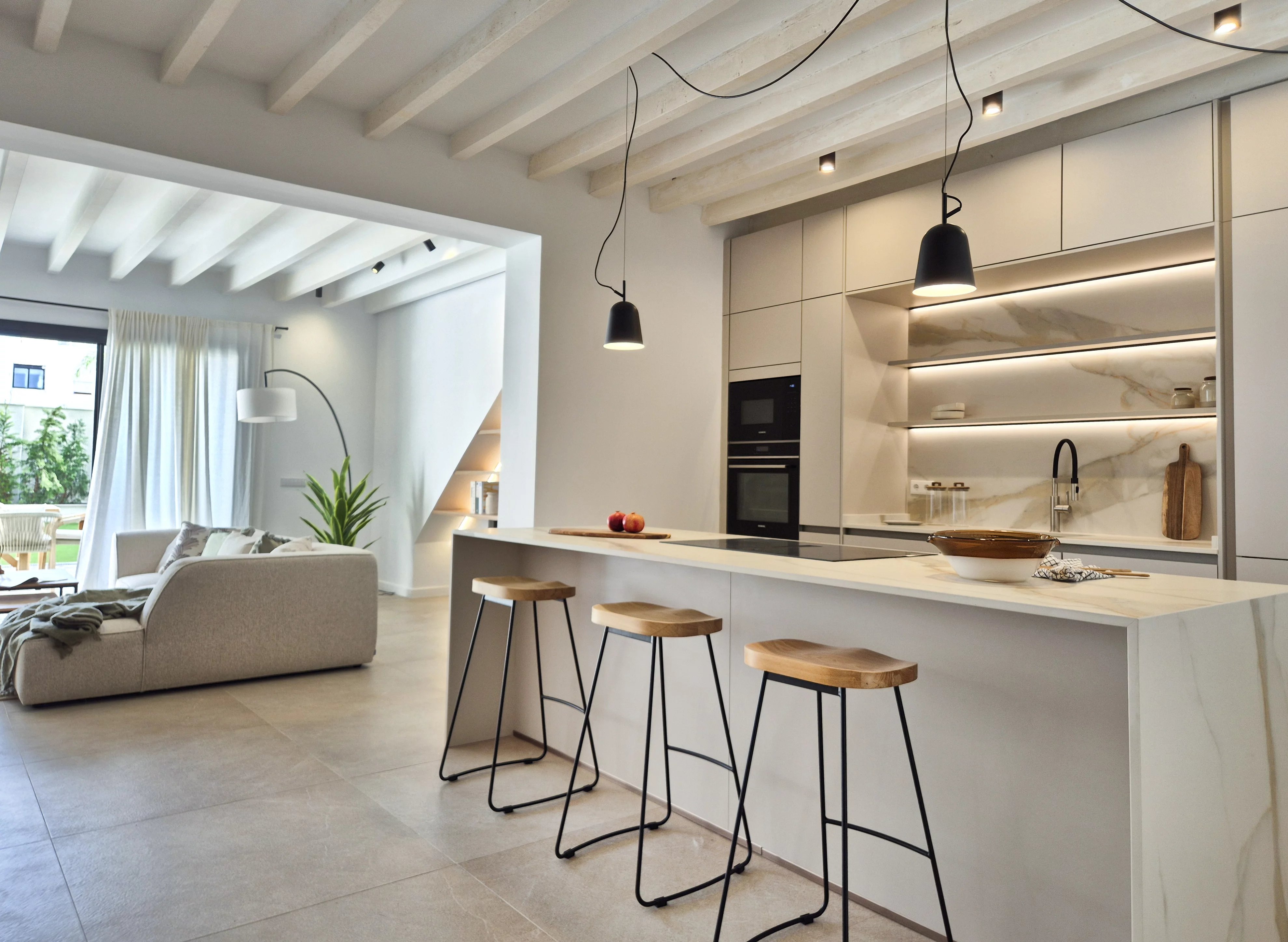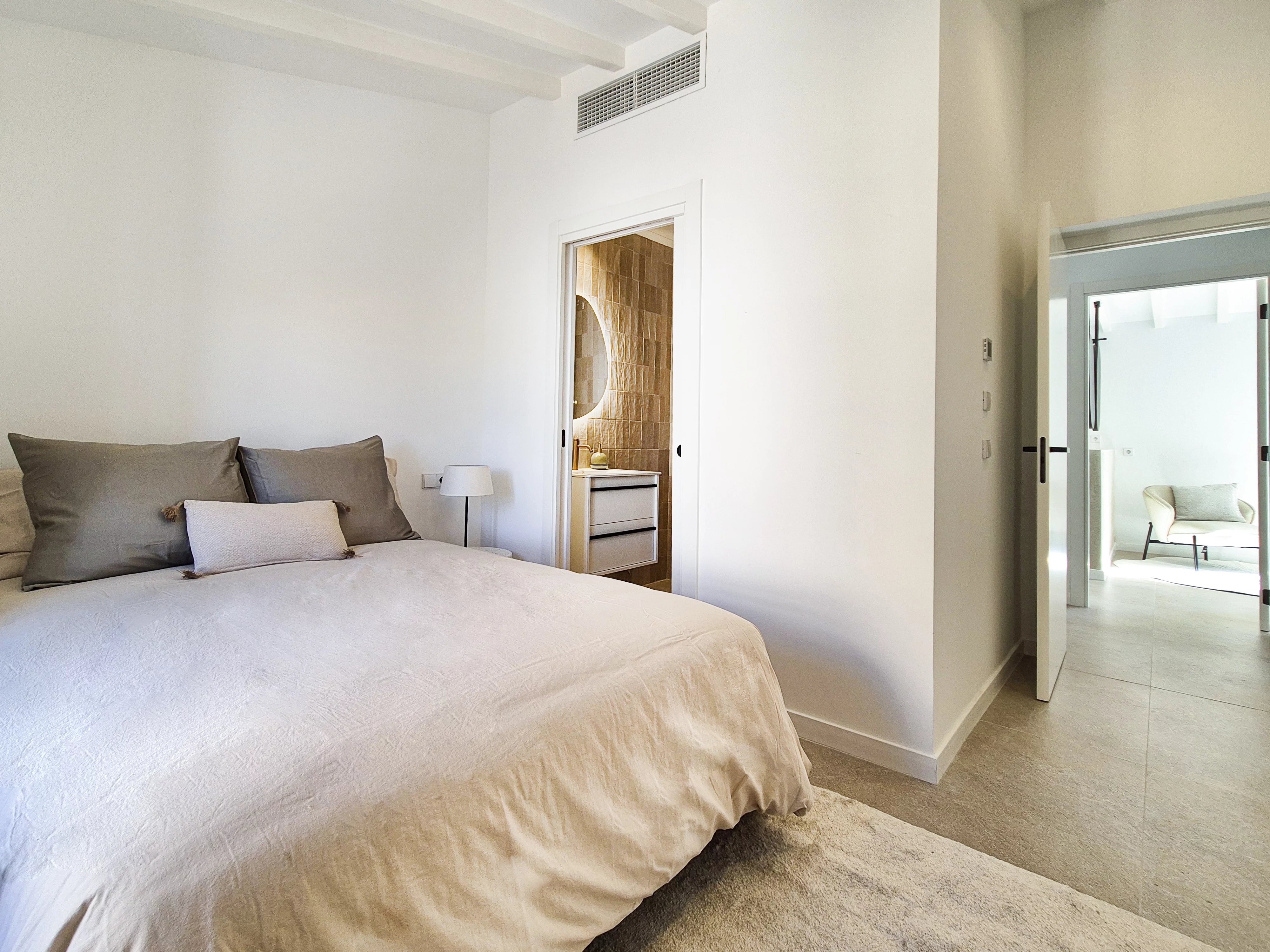 Os tectos duplos, os detalhes em pedra e uma sala de estar e jantar em plano aberto e iluminada pelo sol conduzem a um terraço privado e a um jardim paisagístico, perfeitos para entretenimento ou para relaxar sob o sol de Maiorca. Três quartos espaçosos com casa de banho privativa no piso superior proporcionam a máxima privacidade, criando um retiro sereno.