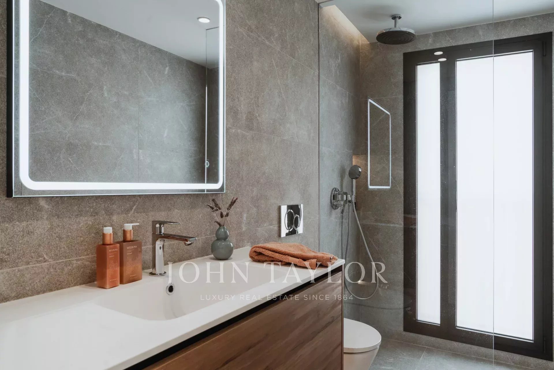 No andar de cima, dois quartos grandes partilham uma casa de banho bem decorada, enquanto a suite principal tem uma casa de banho privativa e um terraço privado com vistas deslumbrantes. Um terraço no telhado com 44 m² oferece espaço adicional para entretenimento, banhos de sol ou para criar a sua cozinha exterior de sonho.
