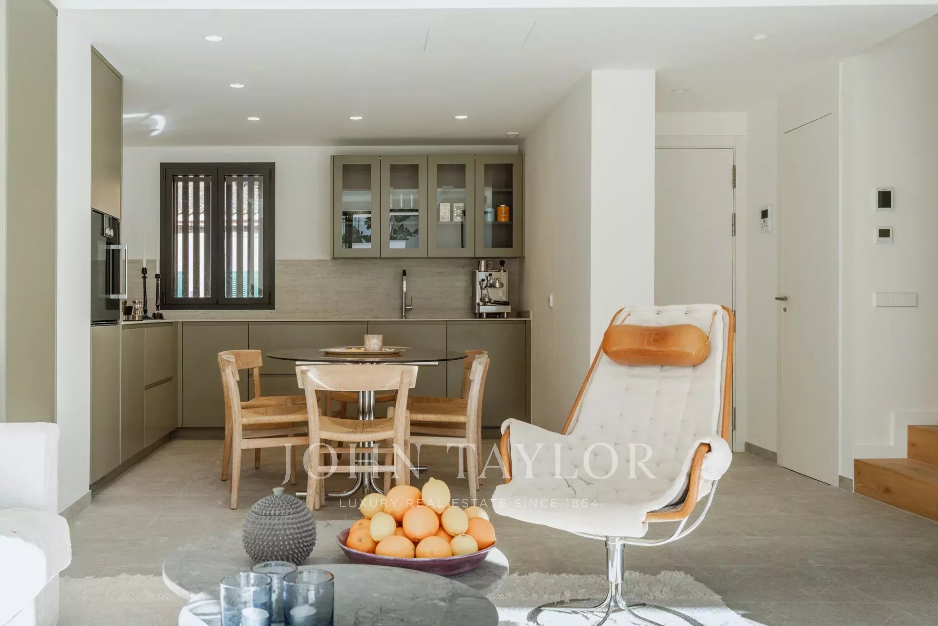 Com 161 m² distribuídos por dois pisos, esta casa tem uma espaçosa área de estar com acesso direto a uma varanda de 22 m² virada a sul, perfeita para apanhar sol com total privacidade. A espaçosa cozinha Gaggenau, em plano aberto e totalmente equipada, é o sonho de um chef, com filtragem avançada de água, capacidade para água com gás instantânea e um frigorífico de tamanho normal. A cozinha está perfeitamente ligada à área de estar e ao canto de leitura e, ao abrir totalmente as janelas do terraço, o interior torna-se um só com o exterior.