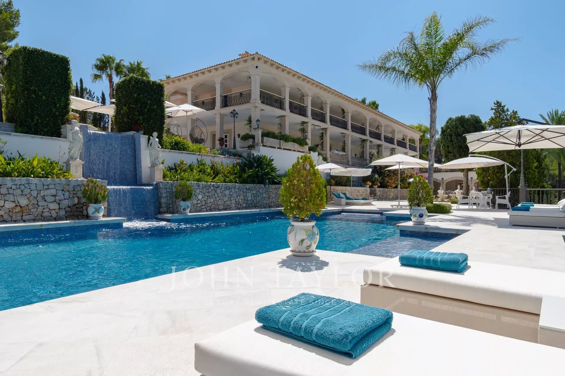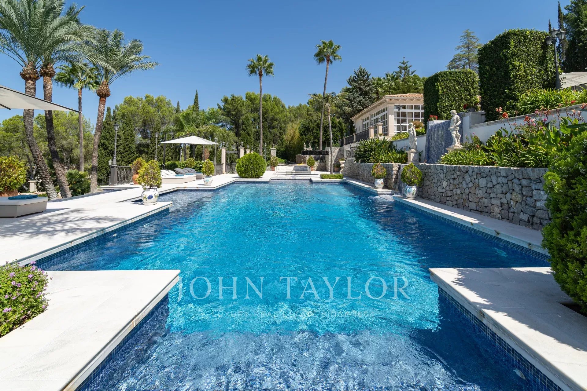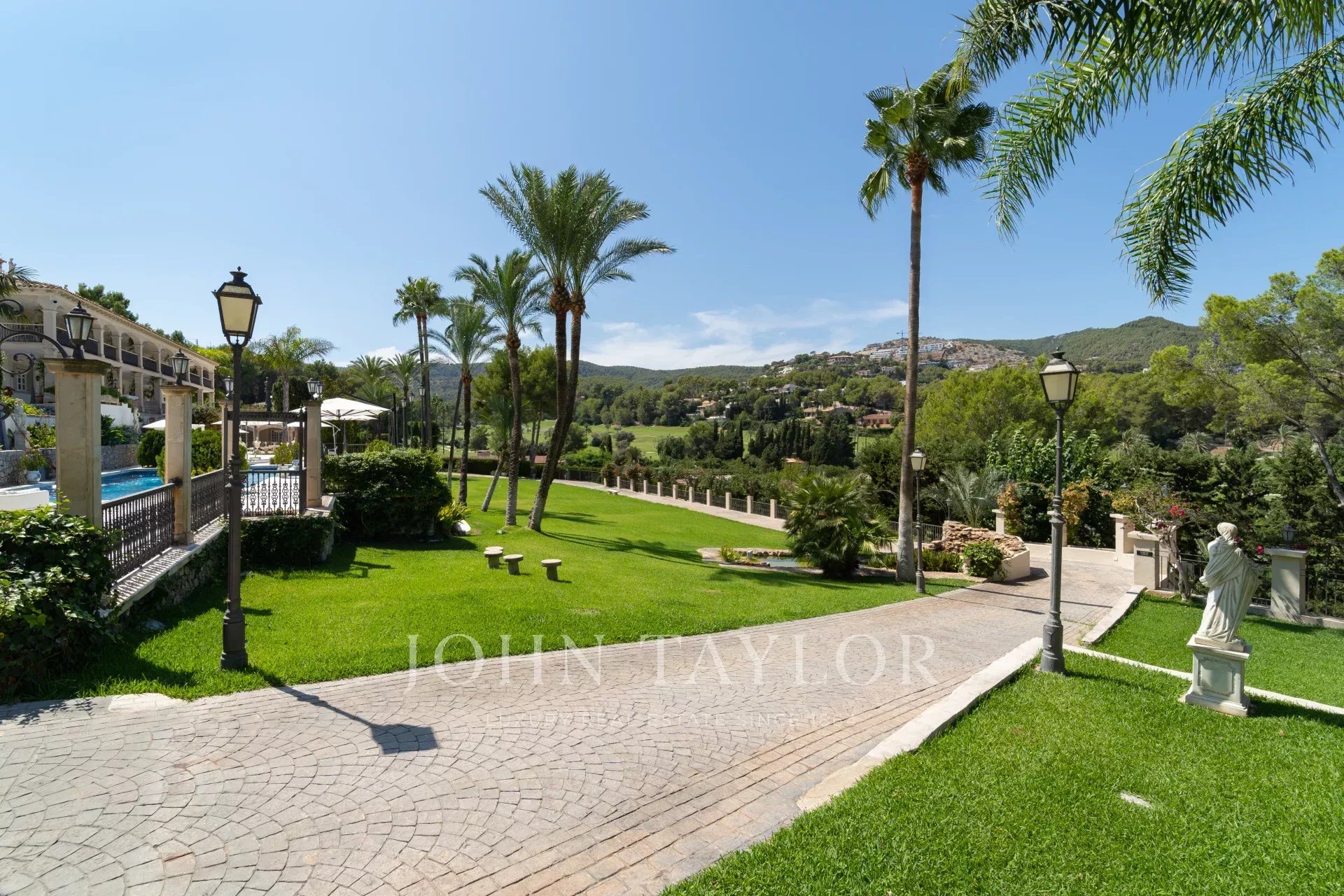 Empoleirado majestosamente num anel de muros altos e iluminados, o Castello M é uma das propriedades mais emblemáticas e prestigiadas de Son Vida, oferecendo vistas deslumbrantes de quase todos os pontos de vista. Esta extraordinária propriedade combina na perfeição a arquitetura neoclássica com a sofisticação moderna, apresentando detalhes requintados como um ninfeu, estátuas clássicas, fontes, uma cascata e tecnologia de ponta para casas inteligentes.