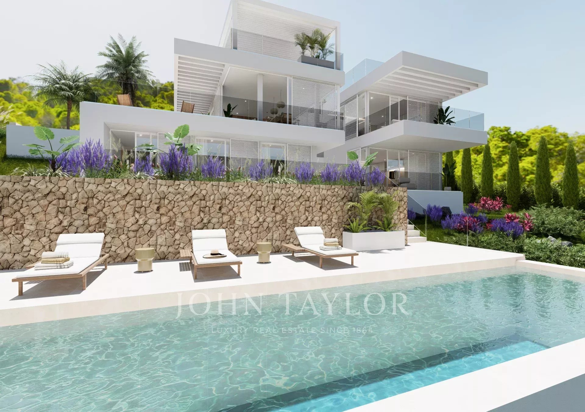 Foram efectuados estudos cuidadosos com grande diligência para garantir que a linha de visão deste lote tem vista para a baía de Camp de Mar. Foram igualmente efectuados estudos de elevação dos níveis dos terraços das salas de estar para garantir a vista para a baía e a privacidade de cada sala de estar. A curvatura do caminho de acesso, sendo o acesso rodoviário, assegurou que um lote não obstruísse a vista de outro.