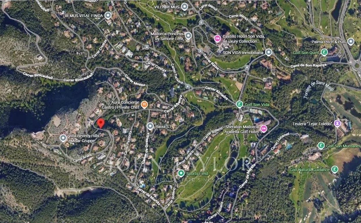 Uma excelente oportunidade para uma moradia de sonho é oferecida neste lote com um projeto de construção numa das áreas mais desejáveis de Son Vida. Com um terreno total de 3.053 m2, oferece as condições perfeitas para uma moradia de luxo com vistas panorâmicas sobre o bairro e muita privacidade. Projectada por um dos mais prestigiados gabinetes de arquitetura da ilha, a futura casa estabelecerá os mais elevados padrões de materiais, design e qualidade. Terá 6 quartos, 6 casas de banho, uma piscina de água salgada com 73m2, um spa e uma área de fitness e estacionamento para até 5 carros. Sendo uma das quatro propriedades que estão a ser desenvolvidas no bairro, esta é verdadeiramente uma oportunidade única. Existe a oportunidade de construir o projeto com os arquitectos já envolvidos. O preço indicado não inclui qualquer outra conceção, construção ou alterações ao projeto atual.