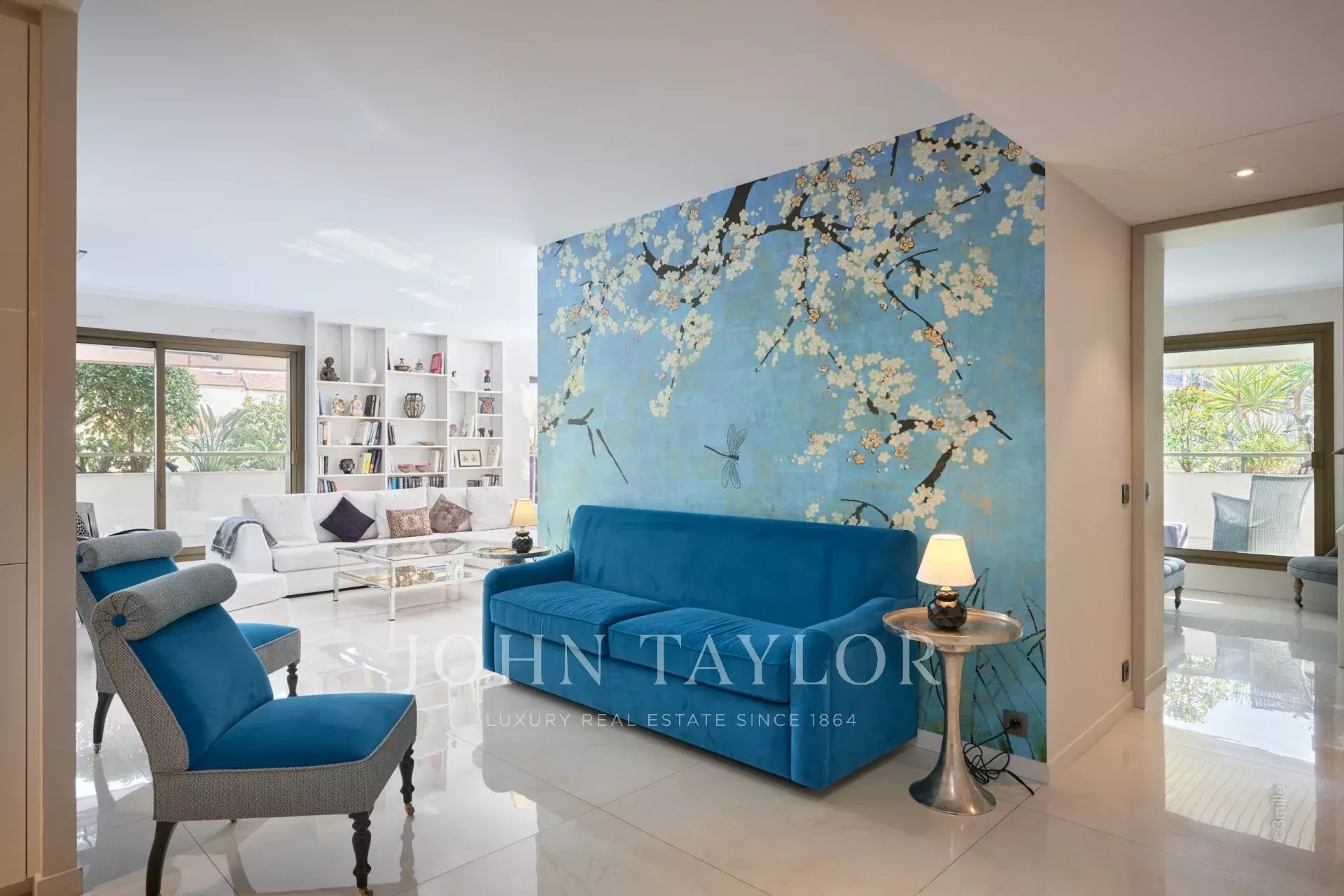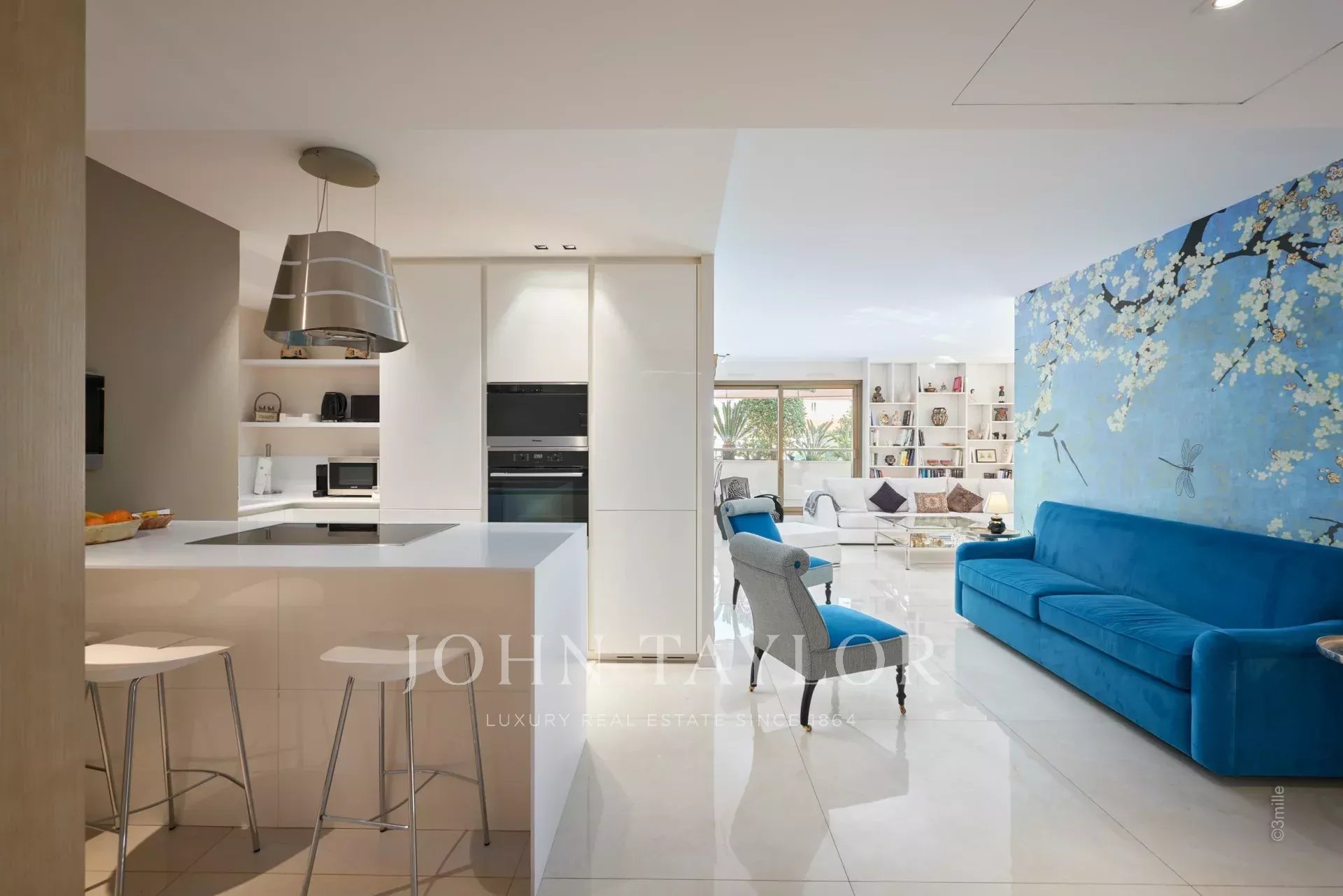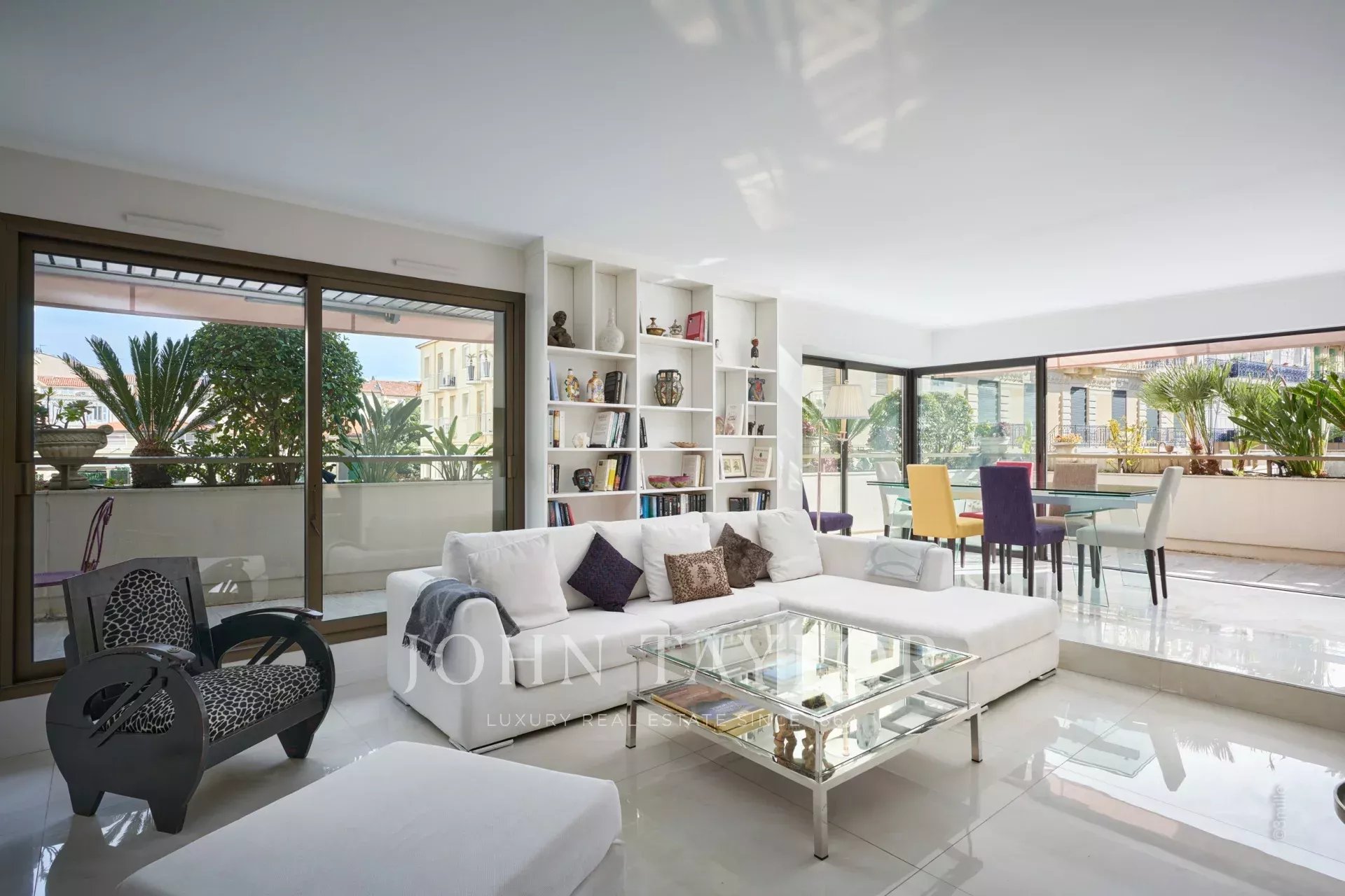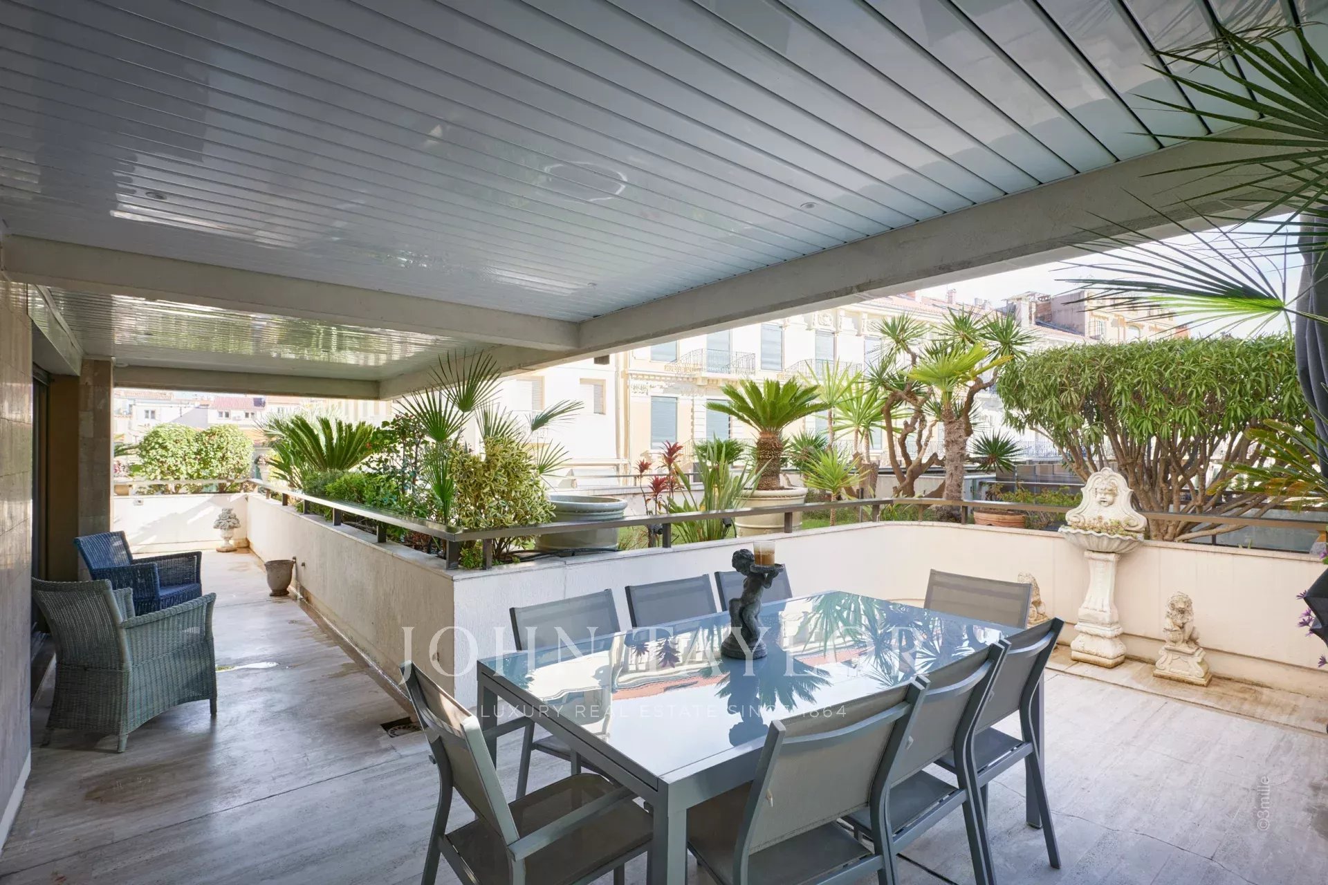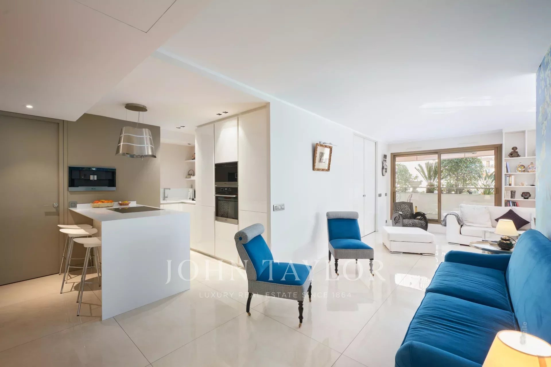 No coração de Cannes, perto do Palais des Festivals, apartamento de luxo com 106 m2 de área habitacional, totalmente renovado e climatizado, com um terraço de 46 m2.