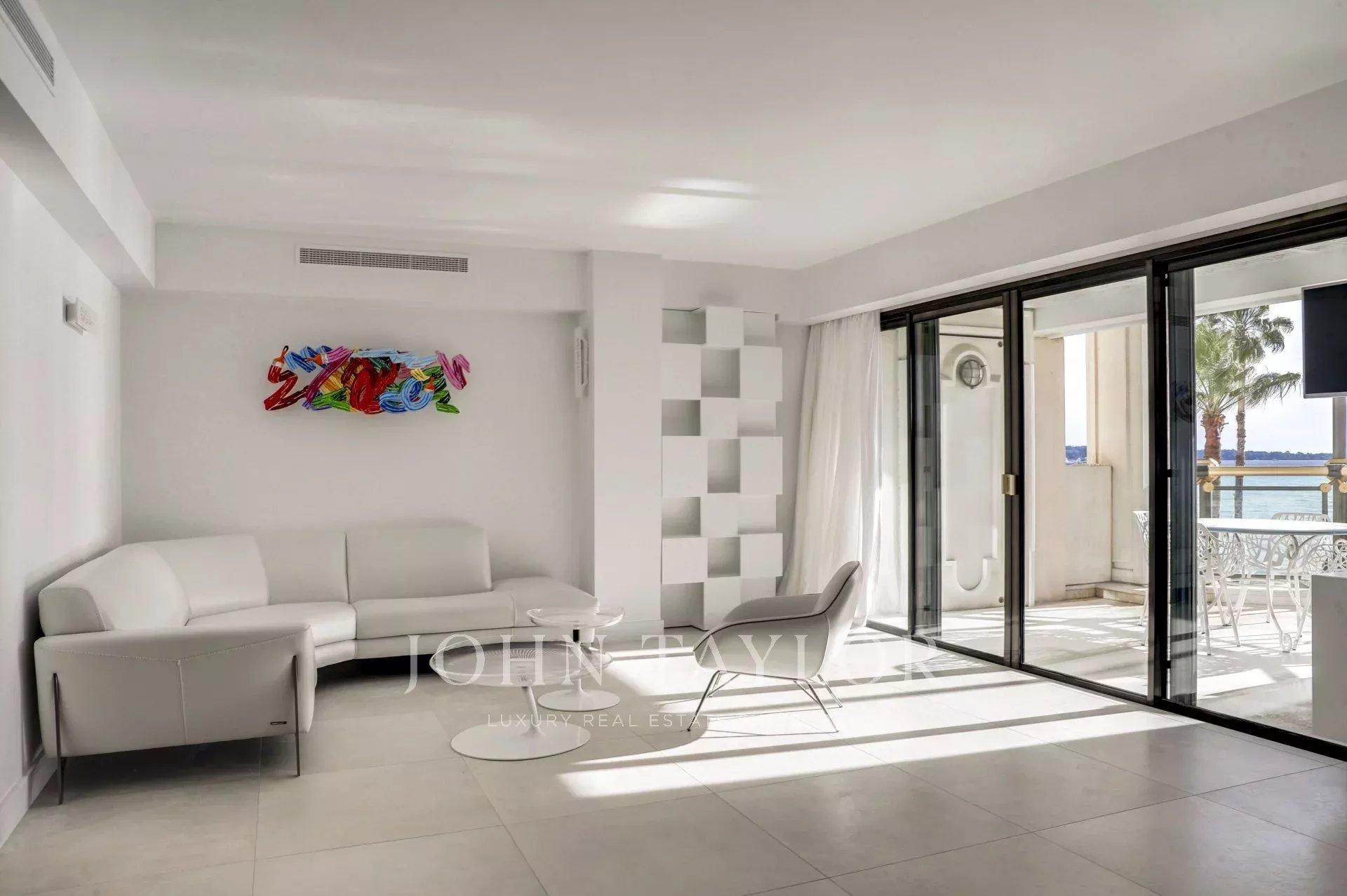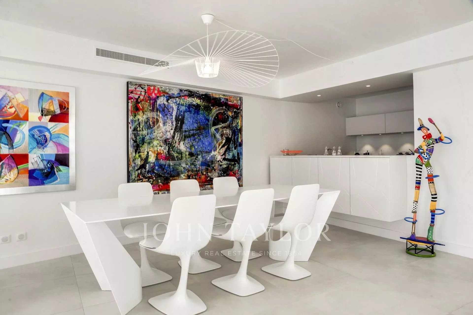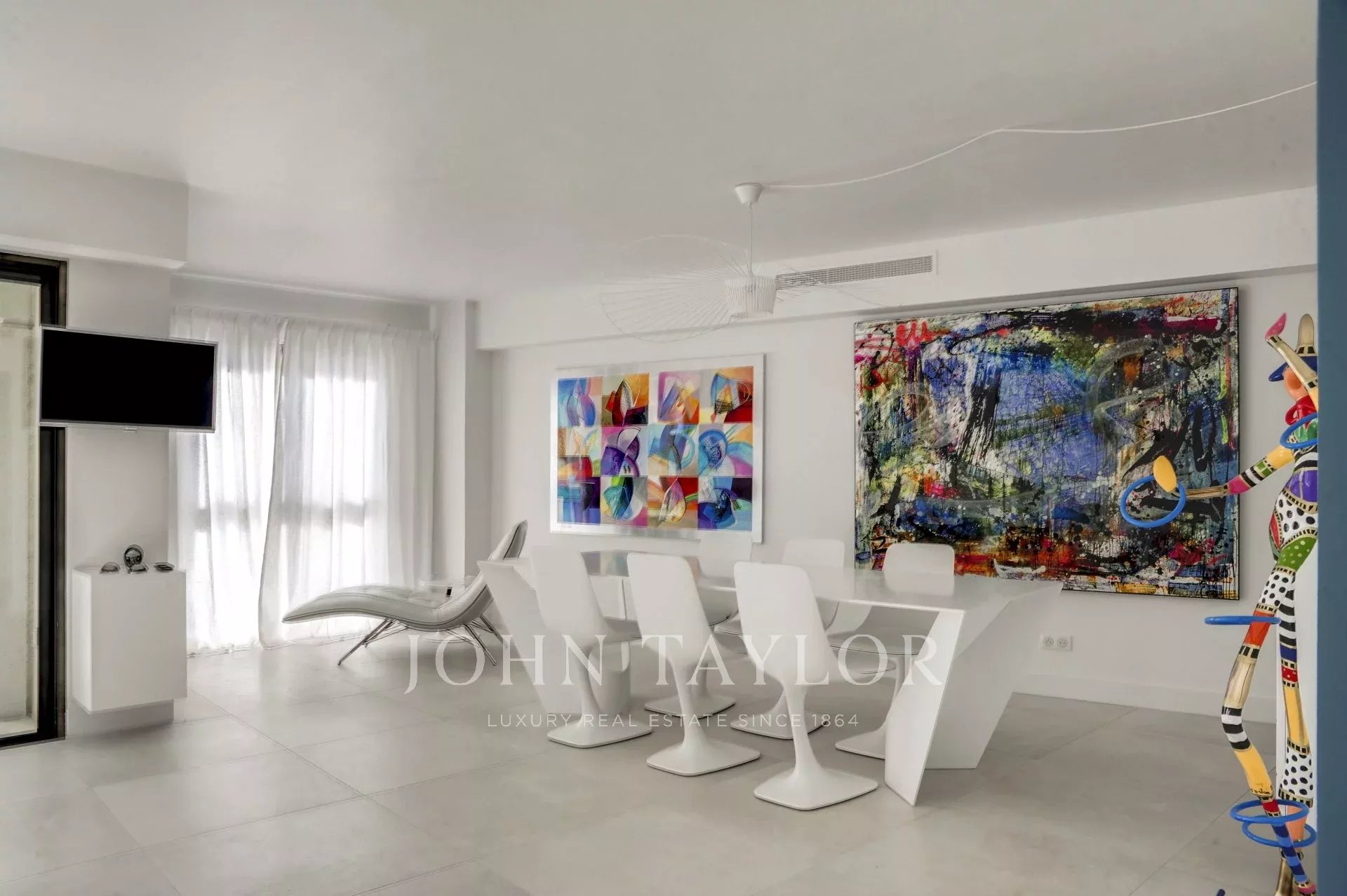 A poucos minutos a pé do Palais des Festivals, no 3º andar de uma das residências de prestígio da Croisette, o RELAIS DE LA REINE, um apartamento totalmente renovado, com decoração contemporânea, oferece cerca de 120 m2 de espaço e uma vista privilegiada sobre a Baía de Cannes.