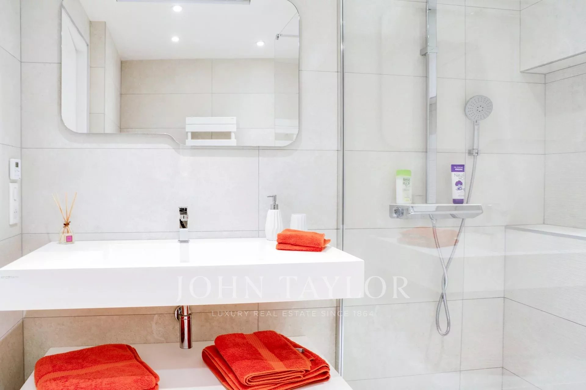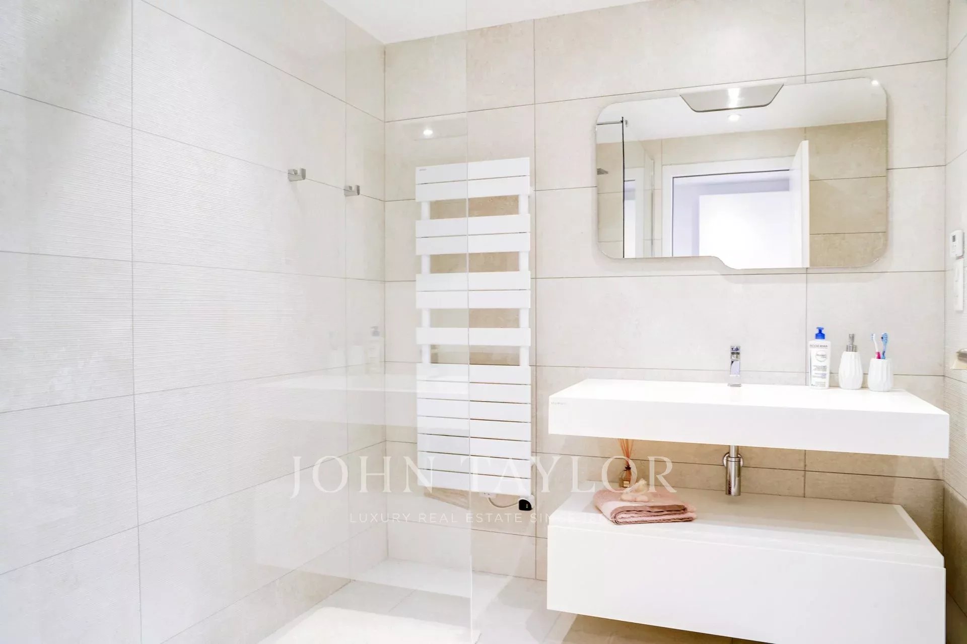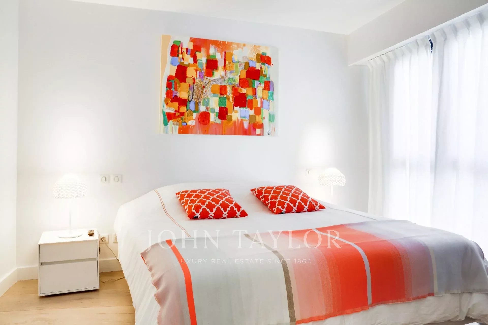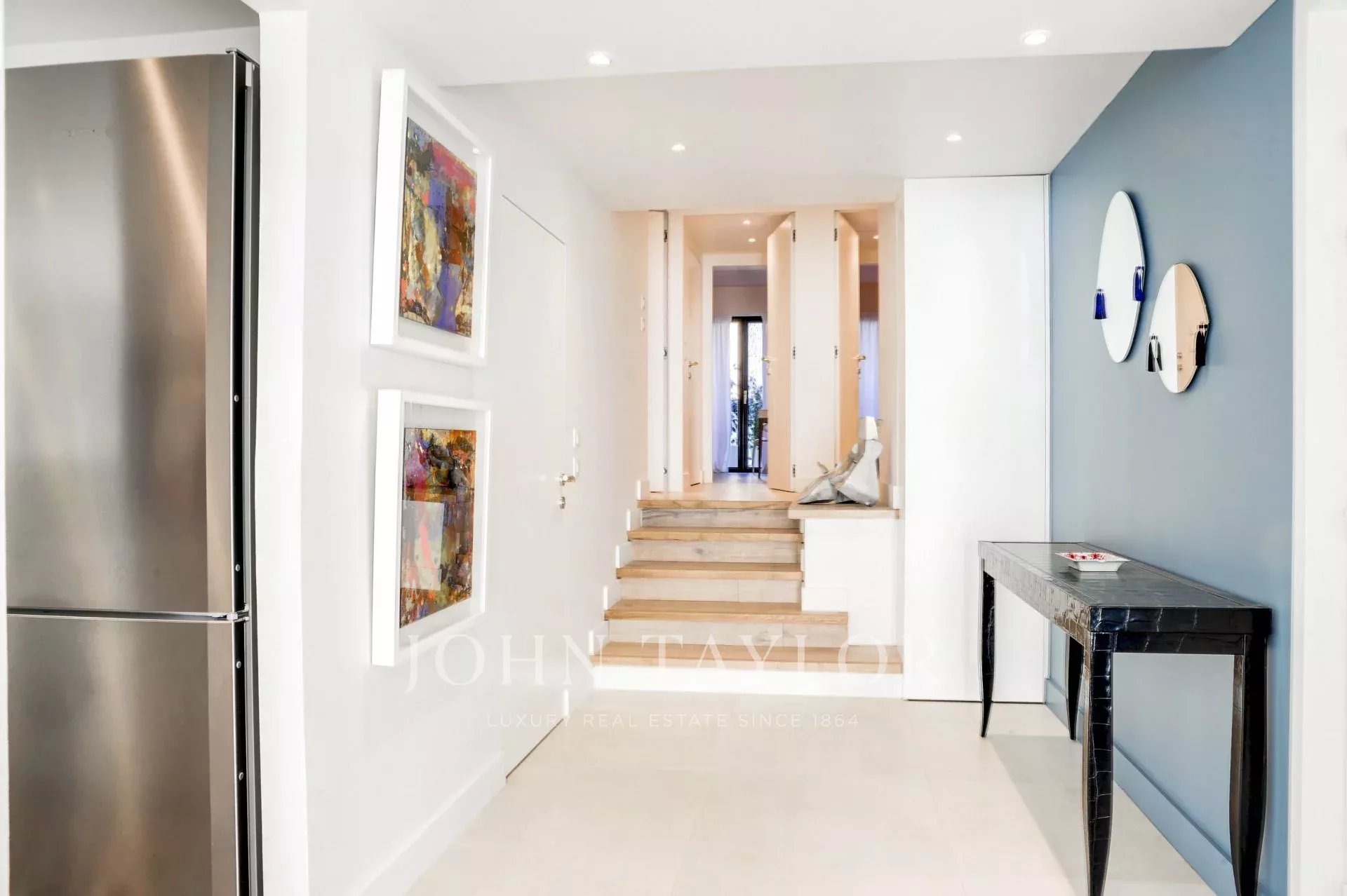 A poucos minutos a pé do Palais des Festivals, no 3º andar de uma das residências de prestígio da Croisette, o RELAIS DE LA REINE, um apartamento totalmente renovado, com decoração contemporânea, oferece cerca de 120 m2 de espaço e uma vista privilegiada sobre a Baía de Cannes.