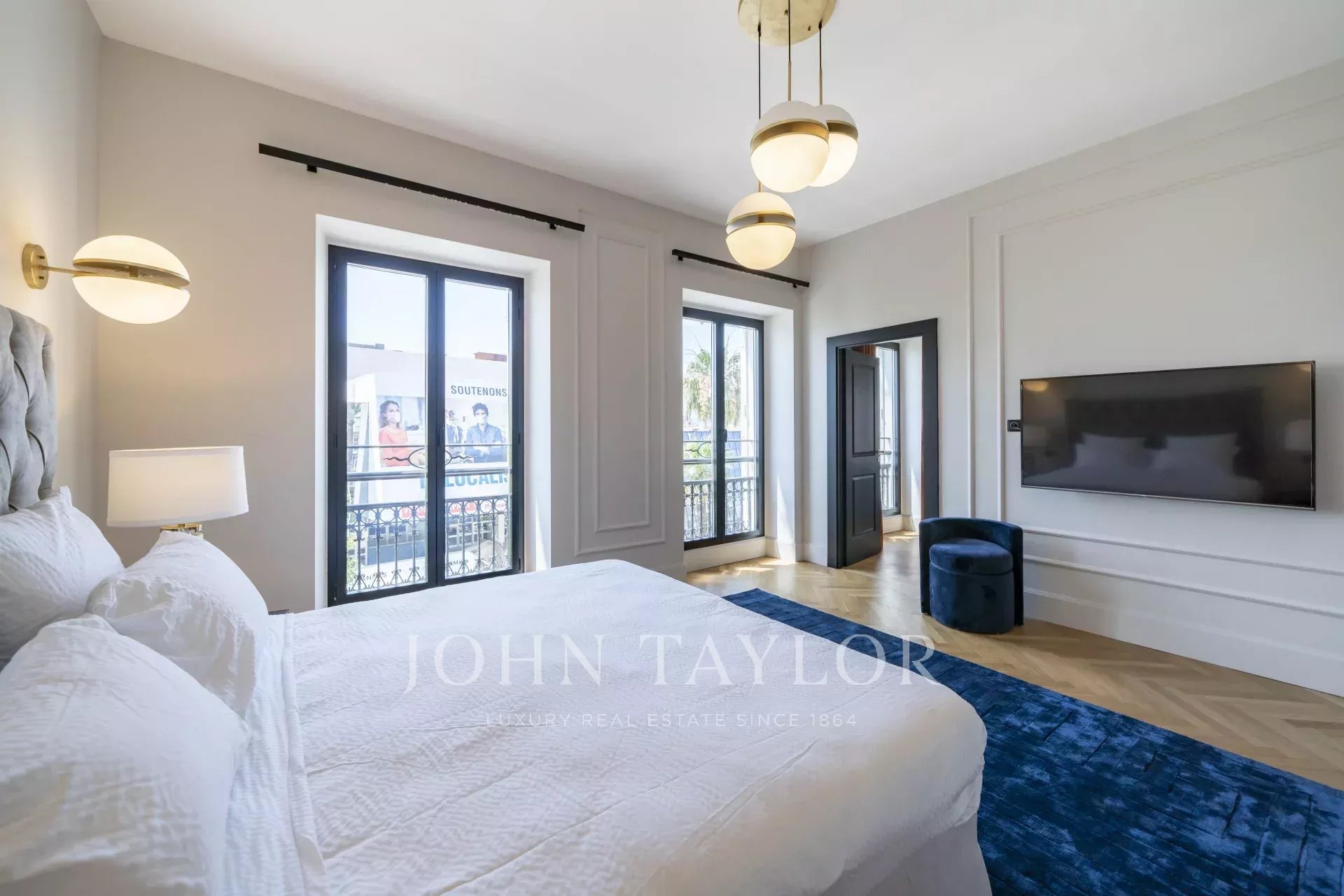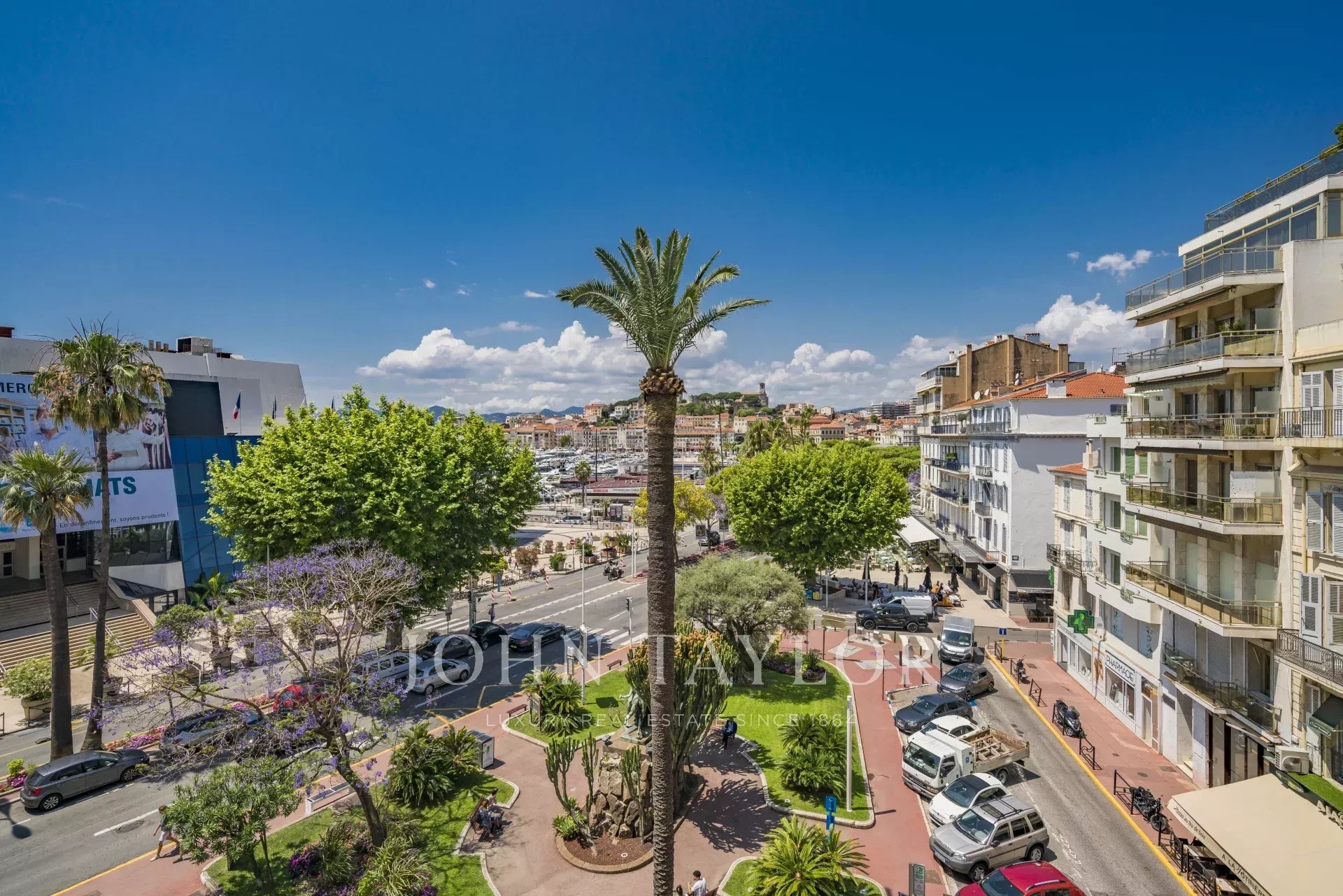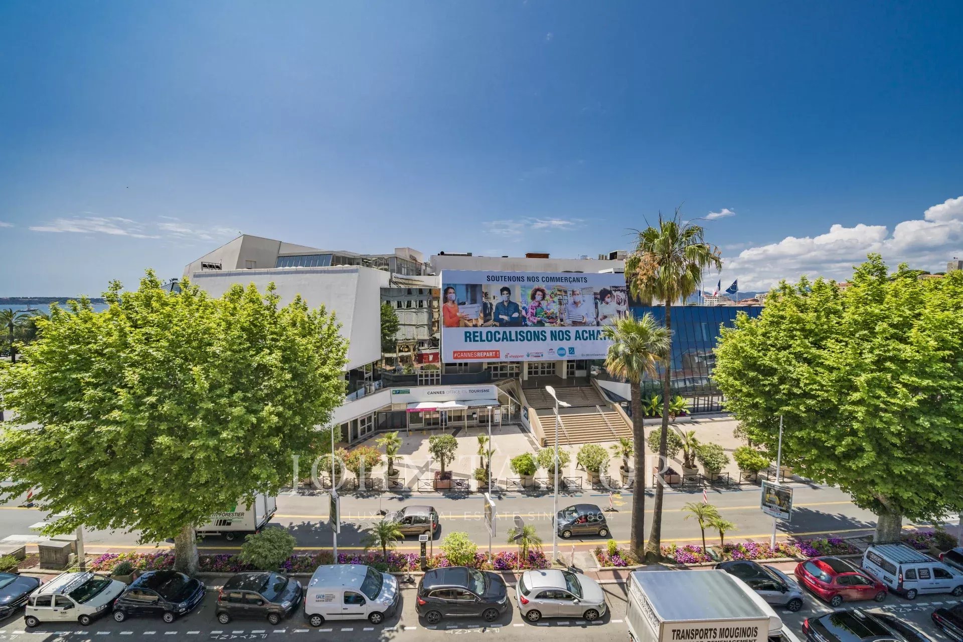 No 3.º andar de um edifício de classe média, em frente ao Palais des Festivals e às praias da Croisette, a 1 minuto da rue d'Antibes, apartamento contemporâneo totalmente renovado com ar condicionado e 195 m2 de área útil: