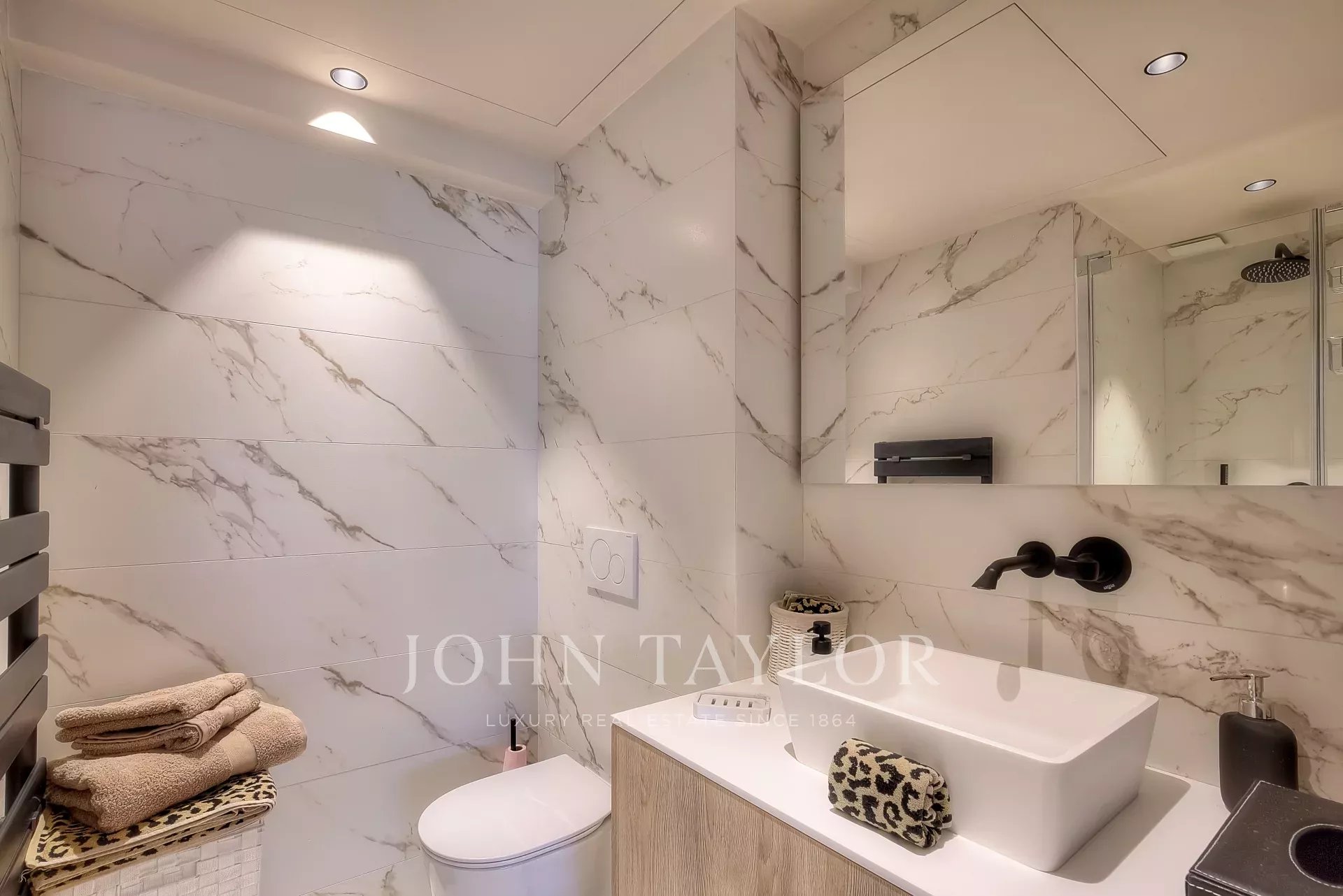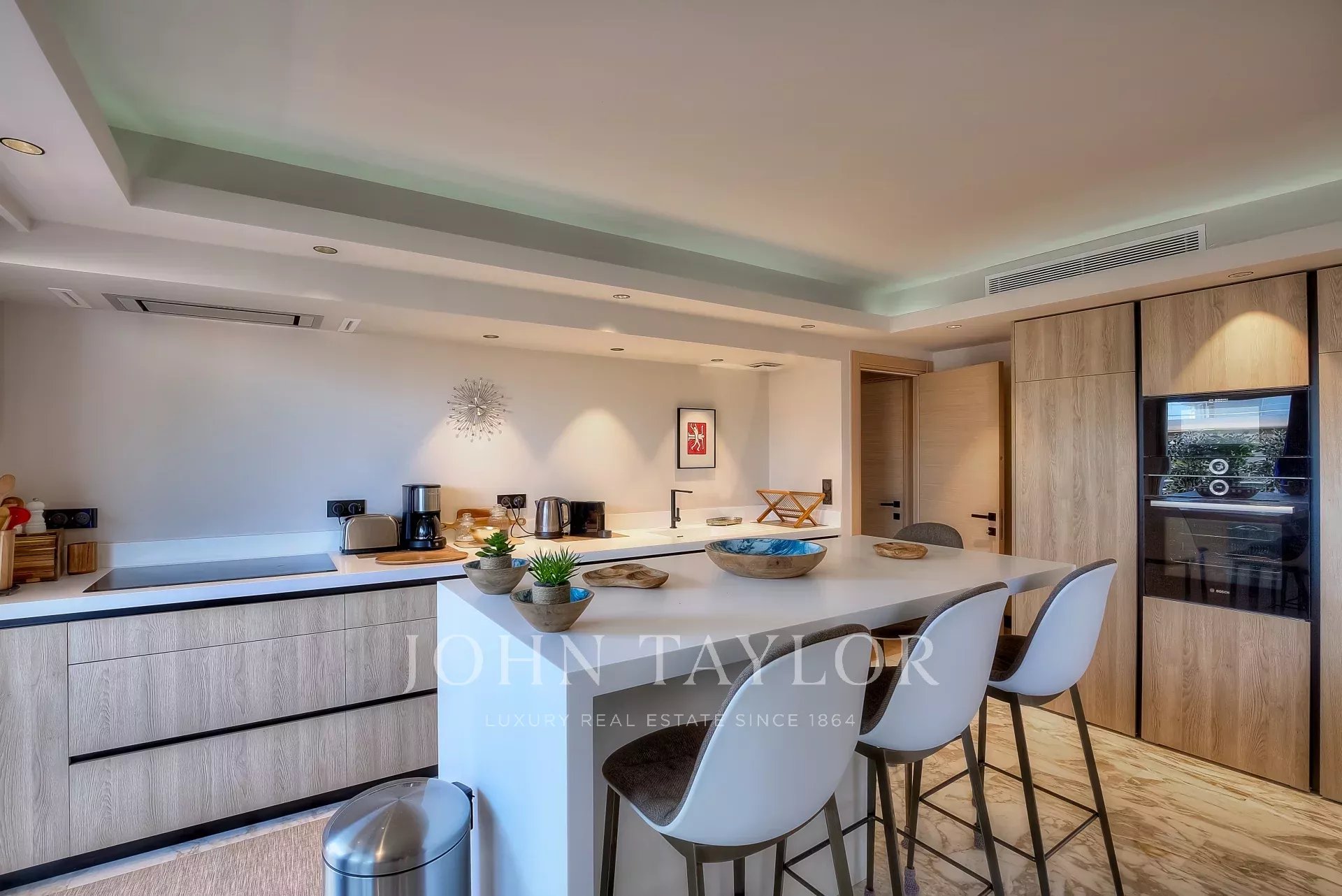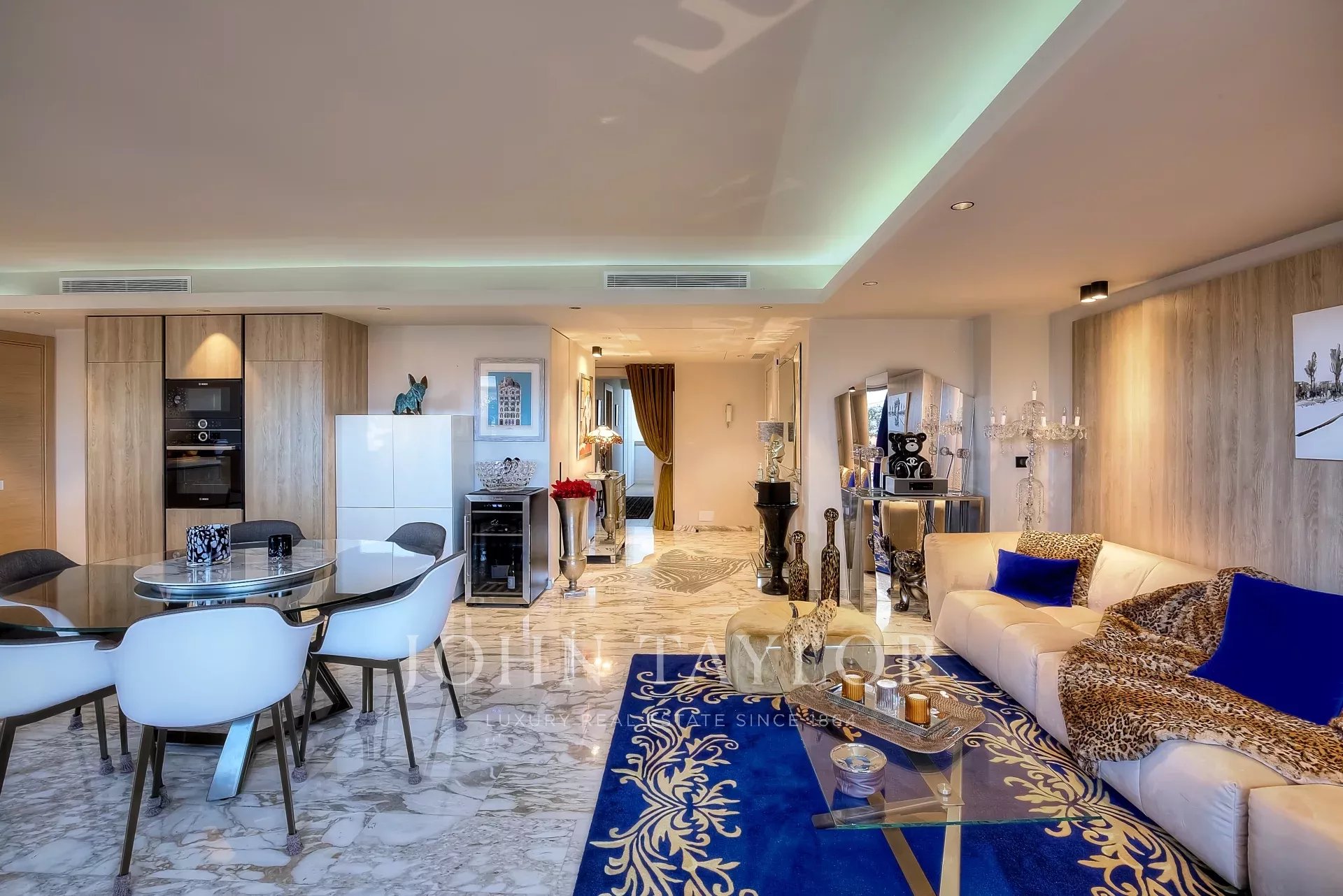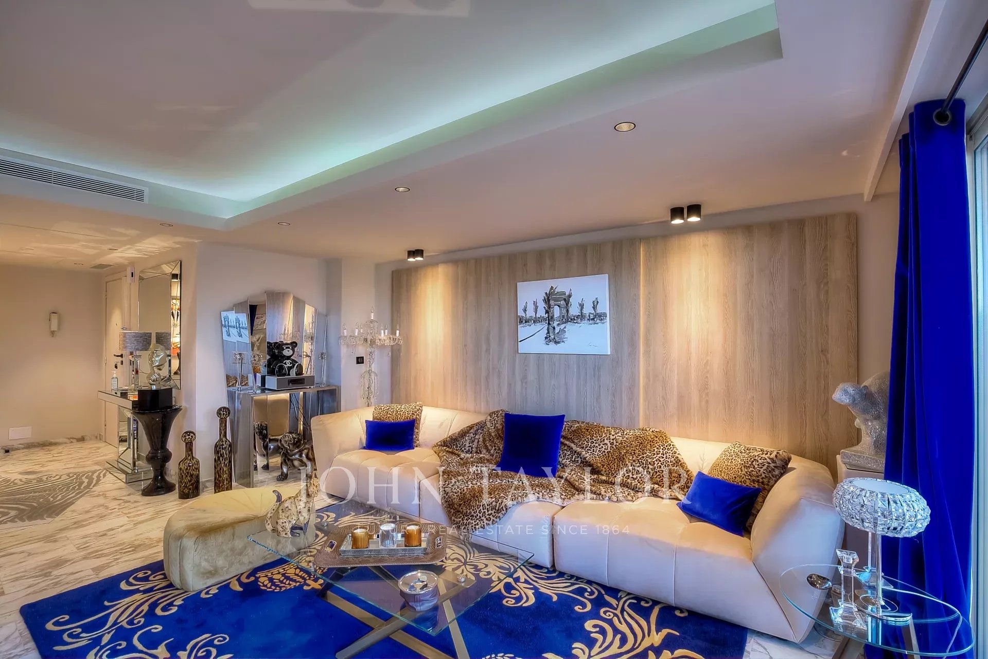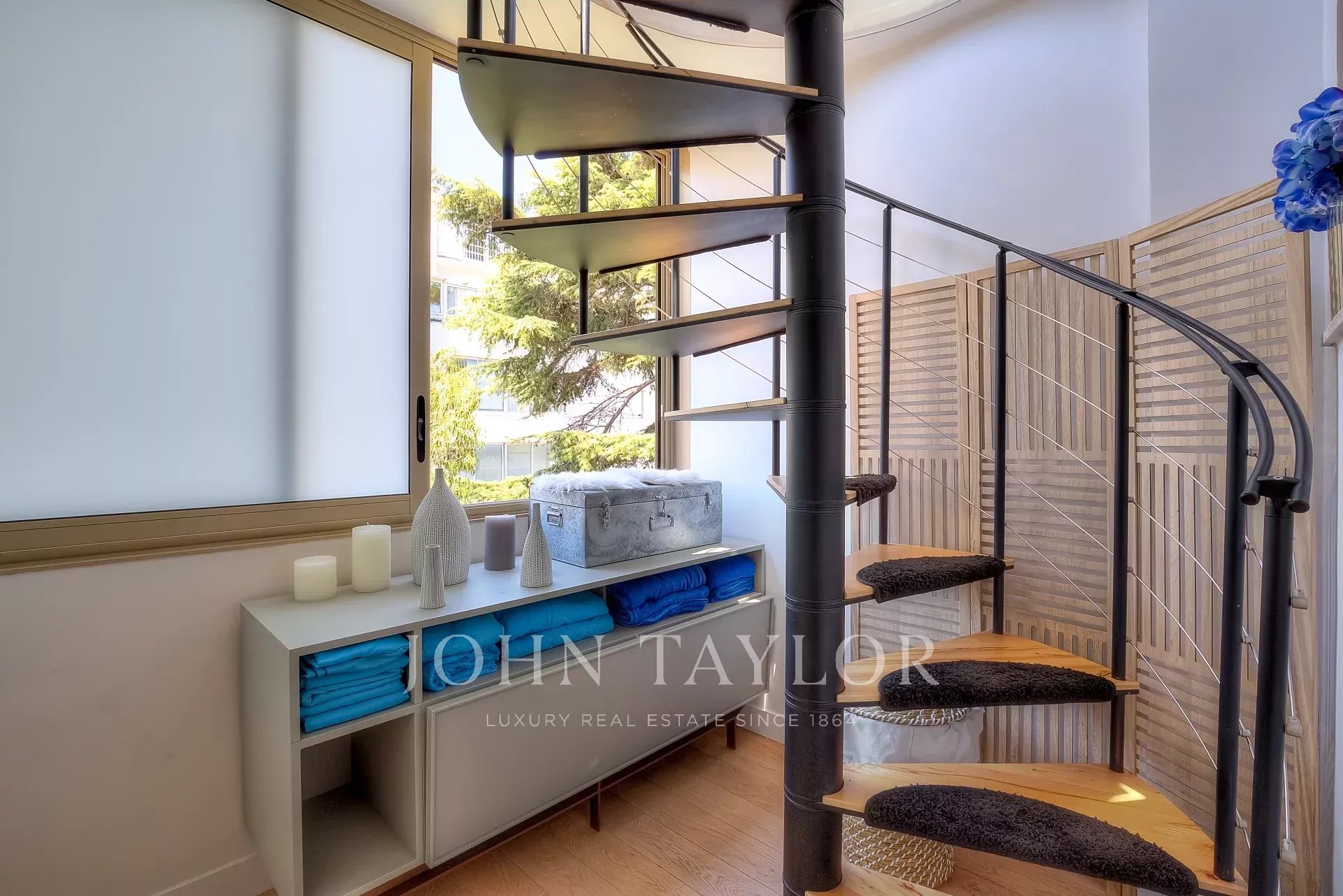 Numa residência de luxo, na 2ª linha da Croisette, um soberbo apartamento contemporâneo de 100 m2 com um terraço de 176 m2 no telhado com piscina privada (5,5 m x 3 m), espreguiçadeiras, sala de estar, área de refeições e cozinha de verão com churrasco.