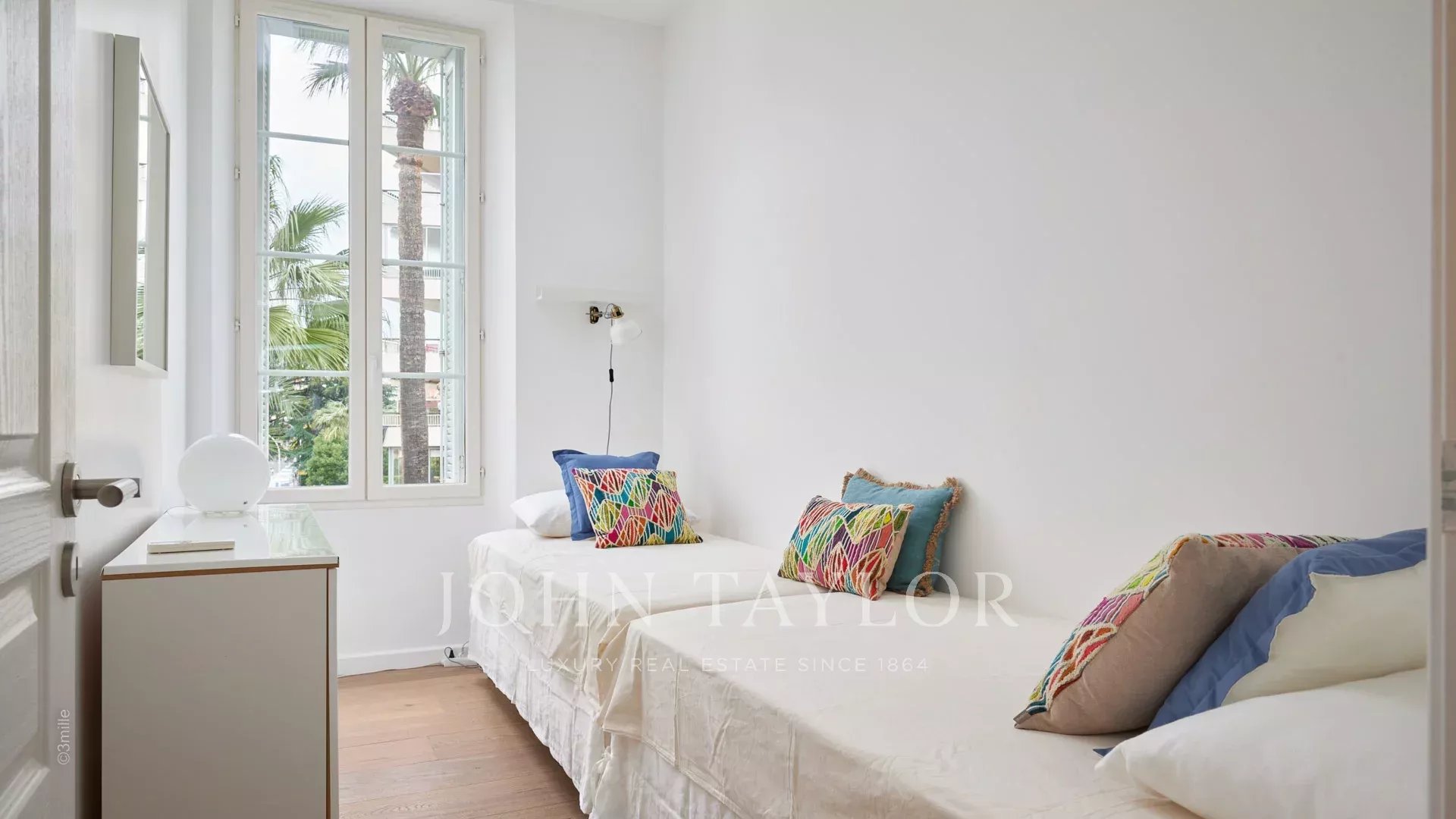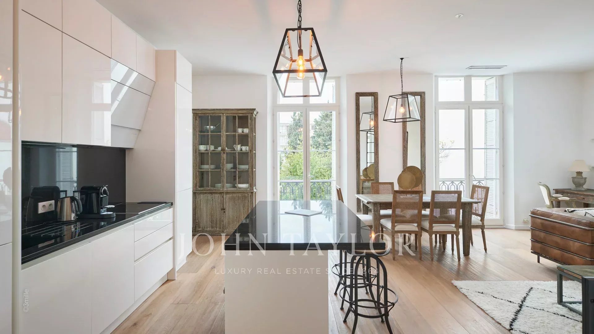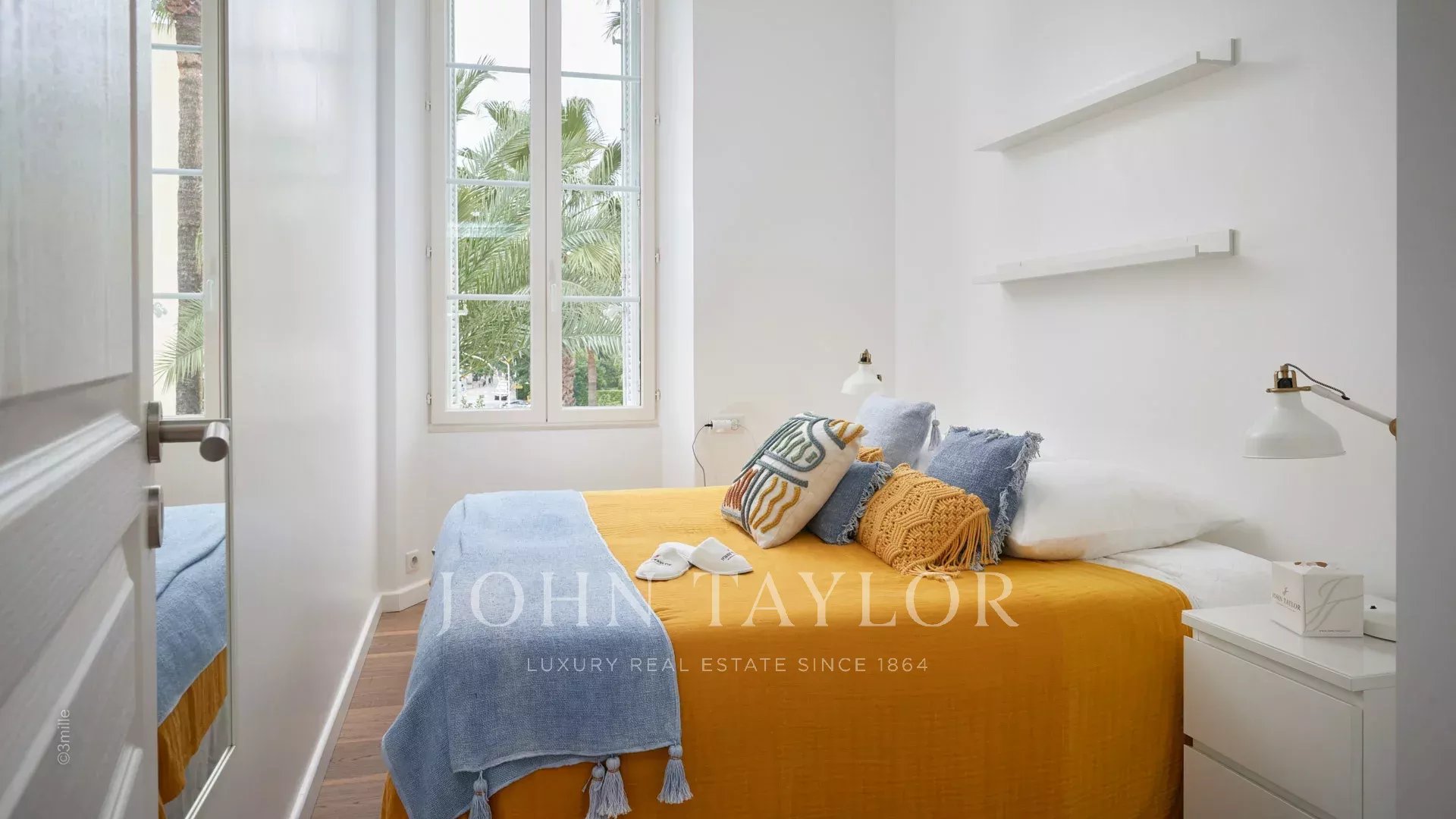 Idealmente localizado no coração do centro da cidade, a dois passos da Croisette e da Rue d'Antibes, este belo apartamento de 4 assoalhadas, totalmente climatizado e renovado, situa-se no 2º andar de um edifício de classe média com elevador.