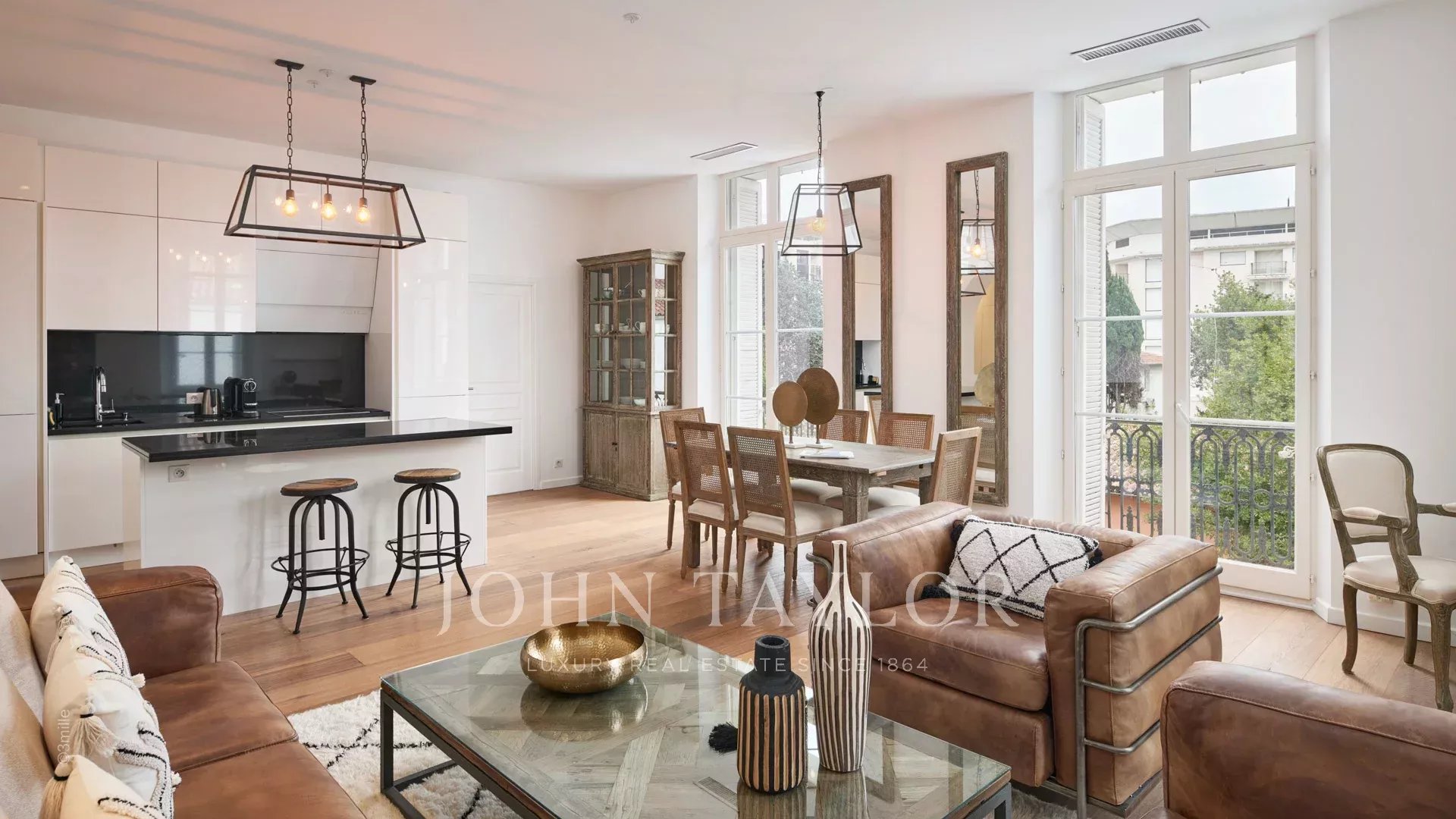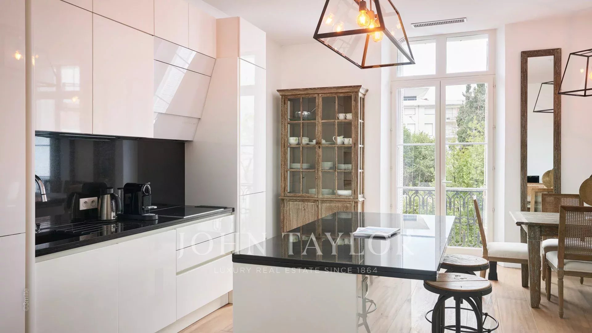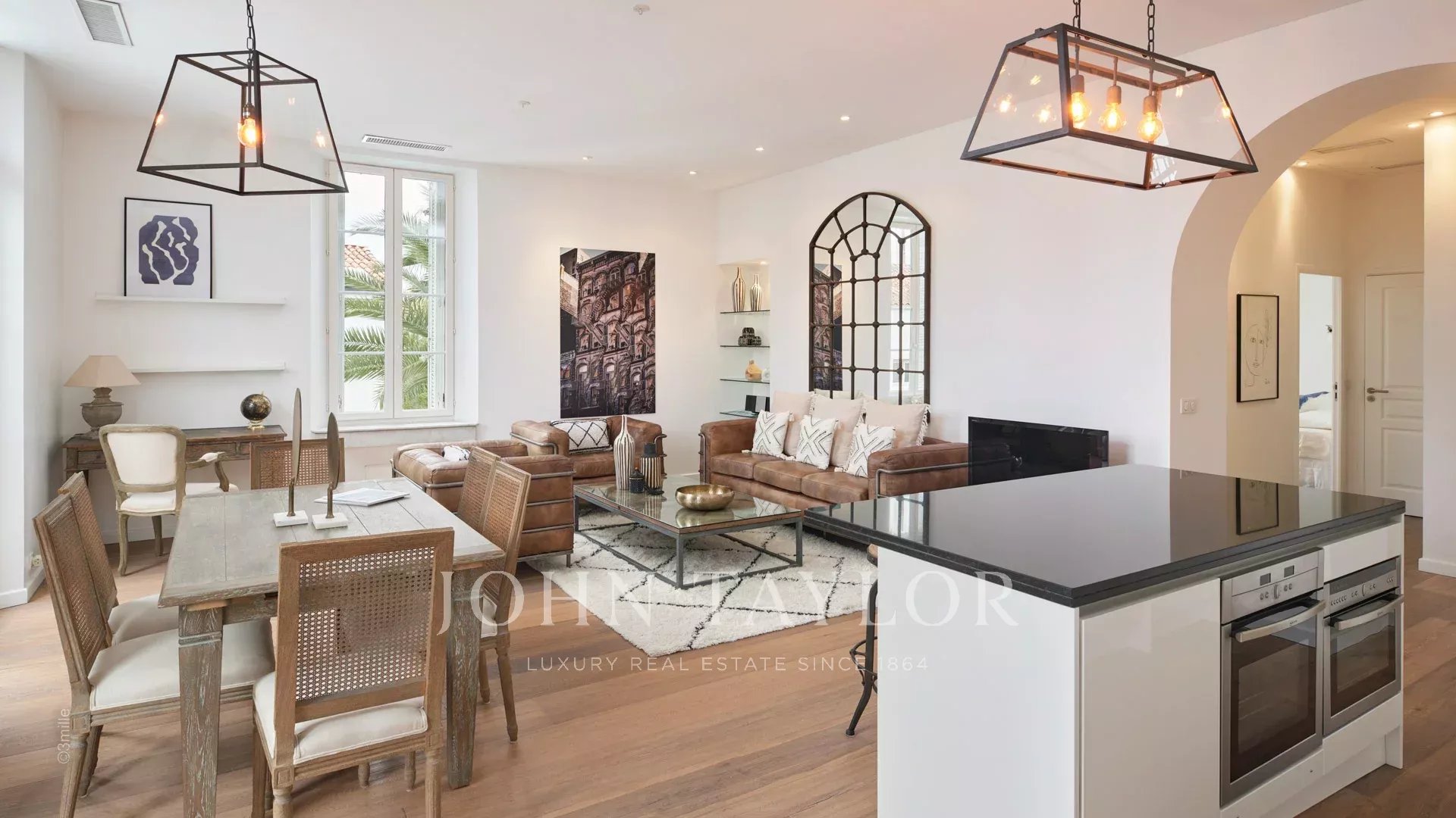 Idealmente localizado no coração do centro da cidade, a dois passos da Croisette e da Rue d'Antibes, este belo apartamento de 4 assoalhadas, totalmente climatizado e renovado, situa-se no 2º andar de um edifício de classe média com elevador.