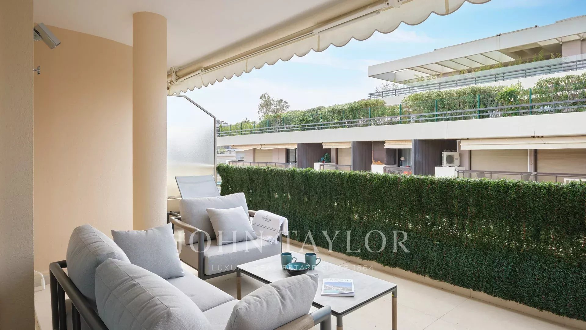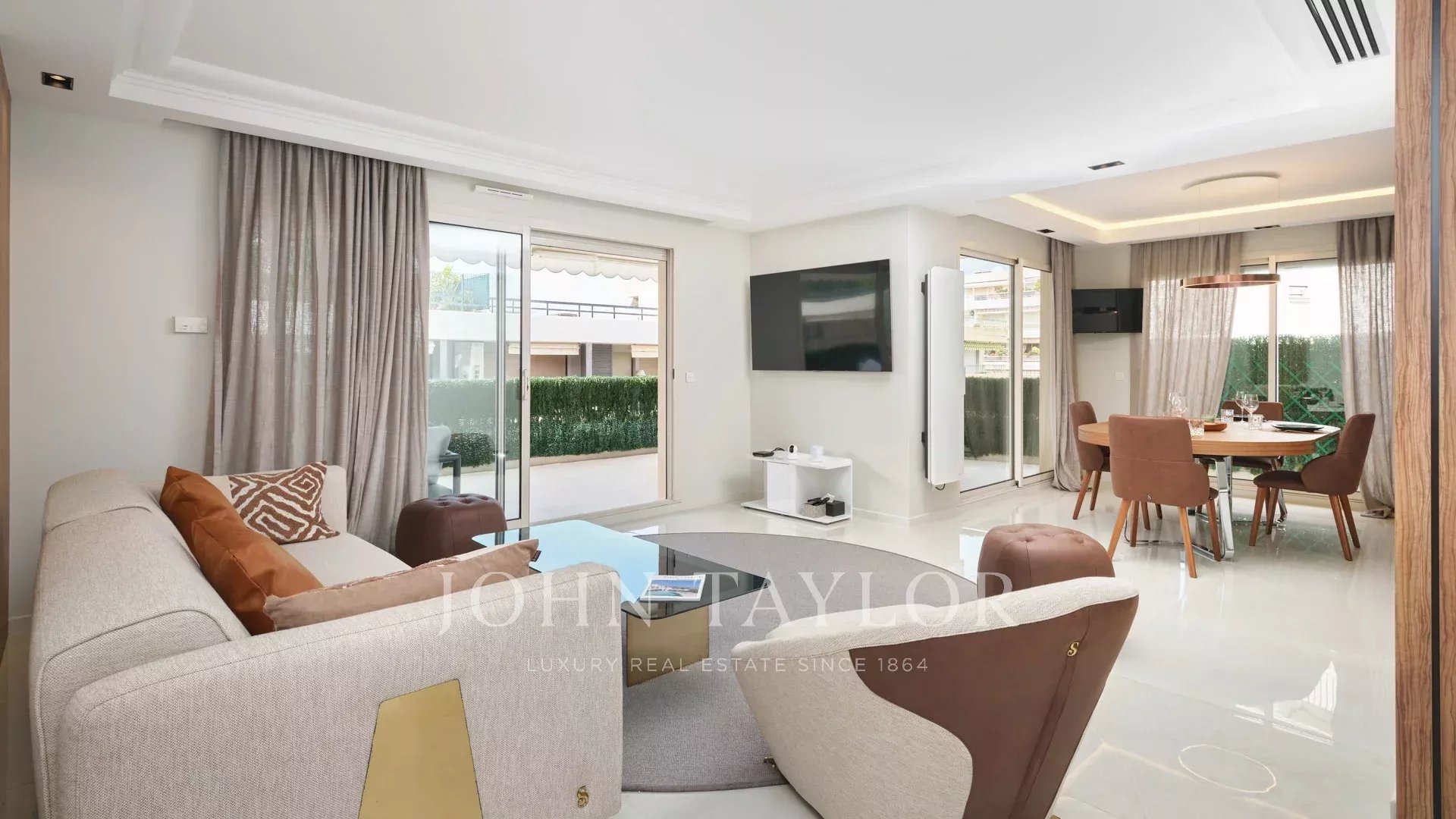 Idealmente localizado nas traseiras da Croisette, no 6º piso de uma residência de luxo, este belo apartamento de canto, totalmente renovado e com ar condicionado, oferece 98 m2 de espaço habitacional.