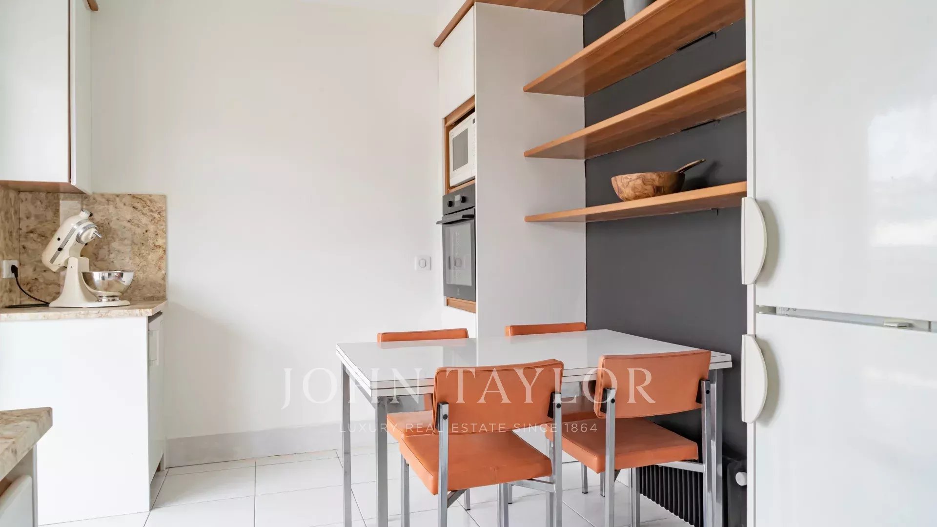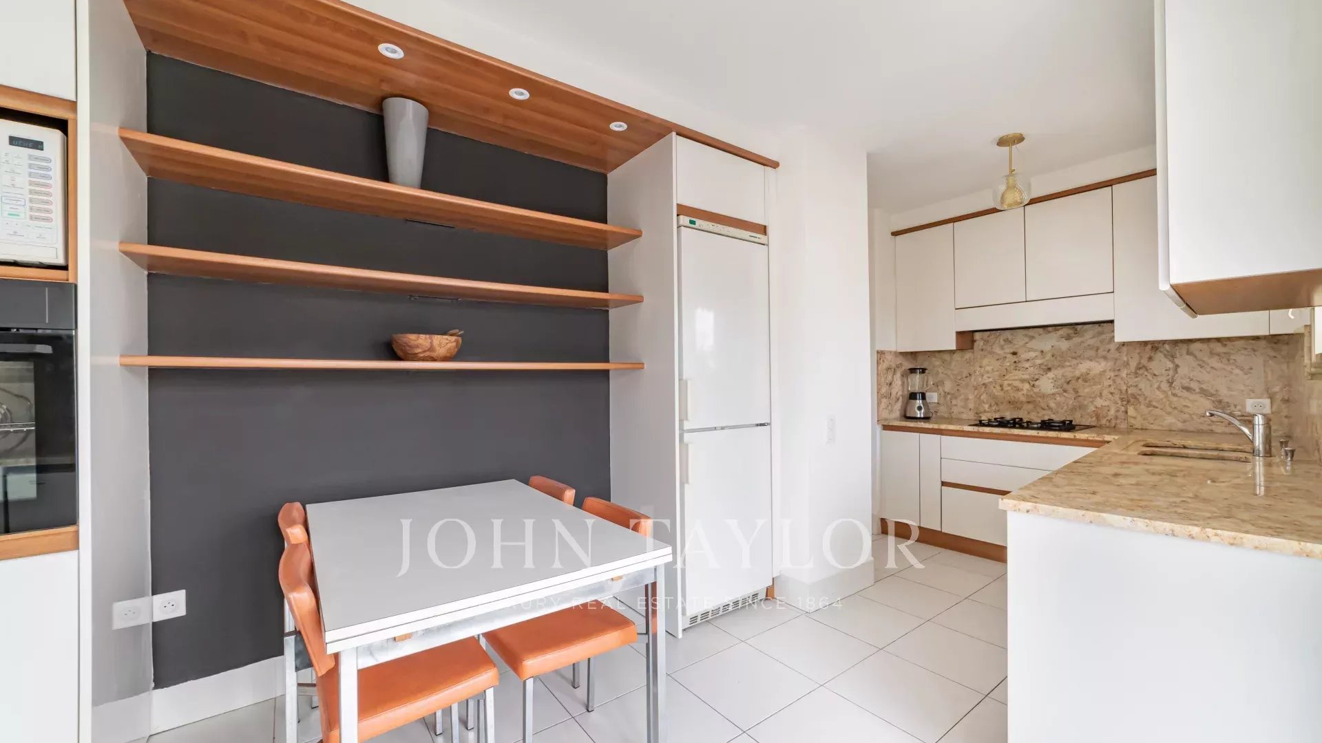 Uma cozinha fechada com acesso a um terraço virado a norte de cerca de 40 m².