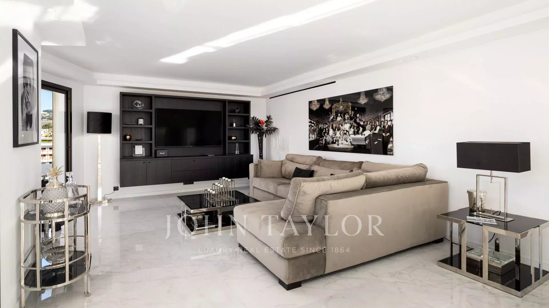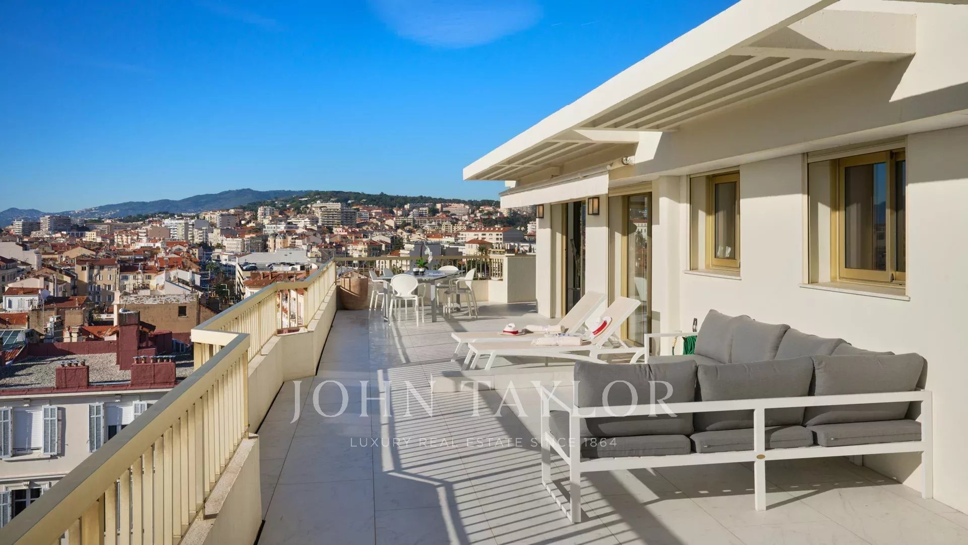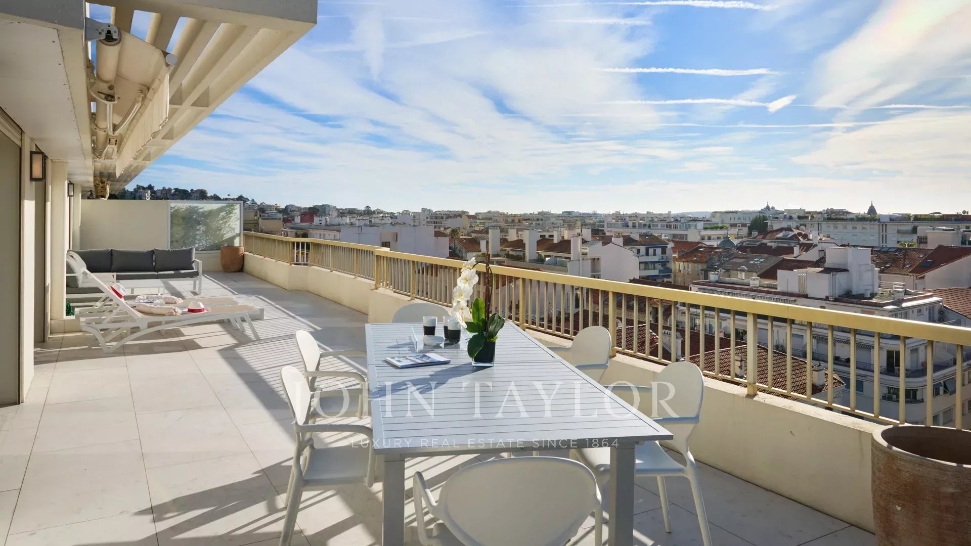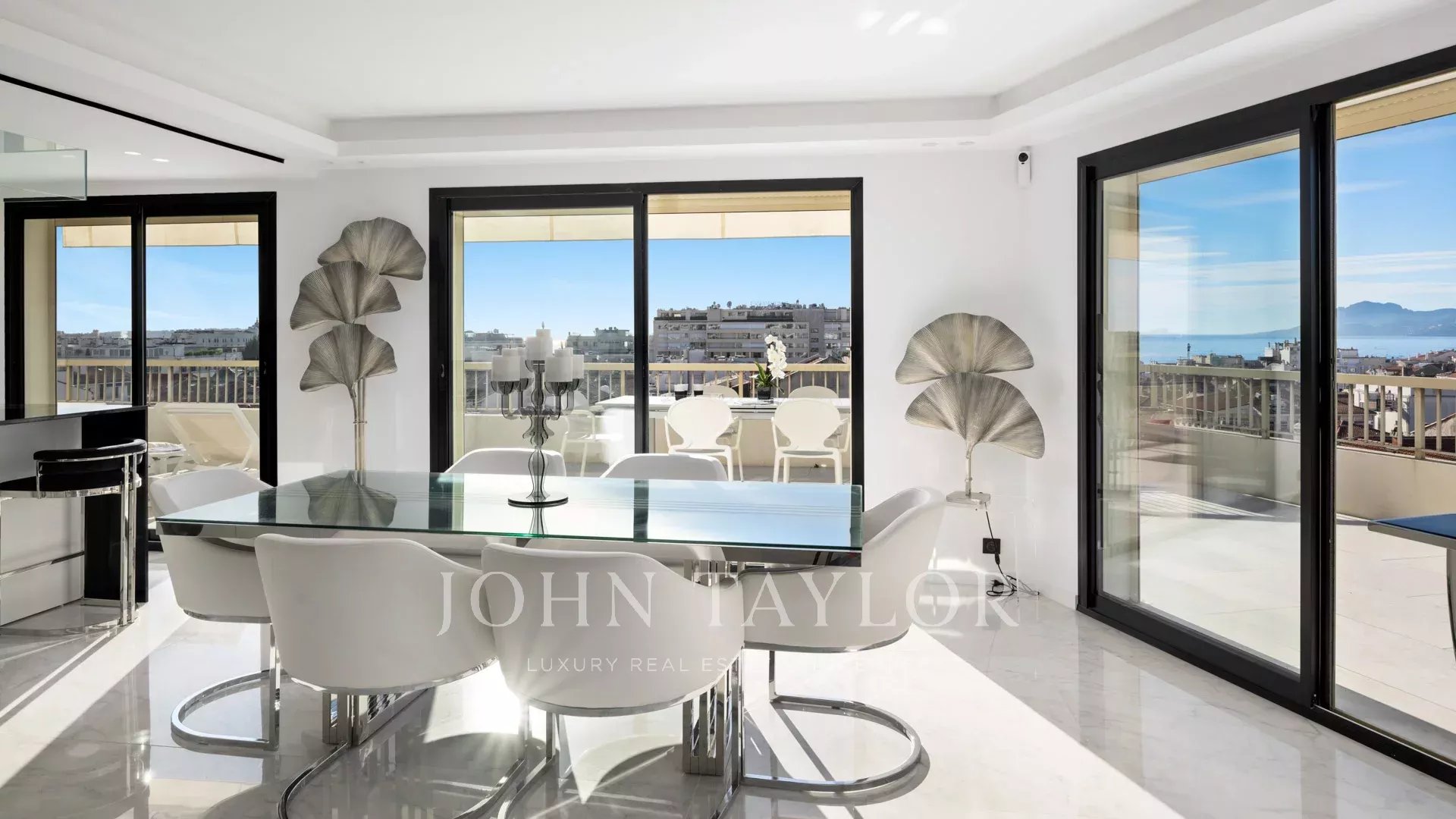 Situado numa residência no centro de Cannes, a poucos minutos a pé das praias e do Palais des Festivals, este magnífico apartamento irá conquistá-lo pela sua decoração, pelas suas caraterísticas e pelo seu terraço panorâmico de 180 m2 com vista para o mar.