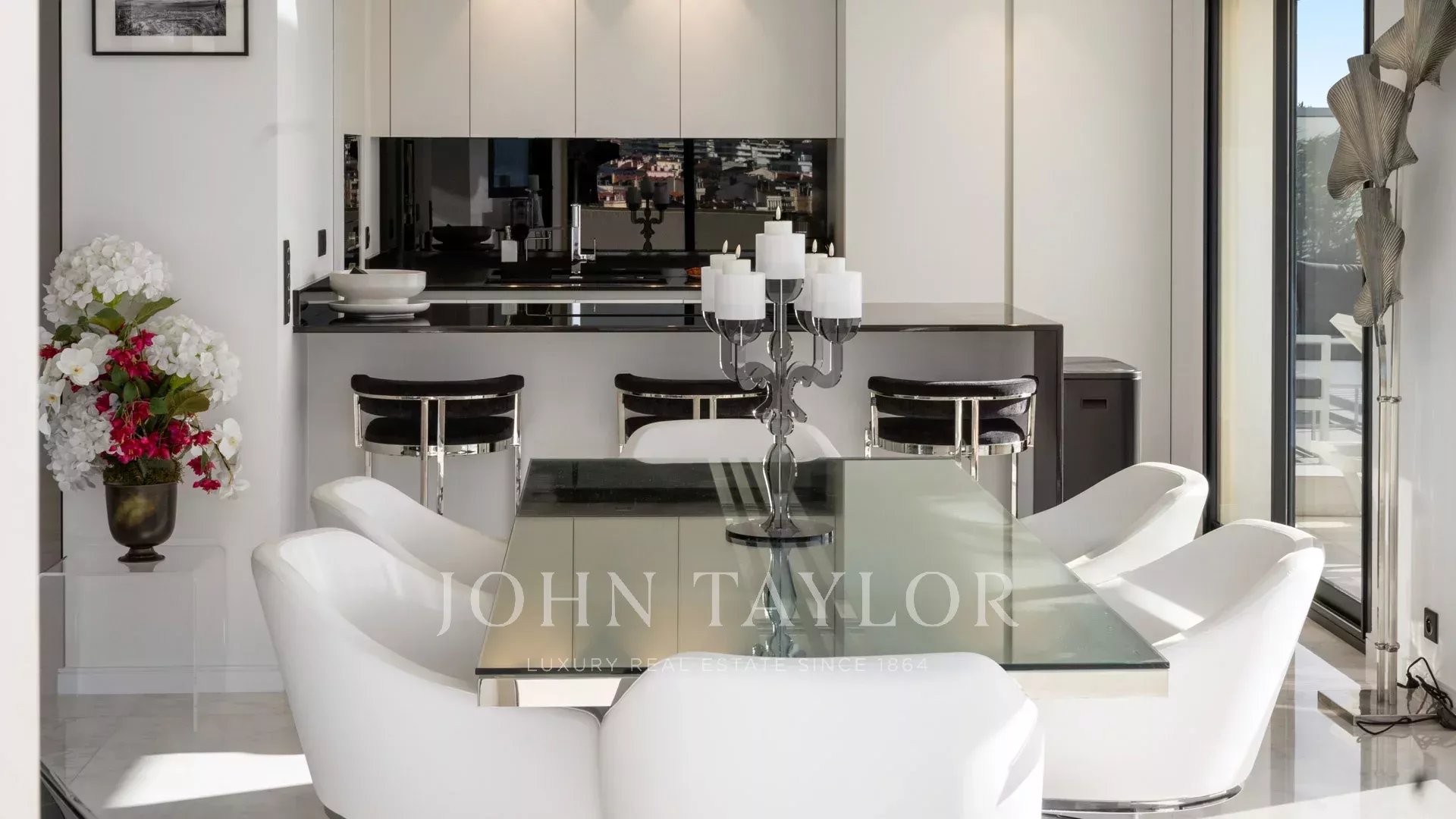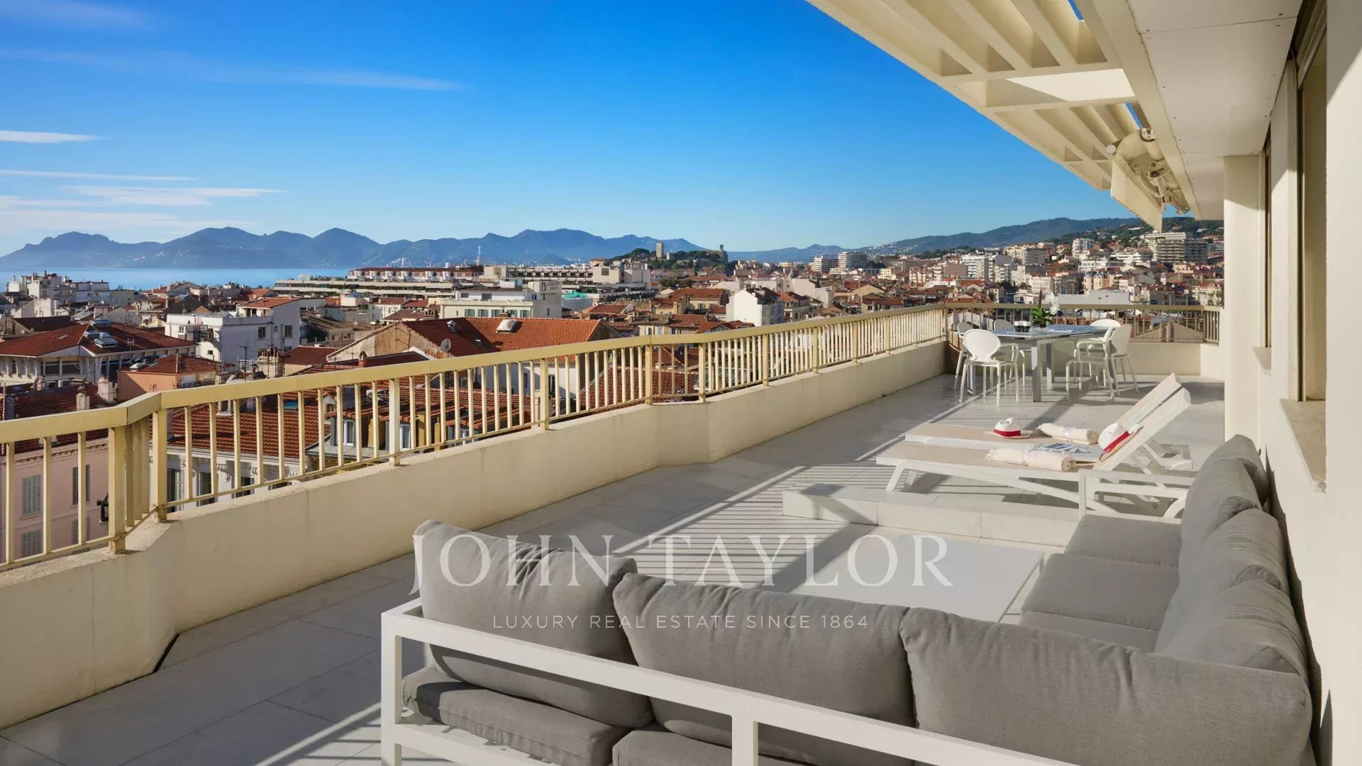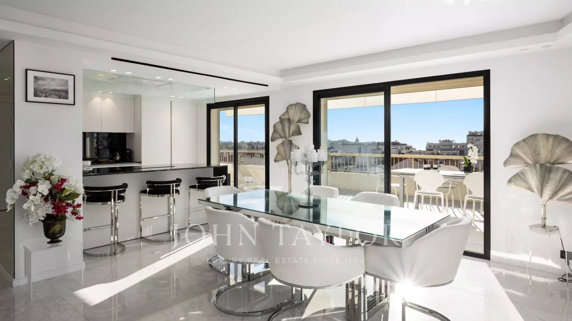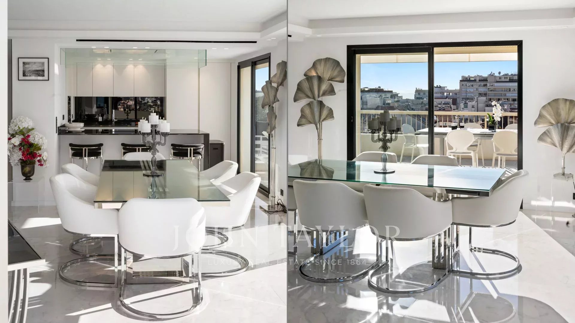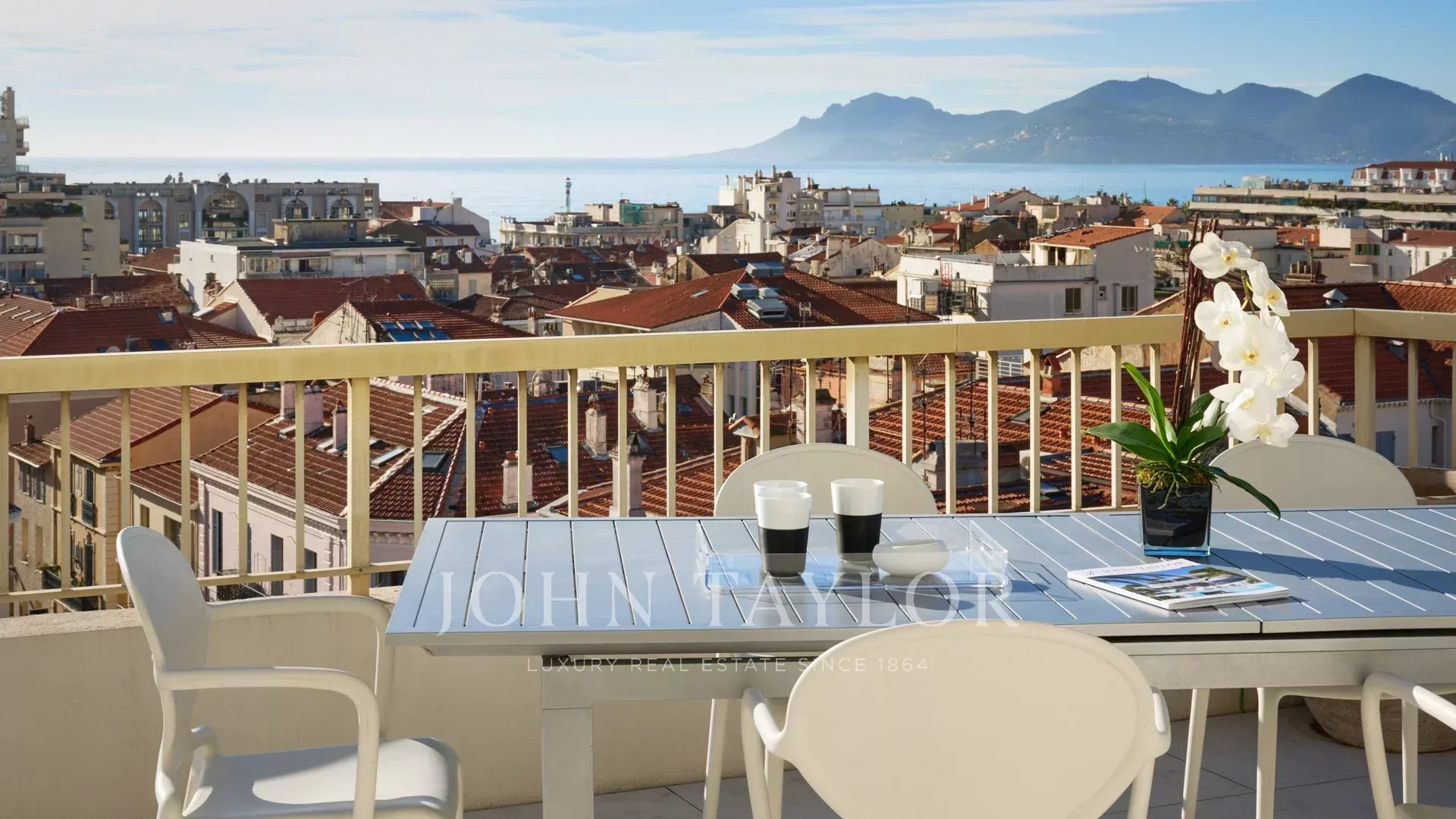 Situado numa residência no centro de Cannes, a poucos minutos a pé das praias e do Palais des Festivals, este magnífico apartamento irá conquistá-lo pela sua decoração, pelas suas caraterísticas e pelo seu terraço panorâmico de 180 m2 com vista para o mar.