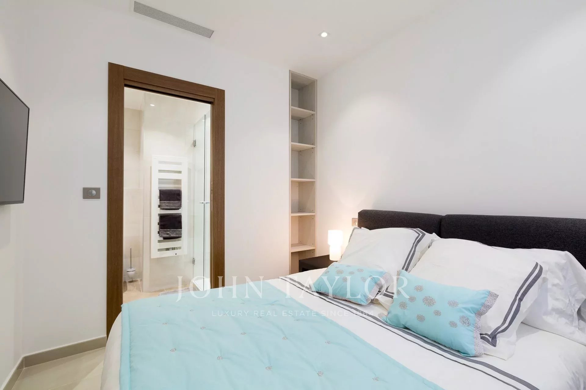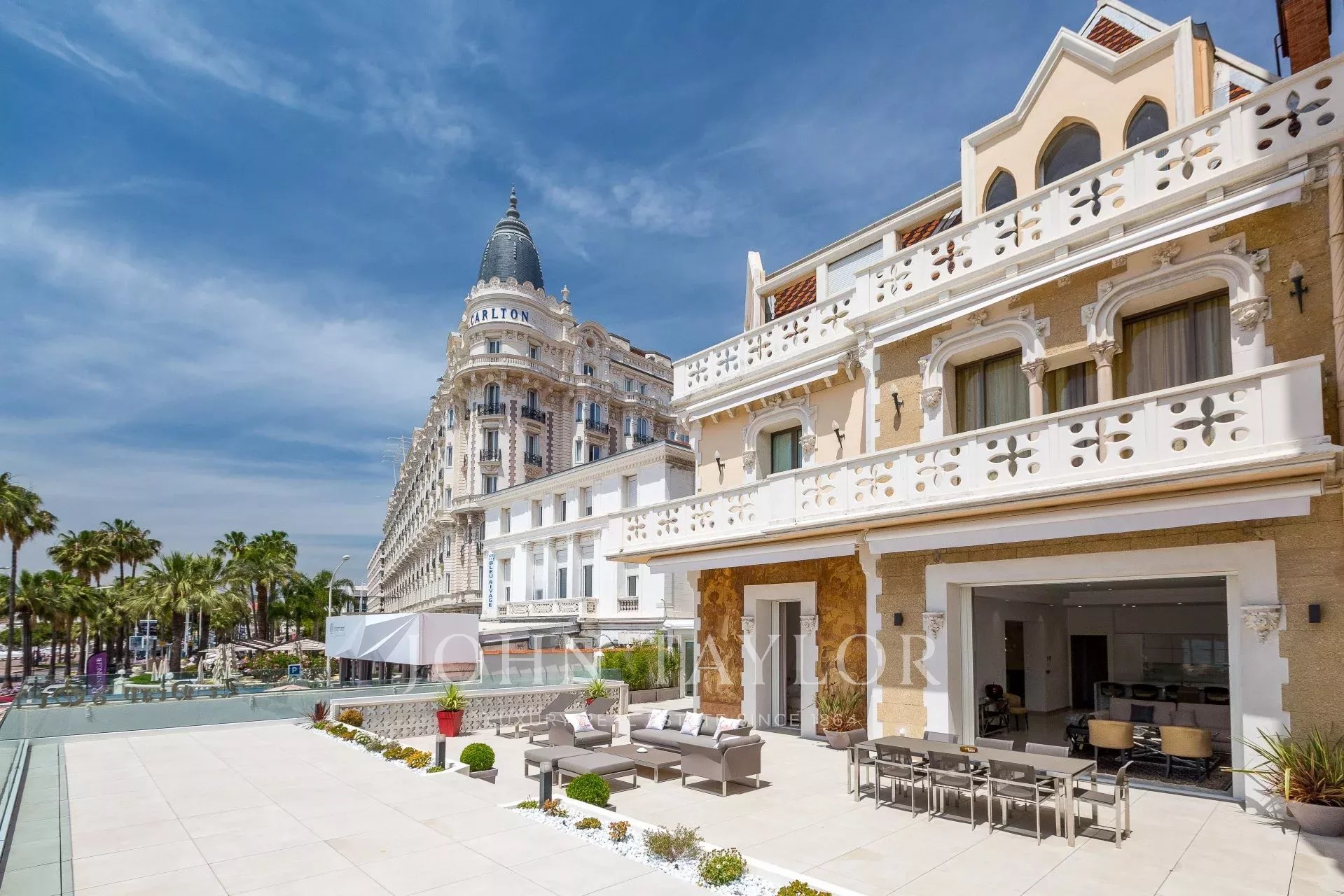 Na Croisette, ao lado do Hotel Carlton, numa pequena residência classificada, um magnífico apartamento contemporâneo com cerca de 215 m2 de área de habitação.