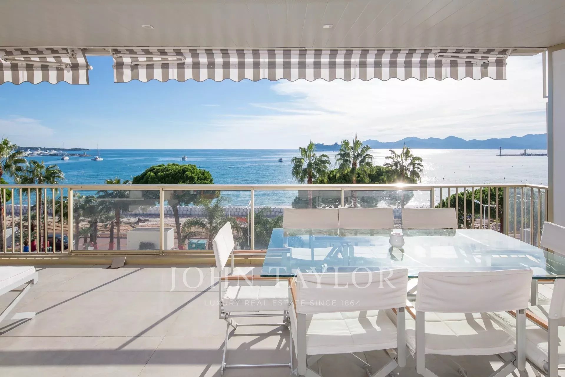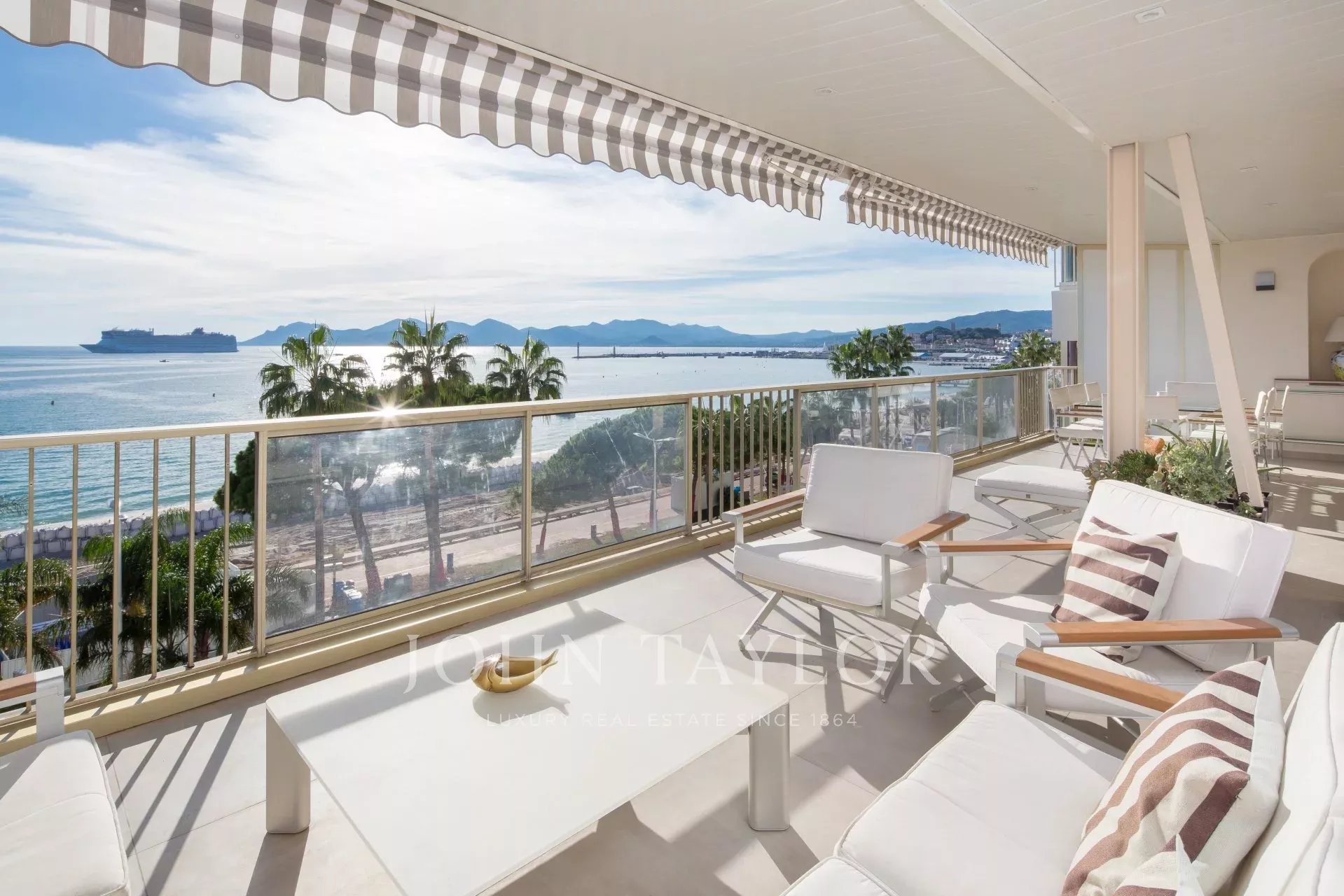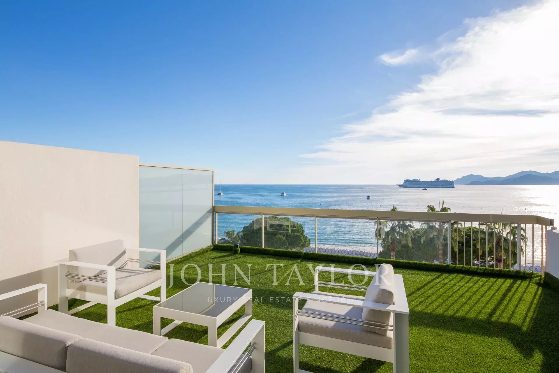 Magnífico apartamento duplex contemporâneo de 250 m², totalmente renovado e com ar condicionado, no 4º e 5º andares de uma residência na Croisette, entre o Carlton Hotel e o Palais Miramar.