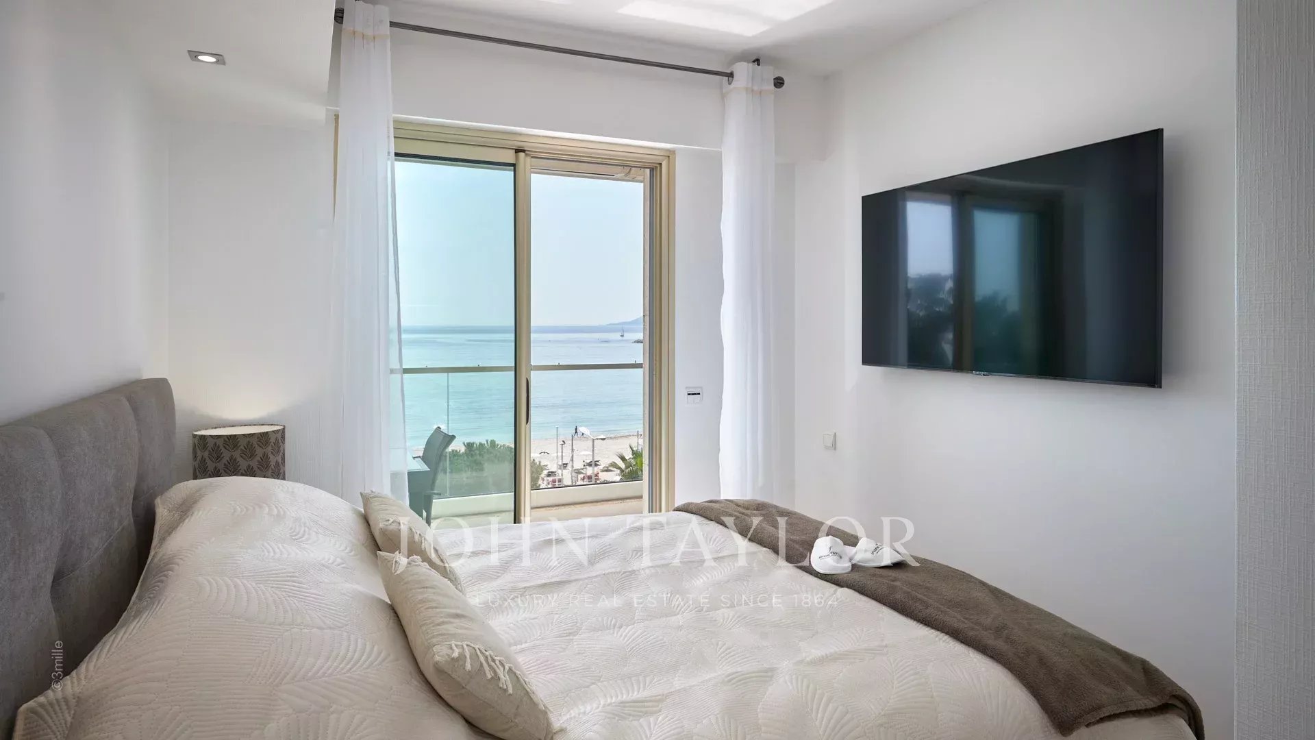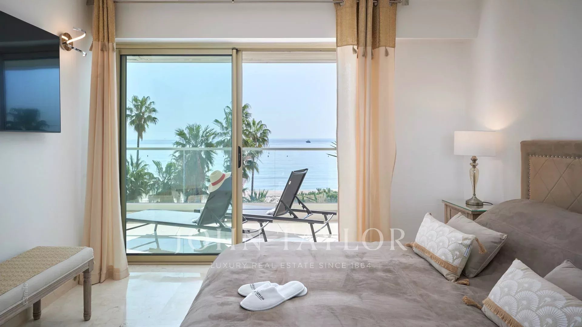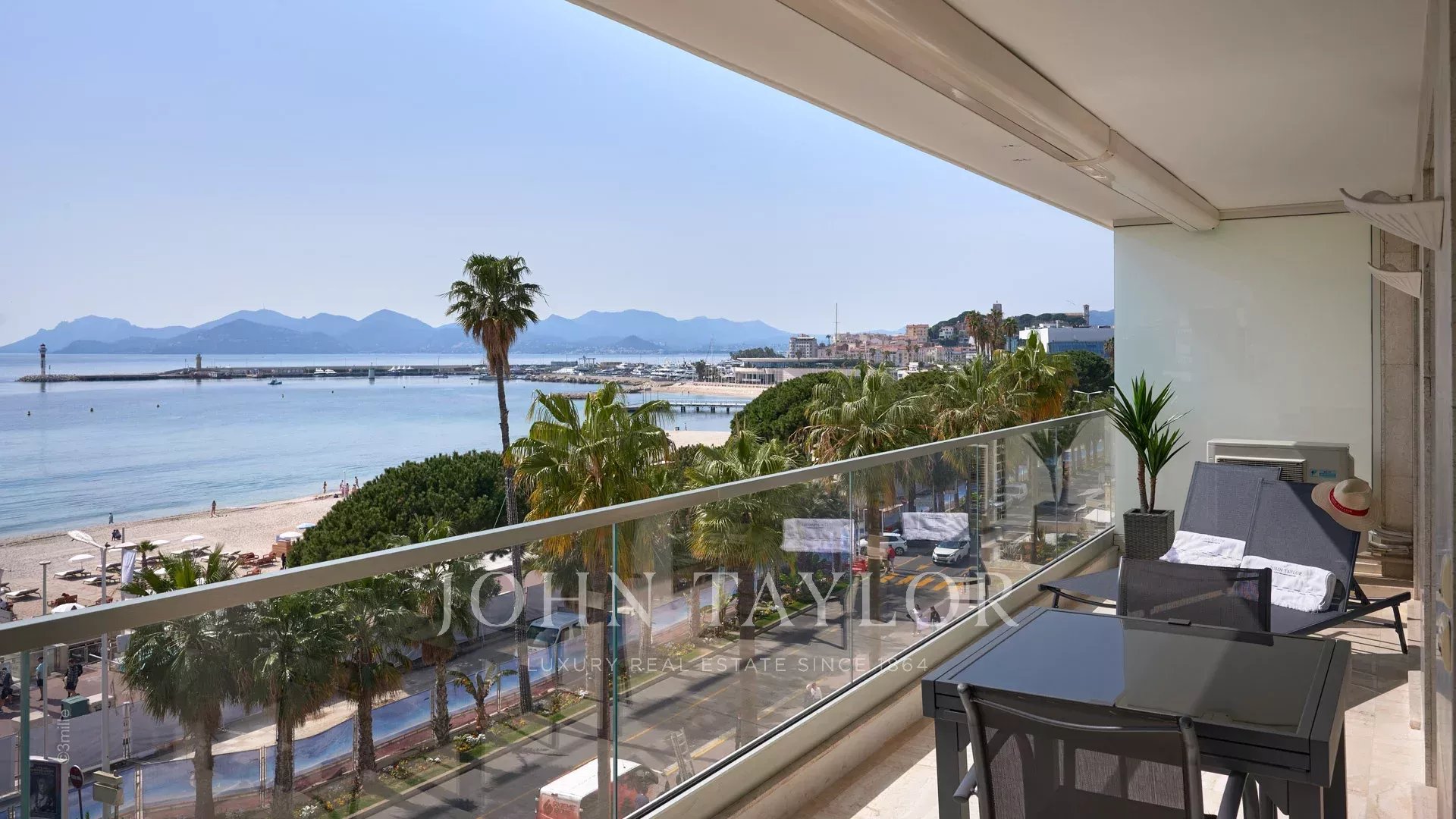 Bonito apartamento com ar condicionado situado no coração da Croisette, no 4º andar de uma residência de luxo, com vistas panorâmicas sobre a Baía de Cannes, as suas praias, o Palais des Festivals e o Esterel.