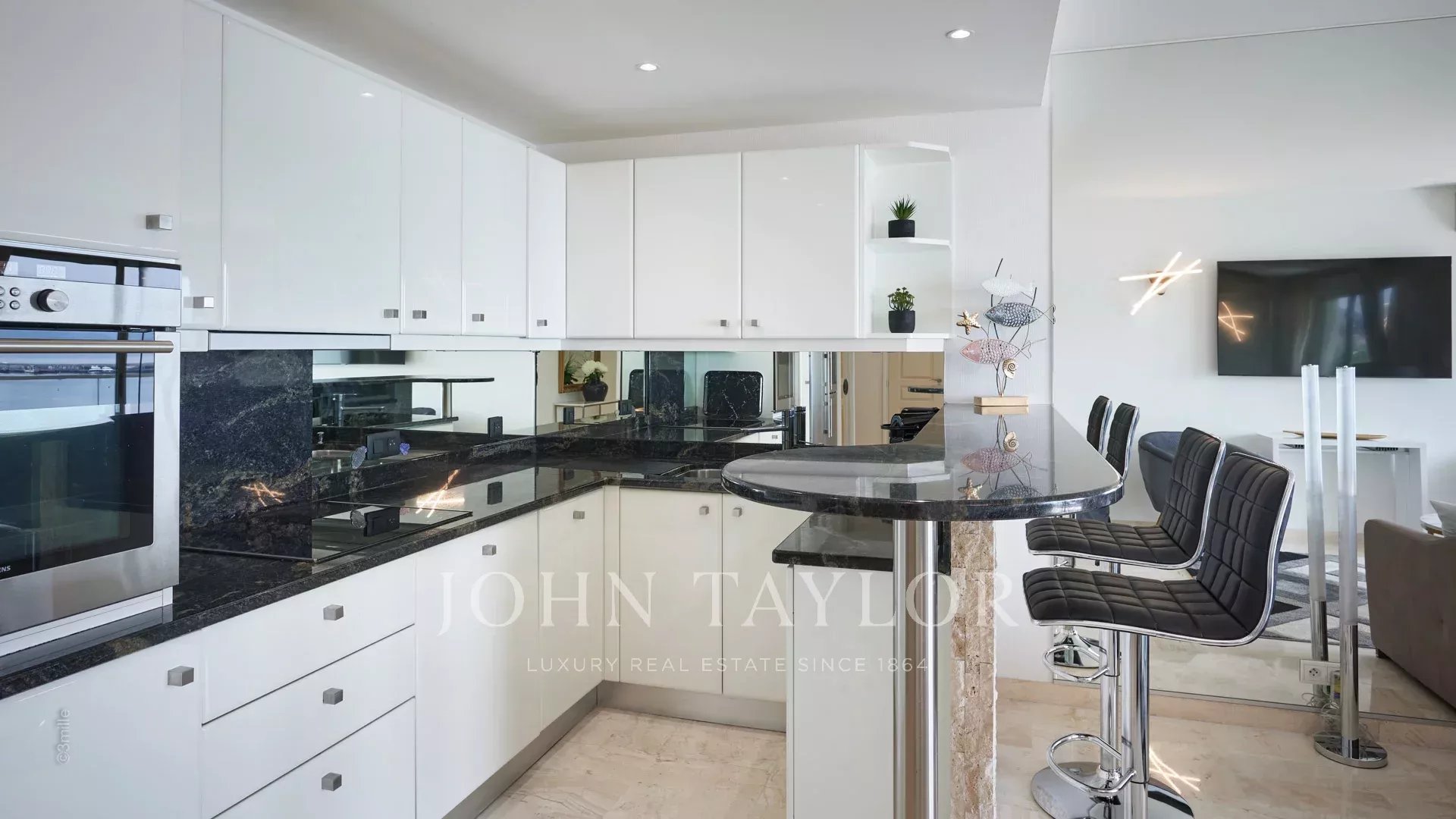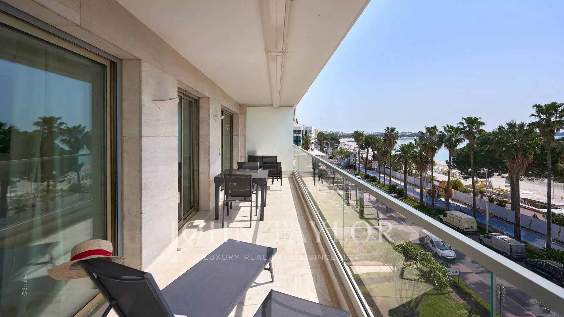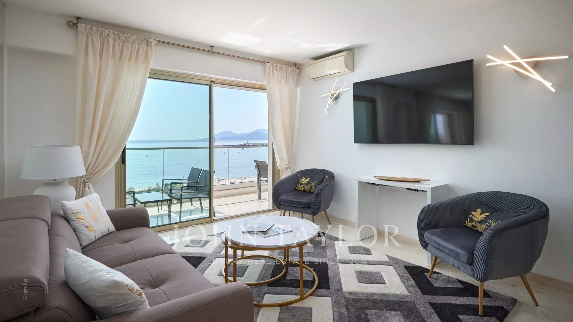 Bonito apartamento com ar condicionado situado no coração da Croisette, no 4º andar de uma residência de luxo, com vistas panorâmicas sobre a Baía de Cannes, as suas praias, o Palais des Festivals e o Esterel.