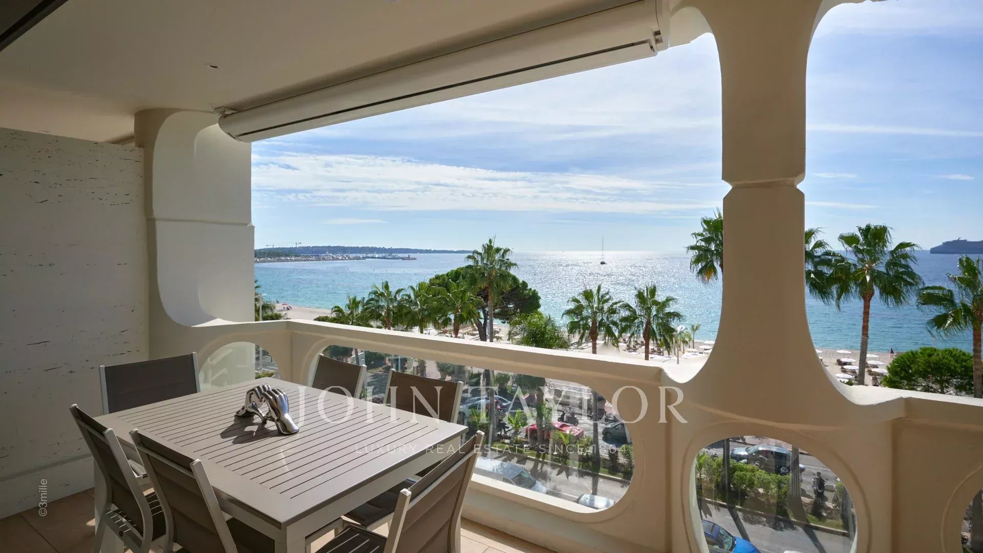 Idealmente localizado mesmo no centro da Croisette, no 4º andar, este belo apartamento de 89 m² dispõe de um terraço de 20 m² com magníficas vistas panorâmicas sobre a Baía de Cannes, o Suquet e o Esterel.