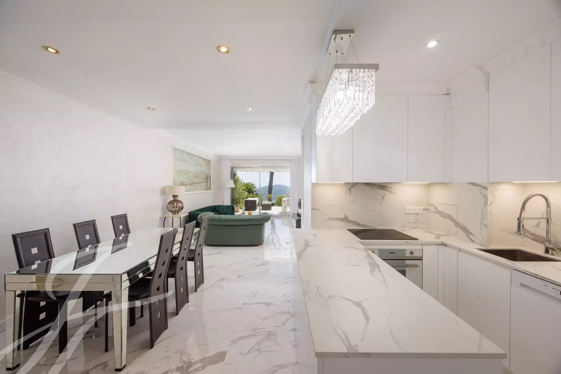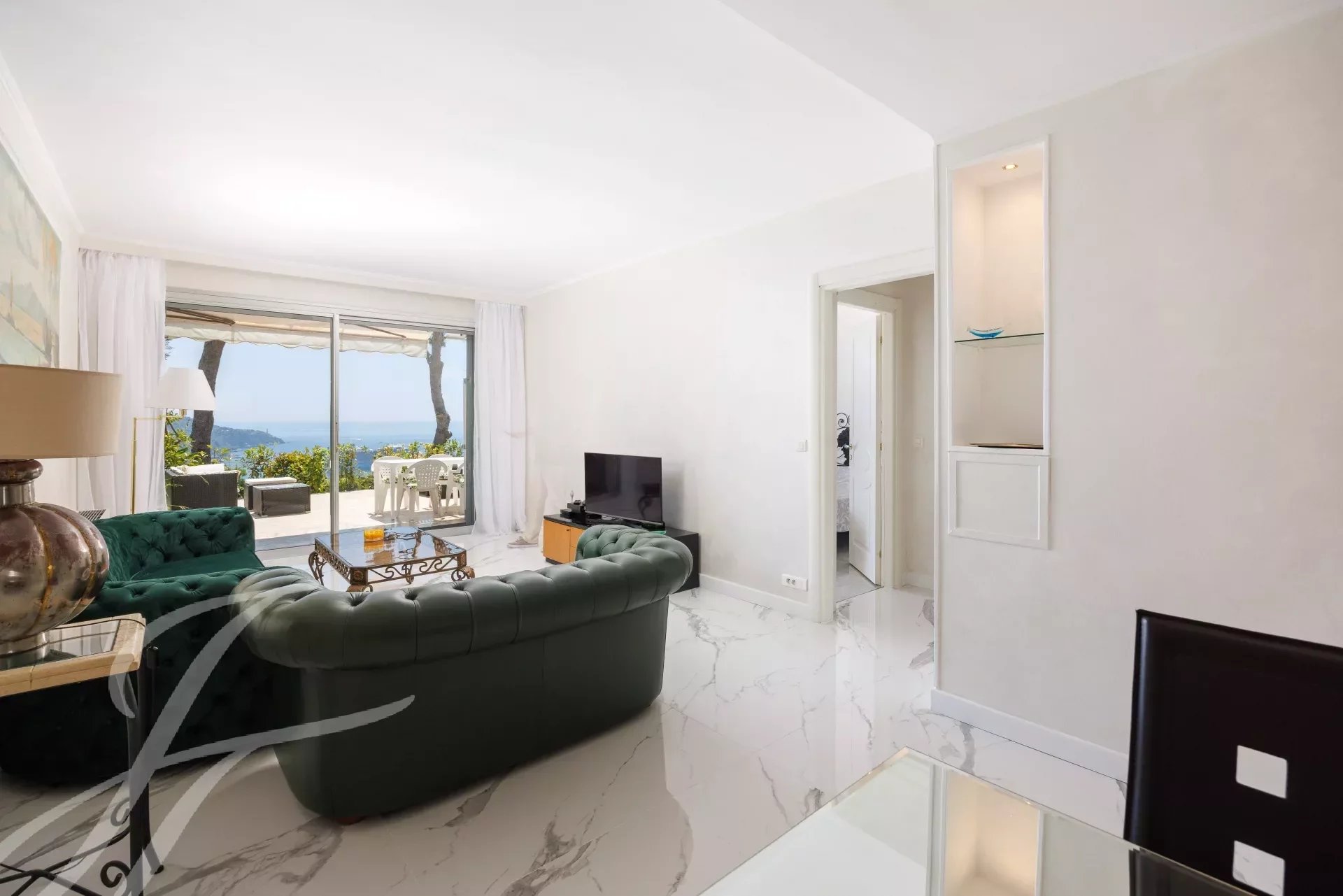 Numa residência de luxo, um agradável apartamento de 3 assoalhadas com 37 m² de terraço que oferece uma vista soberba sobre o mar e Cap Ferrat, perto de todas as comodidades.