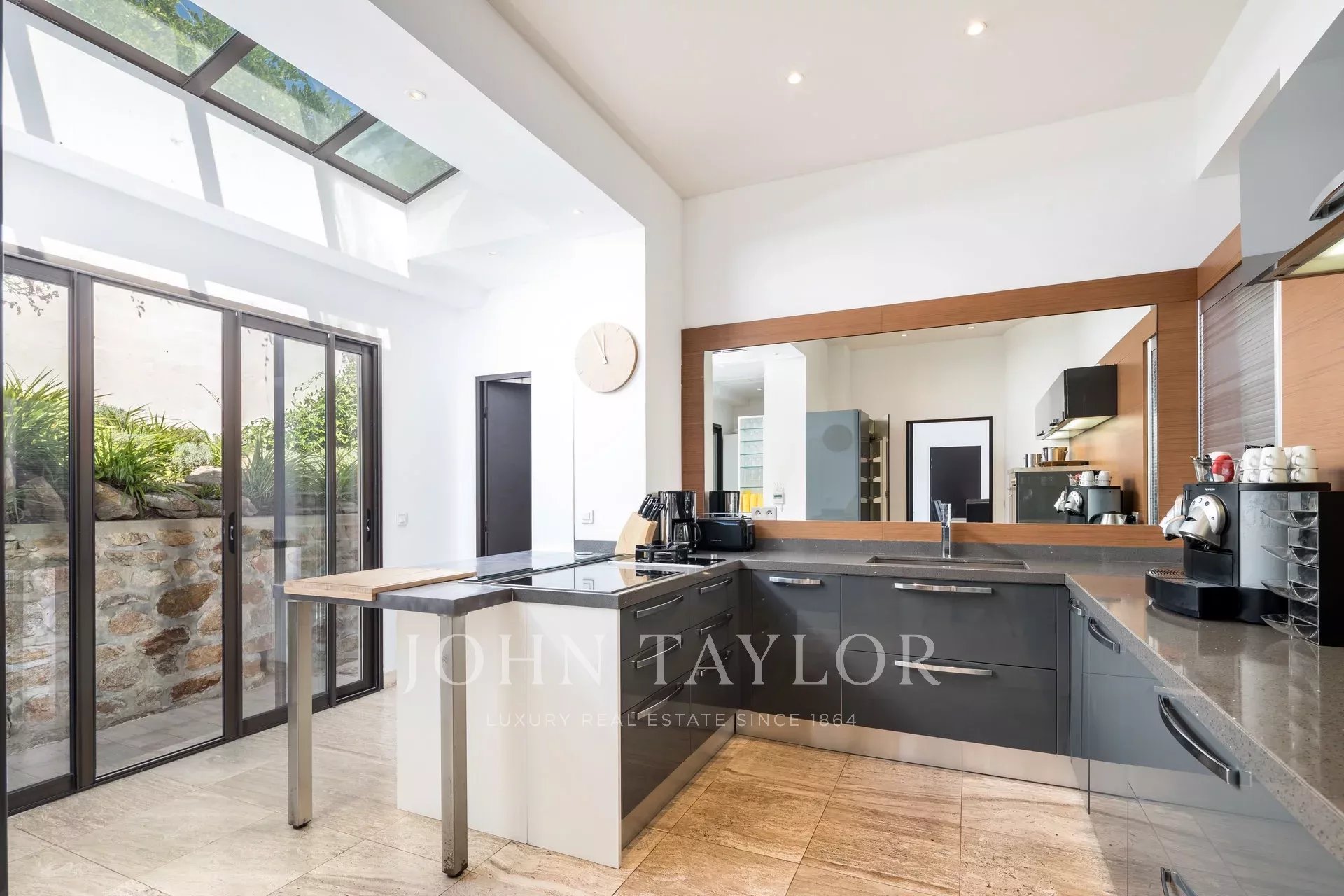 Bonita moradia térrea "à beira-mar" com mais de 300m2 de área habitável, completamente renovada e redecorada recentemente, com acesso direto e privado ao mar. Vista panorâmica sobre as ilhas Lérins e o Cabo de Antibes.