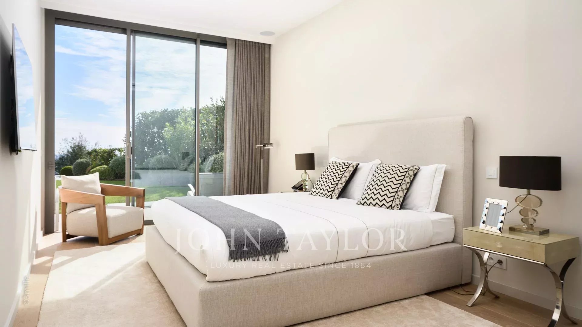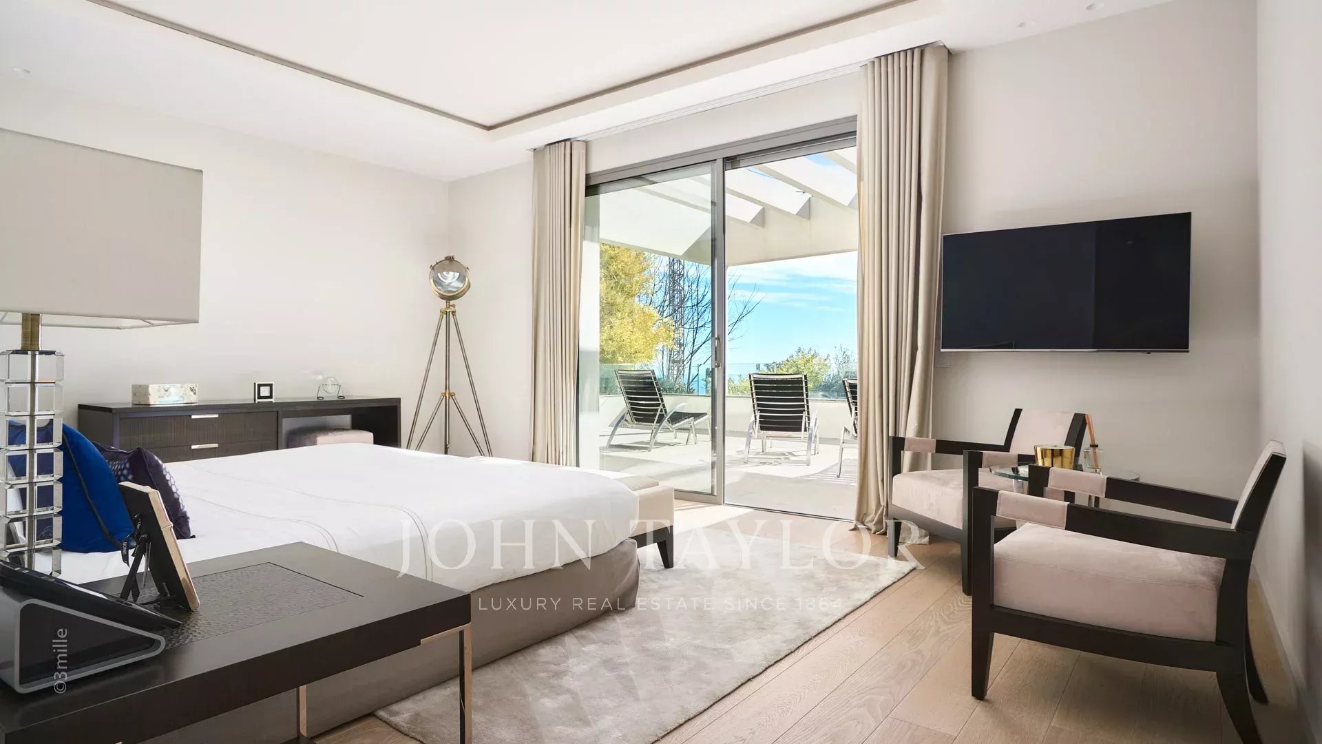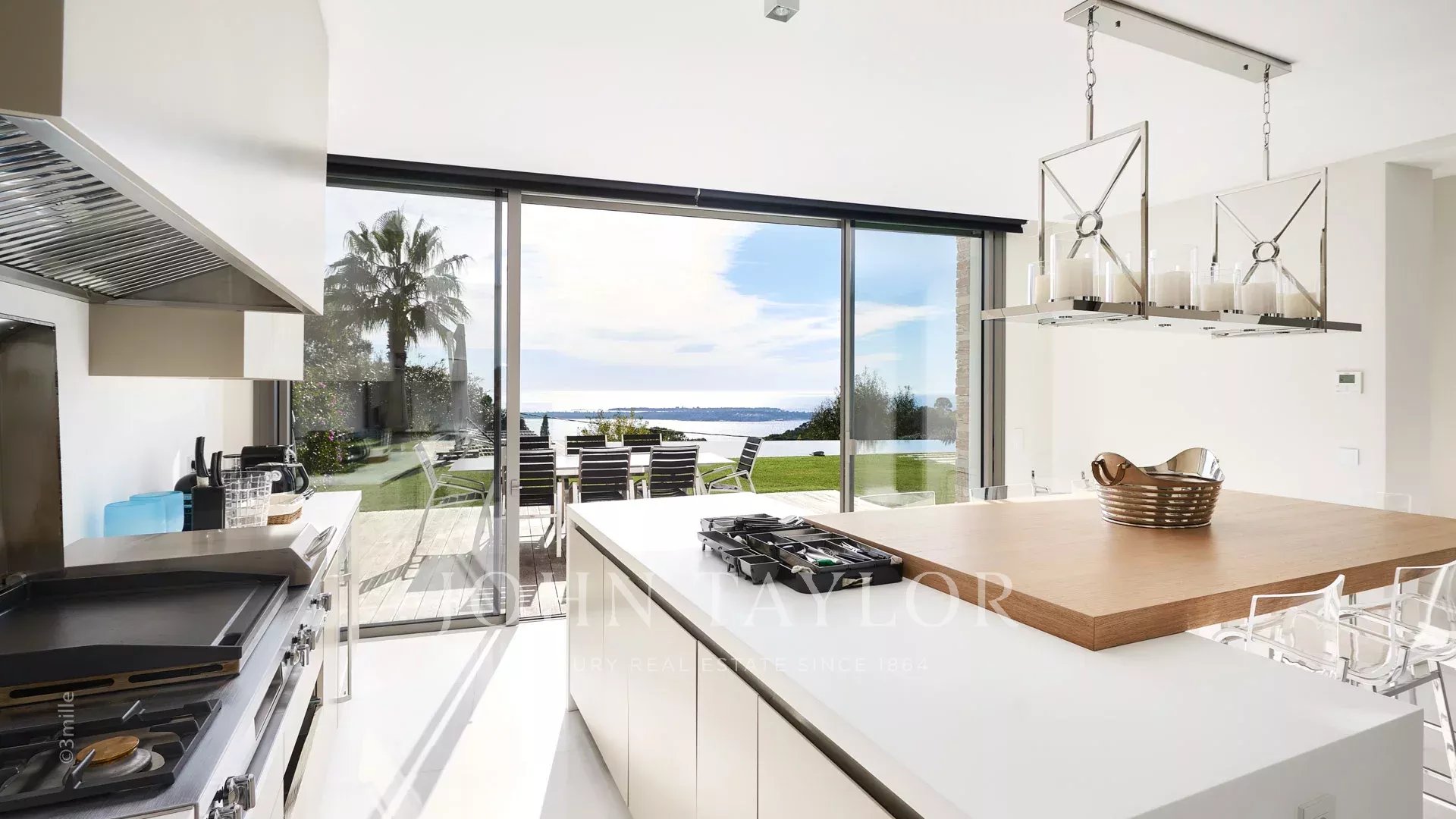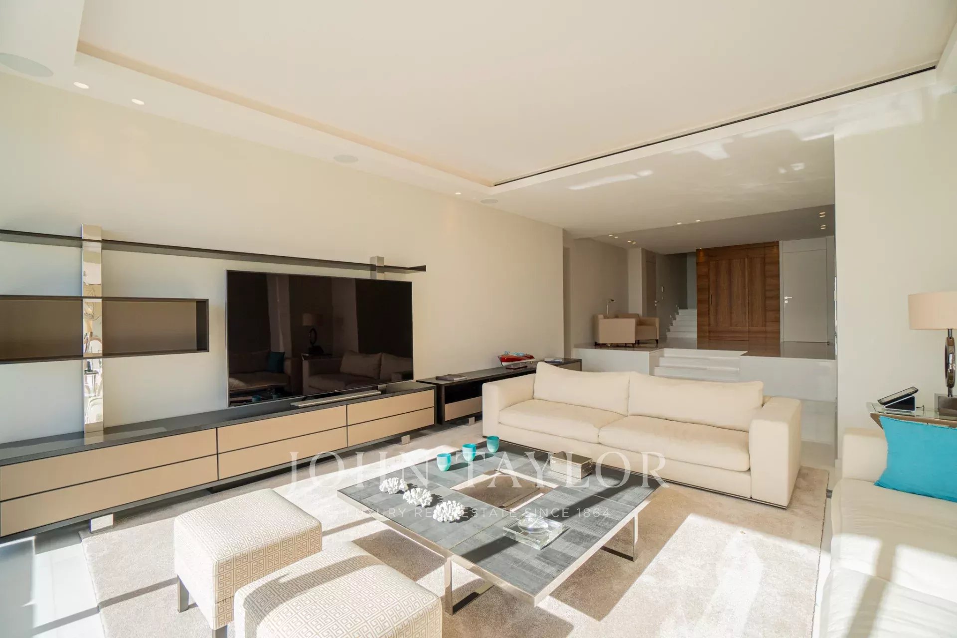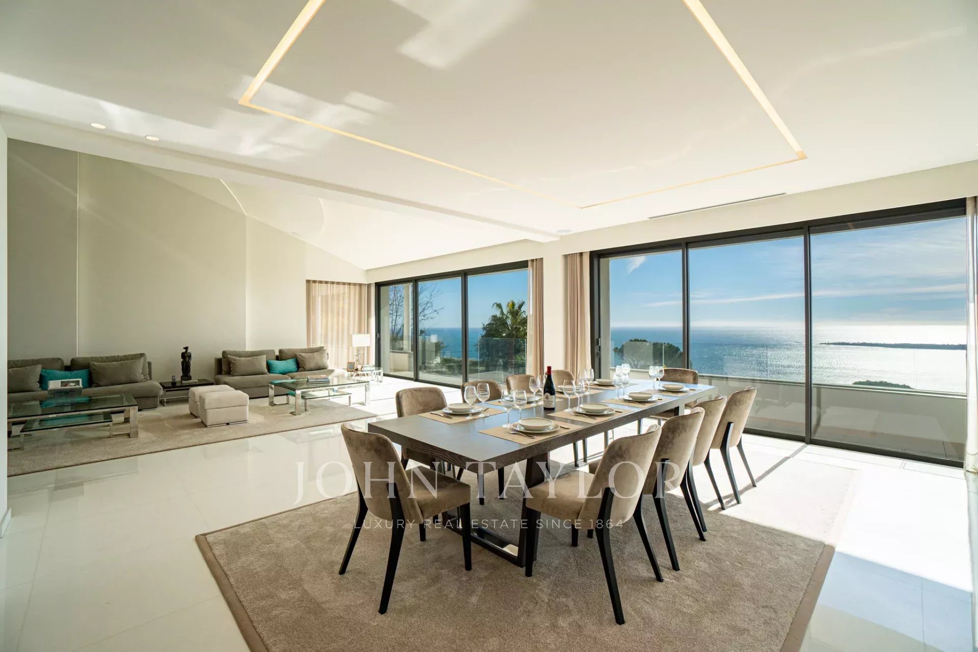 Nas alturas de Cannes, numa posição dominante com vista panorâmica para o mar, as ilhas Lérins, Cap d'Antibes e o maciço de Estérel, uma bela moradia nova de estilo contemporâneo com ar condicionado e caraterísticas de alta qualidade, oferecendo cerca de 630 m² de espaço habitacional num belo terreno de 2.000 m².