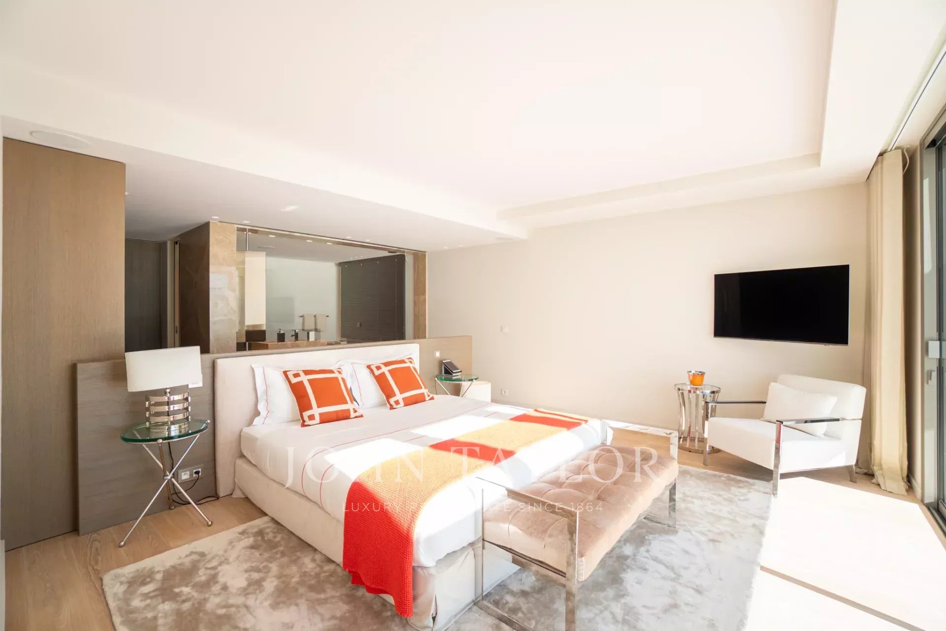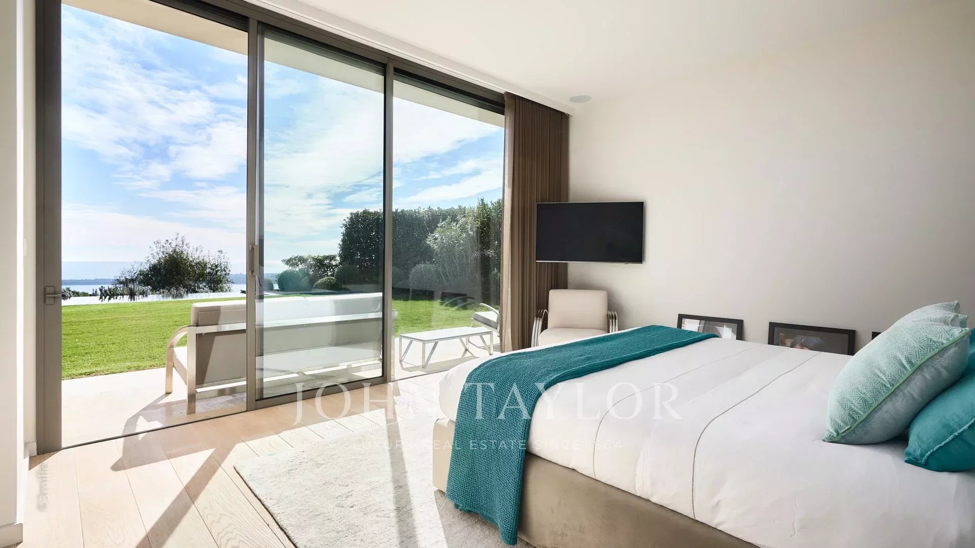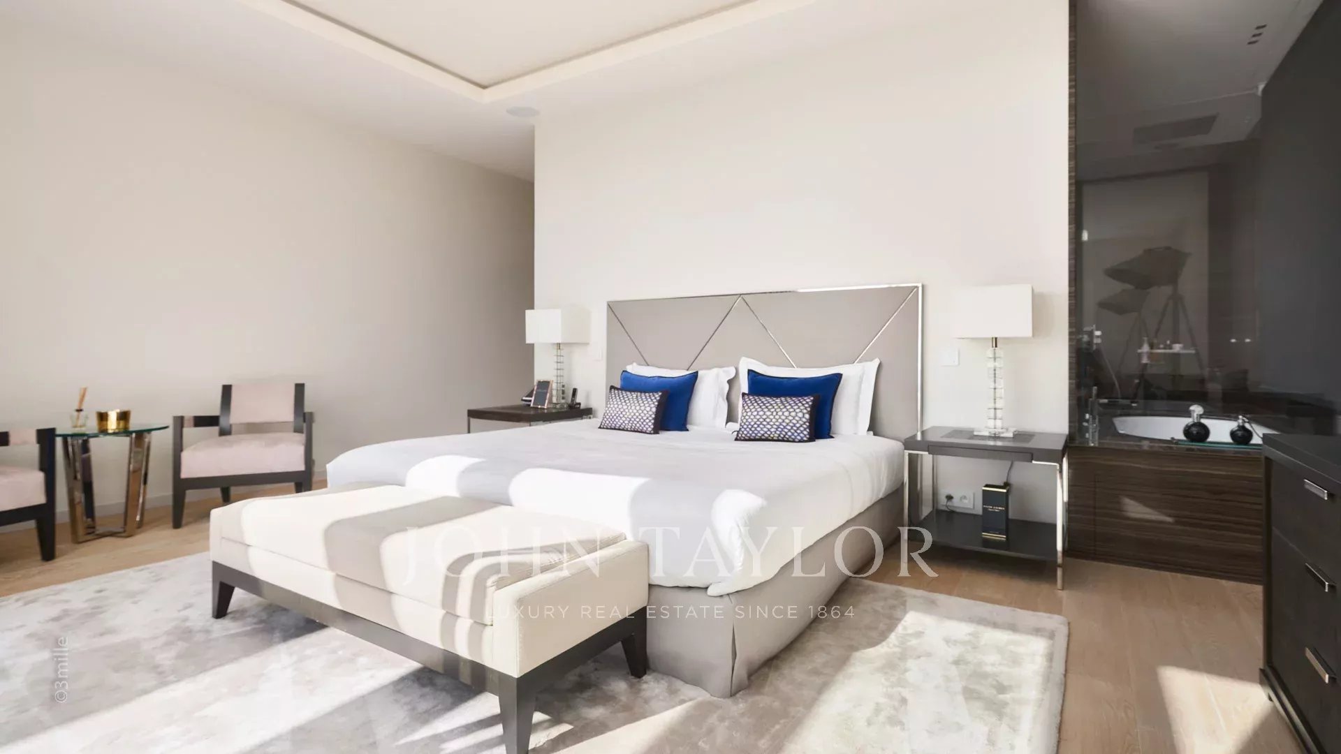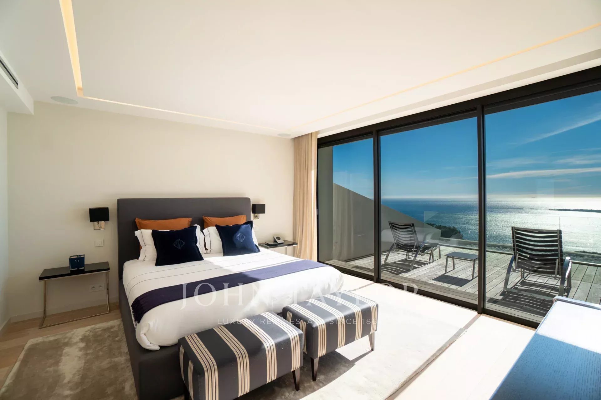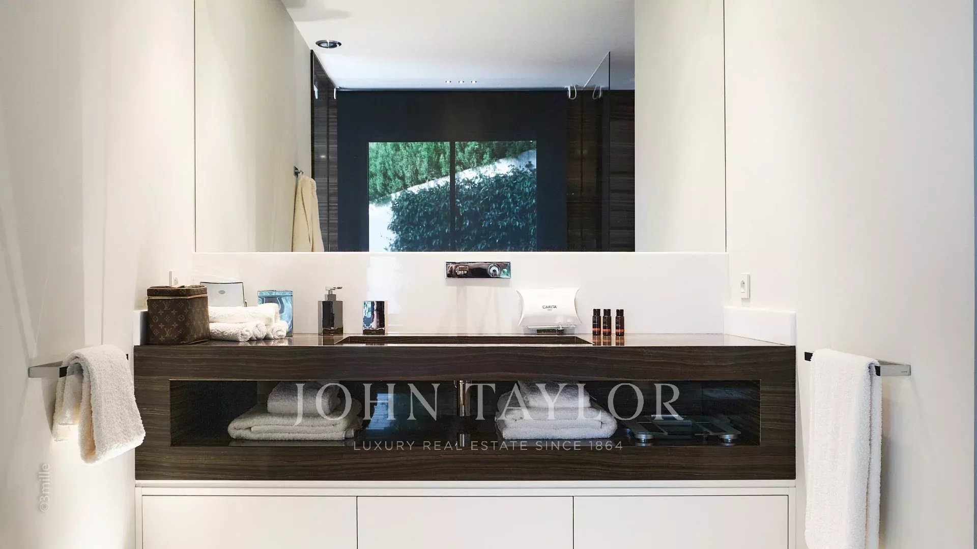 Nas alturas de Cannes, numa posição dominante com vista panorâmica para o mar, as ilhas Lérins, Cap d'Antibes e o maciço de Estérel, uma bela moradia nova de estilo contemporâneo com ar condicionado e caraterísticas de alta qualidade, oferecendo cerca de 630 m² de espaço habitacional num belo terreno de 2.000 m².