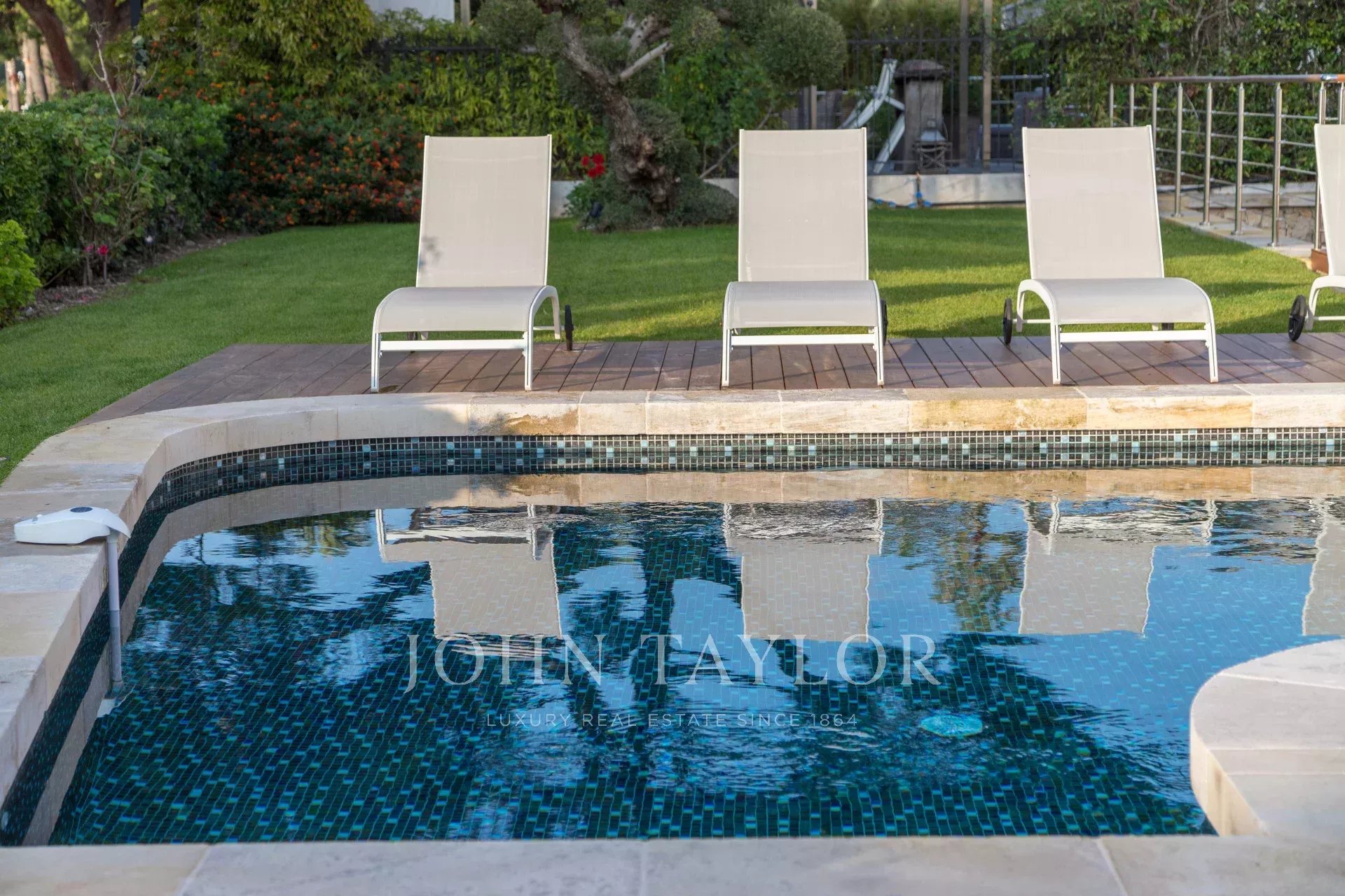 Numa propriedade privada na Croisette, uma bela moradia com ar condicionado, com 340 m2 de área de habitação em 2 níveis, totalmente e recentemente renovada, situada em 650 m2 de jardim plano (com terraços).