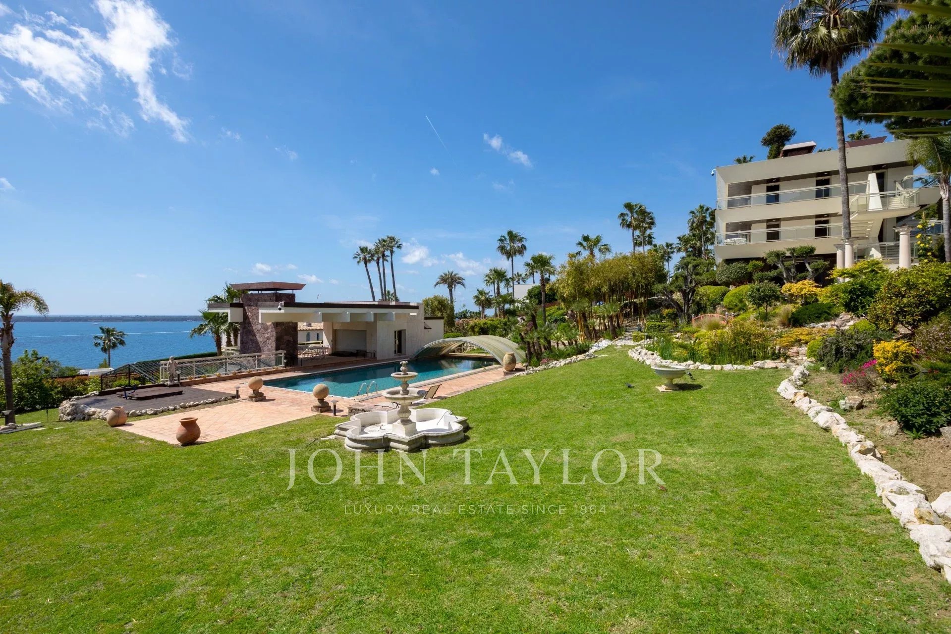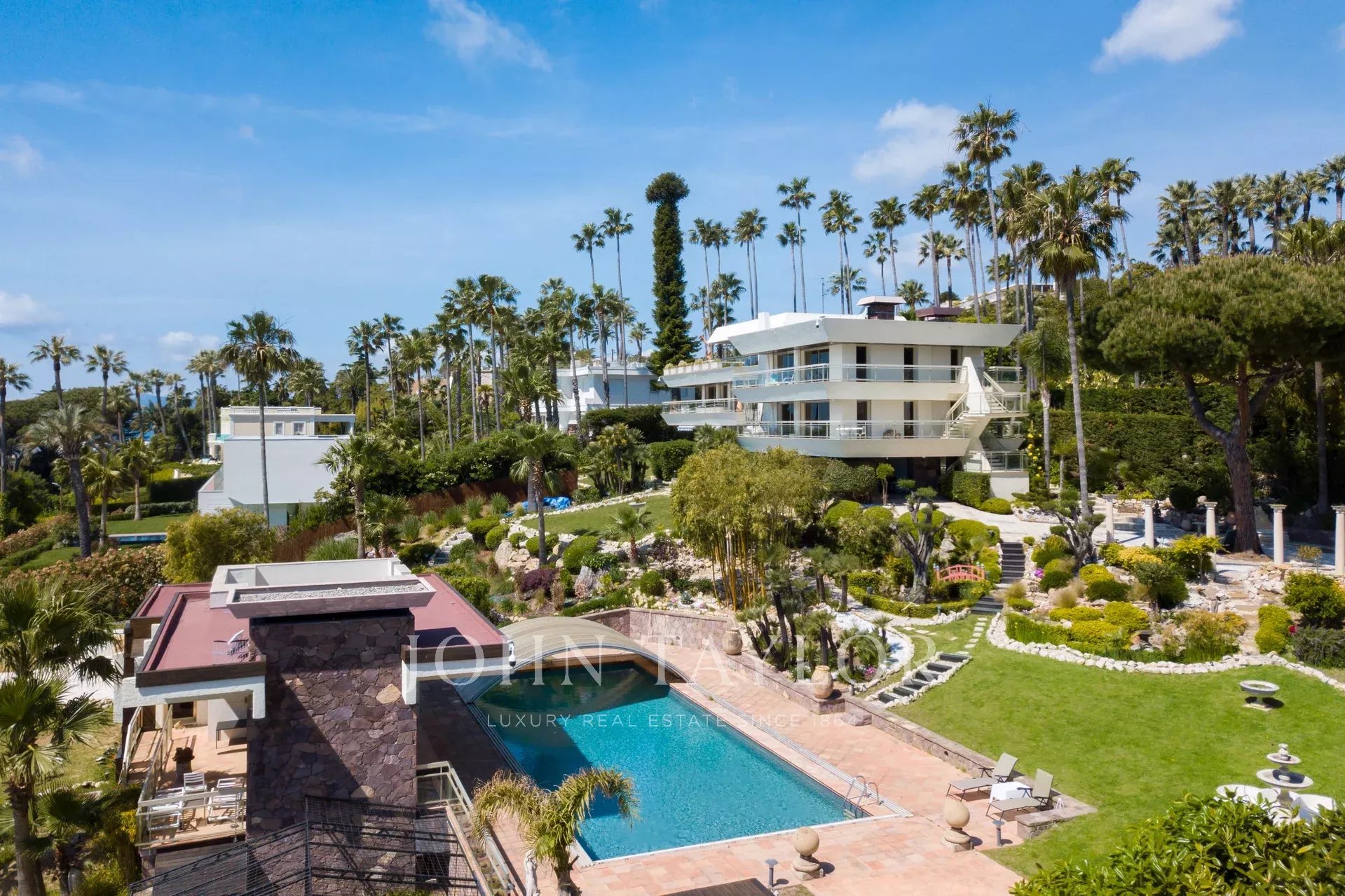 Numa propriedade segura, grande moradia de 700 m2 inserida num terreno de cerca de 3.000 m2 com vista panorâmica para o mar e as Ilhas de Lérins.