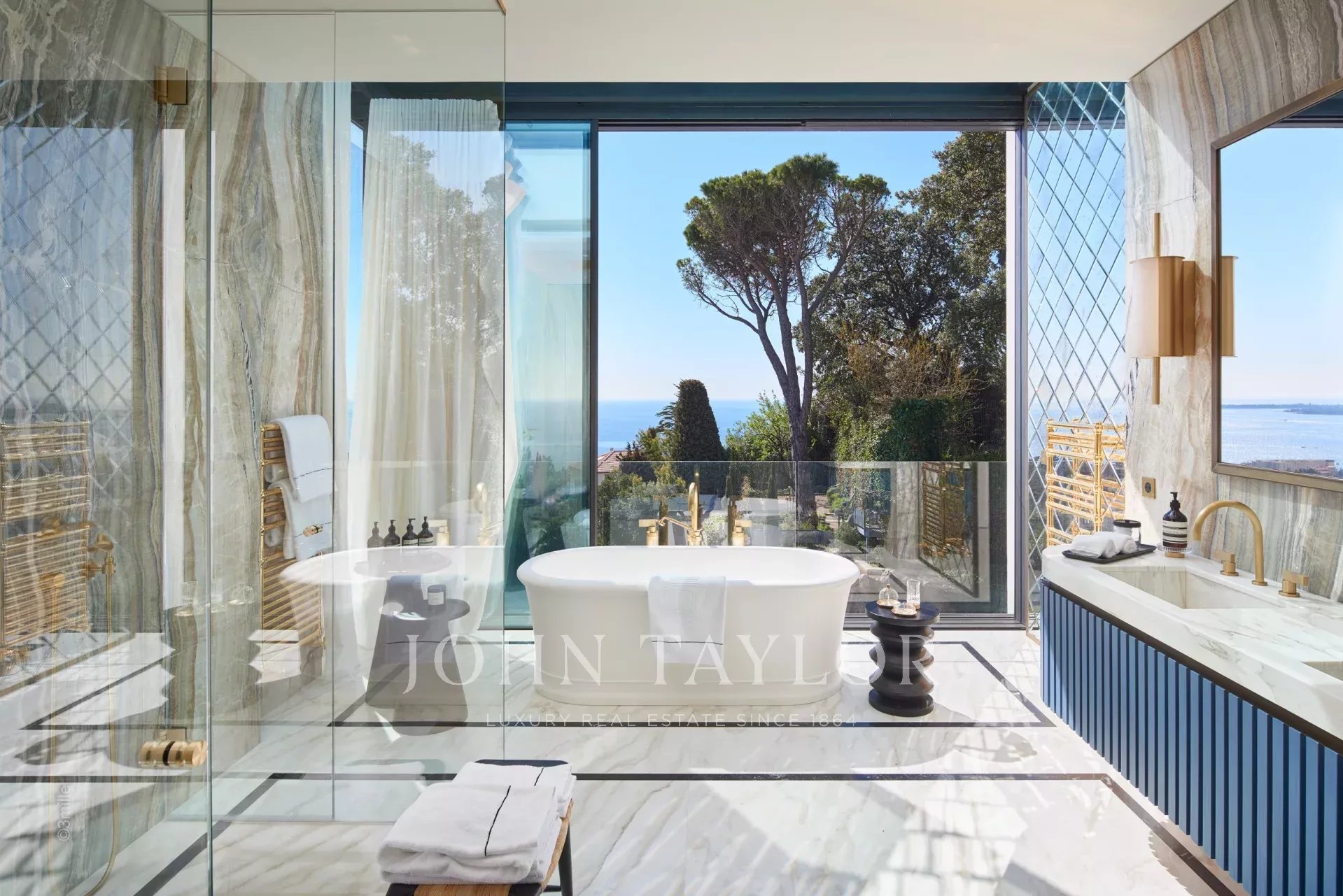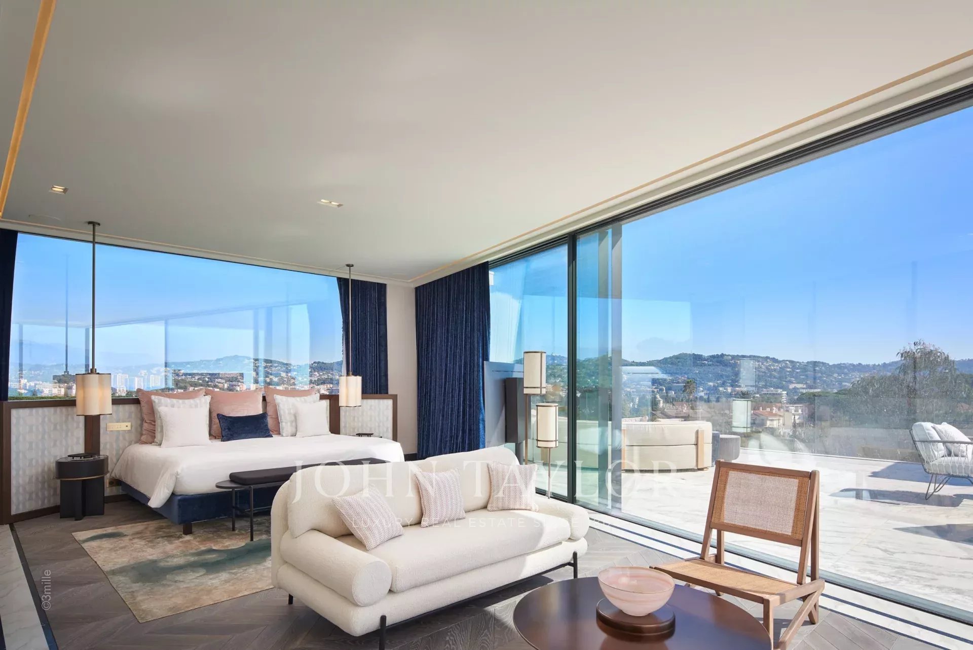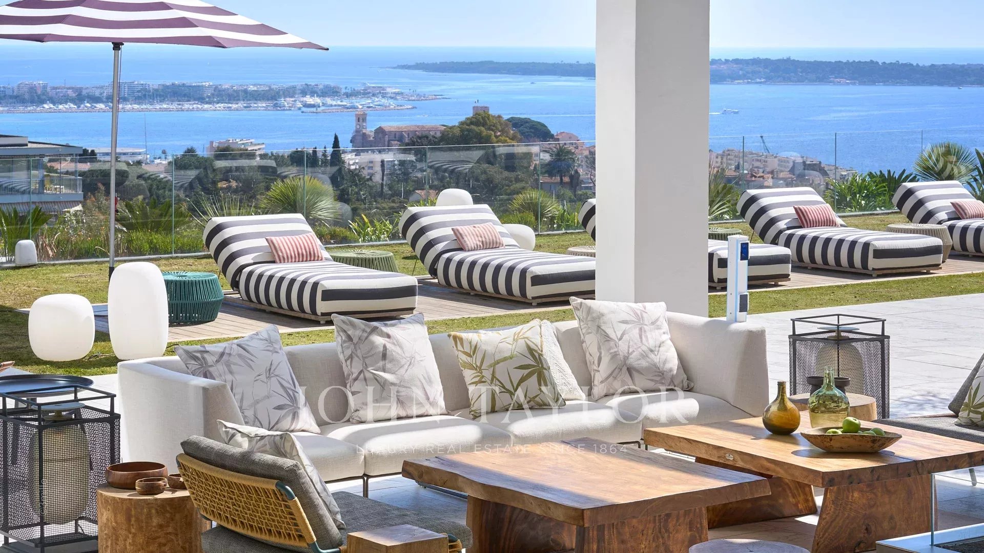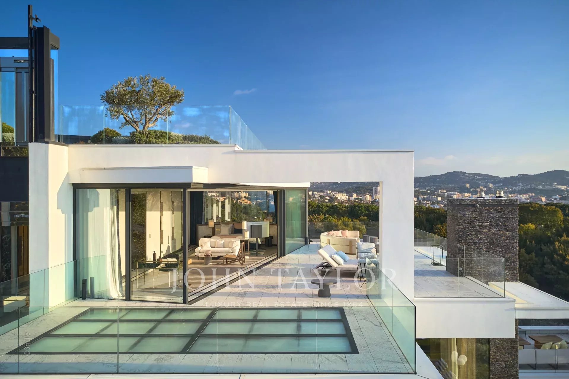O terraço oferece vistas panorâmicas deslumbrantes sobre a Baía de Cannes, Le Suquet e as Iles de Lérins, enquanto as instalações interiores incluem um hammam, sauna, jacuzzi aquecido, sala de fitness, sala de projeção/cinema, aquário, elevador panorâmico, duas lareiras, lavandaria totalmente equipada, duas cozinhas (uma das quais profissional), linha de Internet dedicada, iPads disponíveis, sistema de altifalantes centralizado, videovigilância e alarme para uma tranquilidade absoluta.