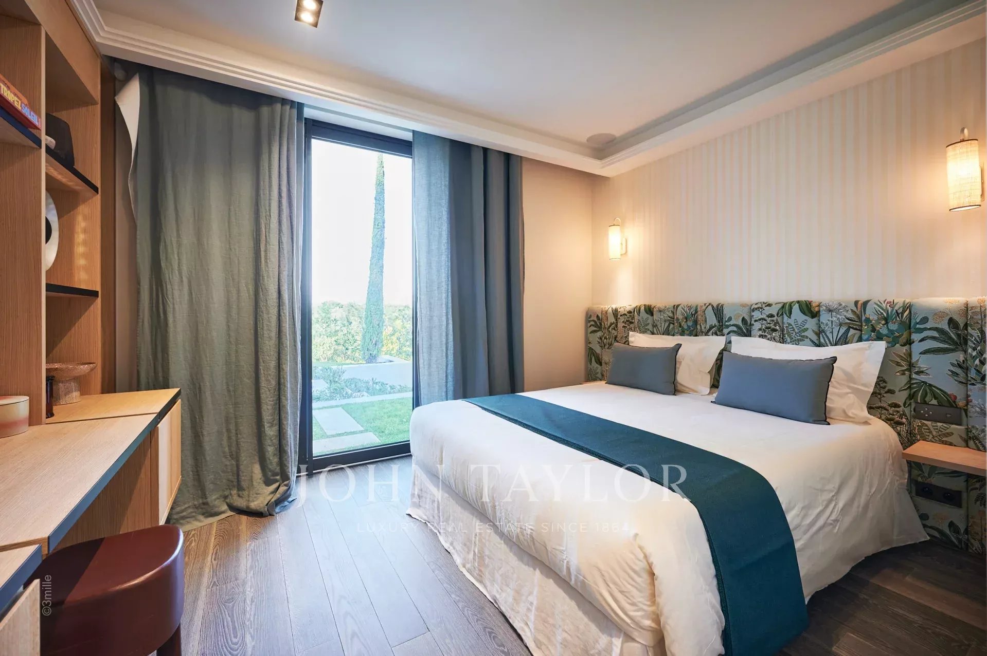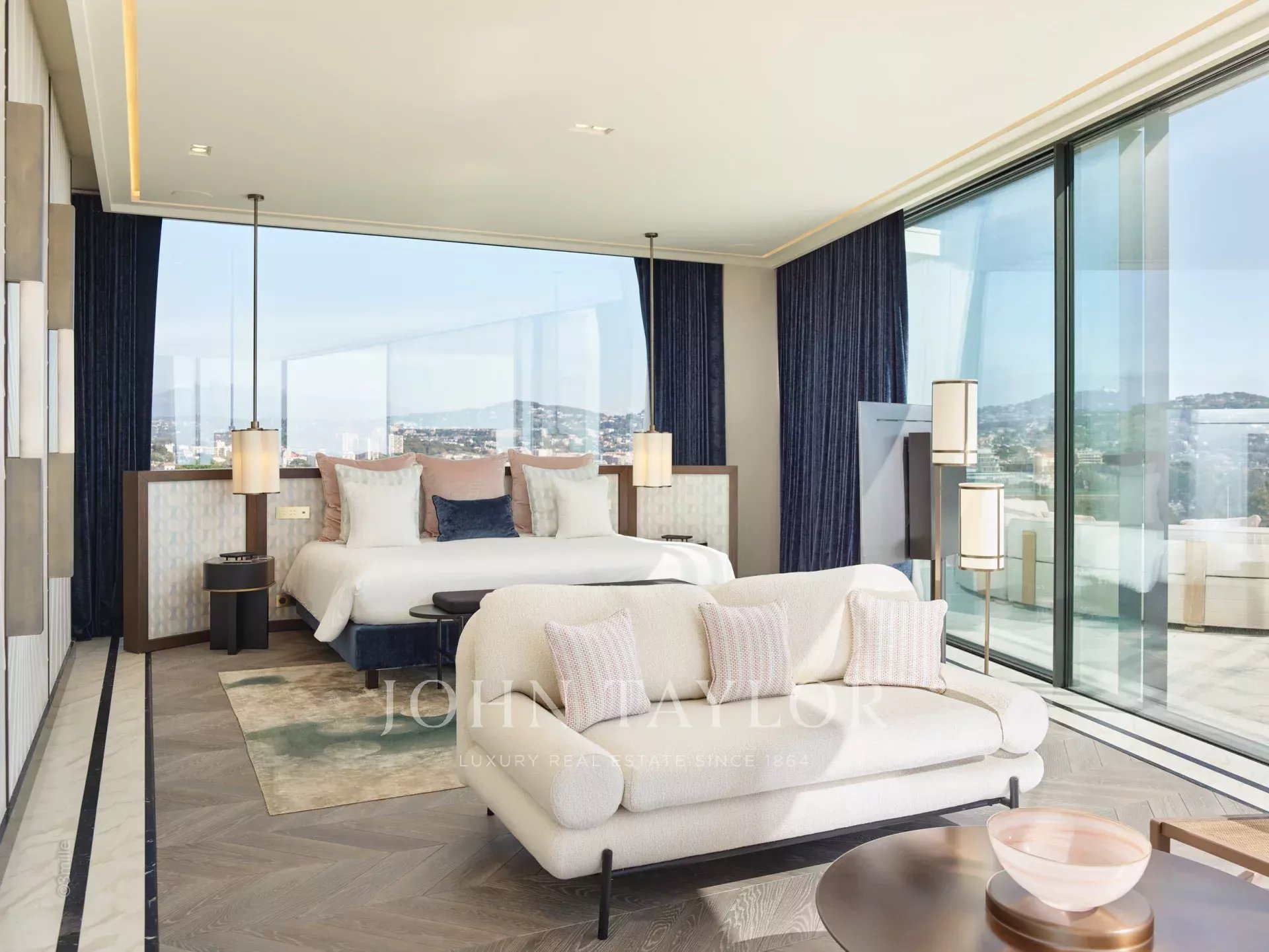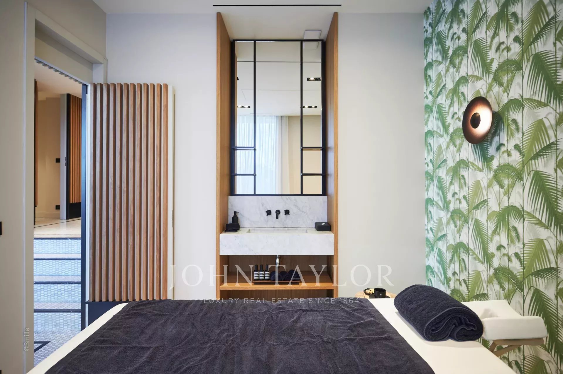 O terraço oferece vistas panorâmicas deslumbrantes sobre a Baía de Cannes, Le Suquet e as Iles de Lérins, enquanto as instalações interiores incluem um hammam, sauna, jacuzzi aquecido, sala de fitness, sala de projeção/cinema, aquário, elevador panorâmico, duas lareiras, lavandaria totalmente equipada, duas cozinhas (uma das quais profissional), linha de Internet dedicada, iPads disponíveis, sistema de altifalantes centralizado, videovigilância e alarme para uma tranquilidade absoluta.