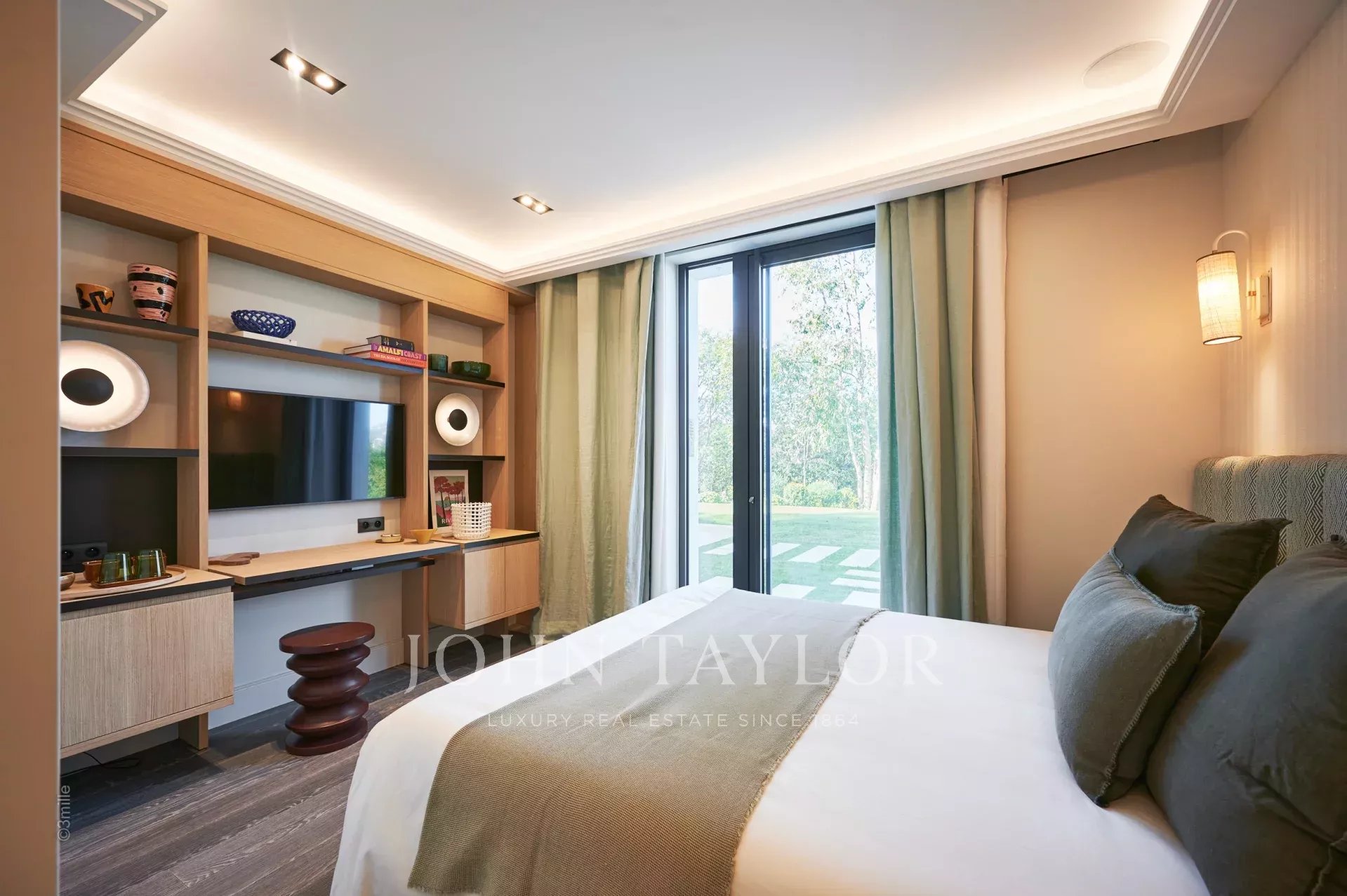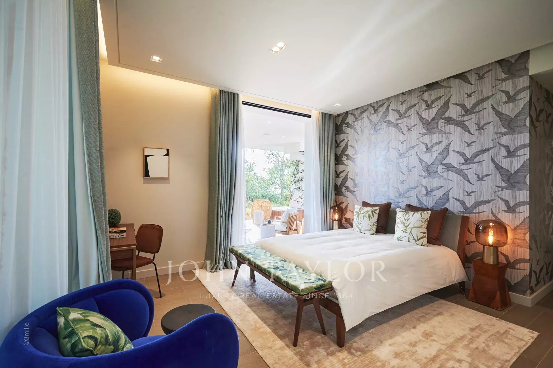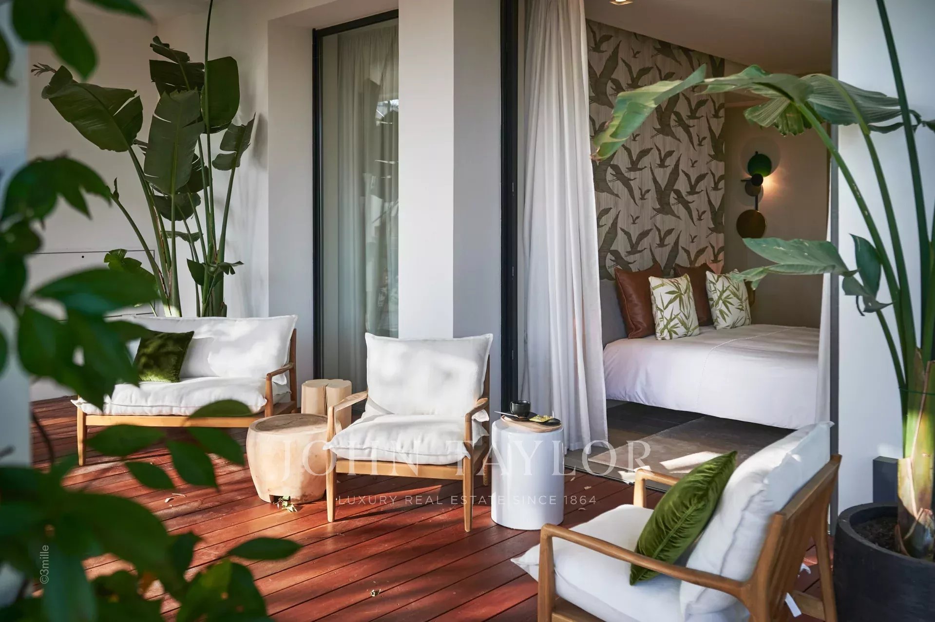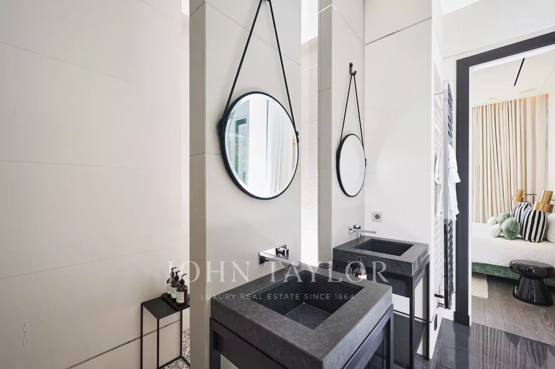 O terraço oferece vistas panorâmicas deslumbrantes sobre a Baía de Cannes, Le Suquet e as Iles de Lérins, enquanto as instalações interiores incluem um hammam, sauna, jacuzzi aquecido, sala de fitness, sala de projeção/cinema, aquário, elevador panorâmico, duas lareiras, lavandaria totalmente equipada, duas cozinhas (uma das quais profissional), linha de Internet dedicada, iPads disponíveis, sistema de altifalantes centralizado, videovigilância e alarme para uma tranquilidade absoluta.