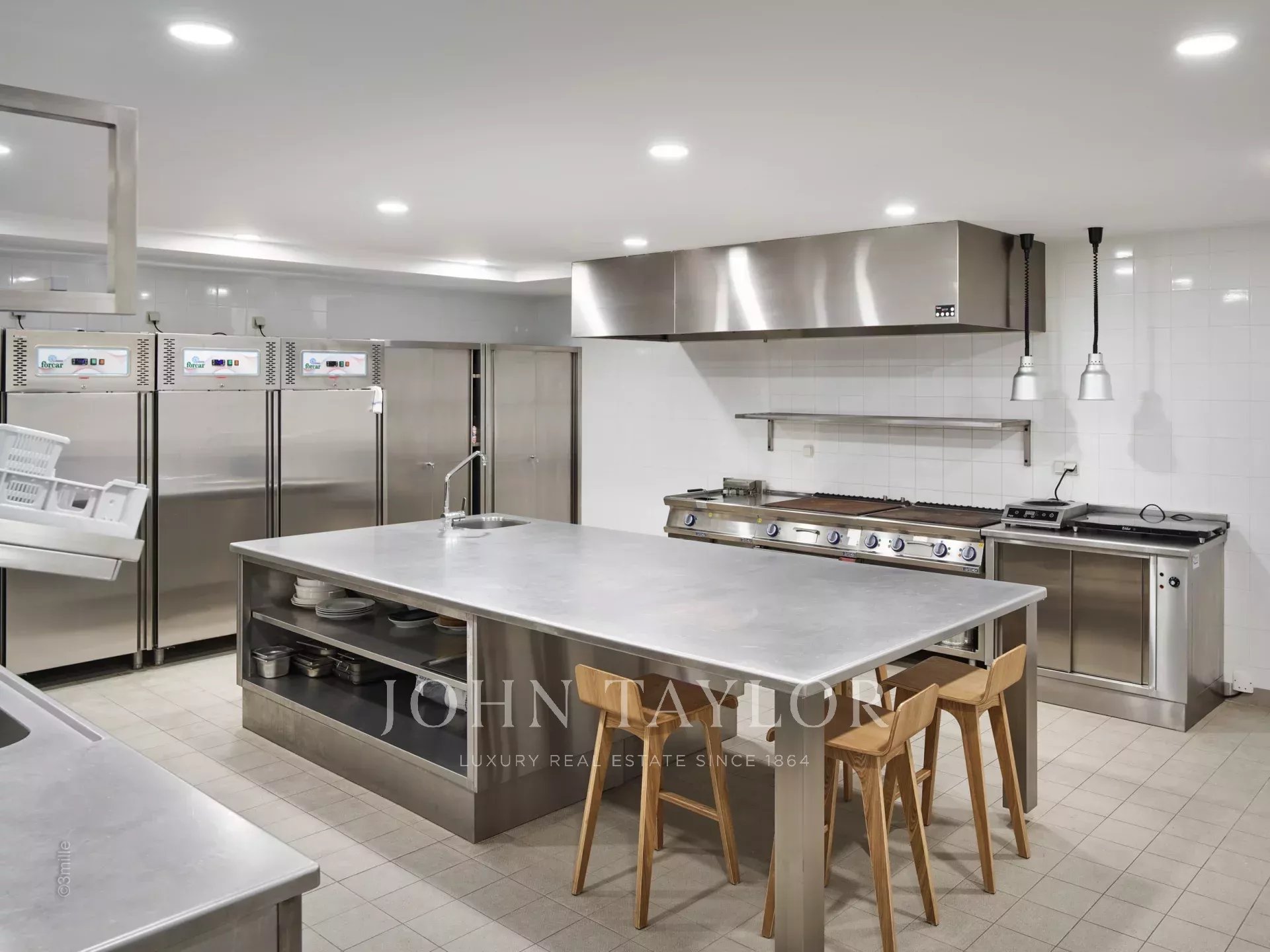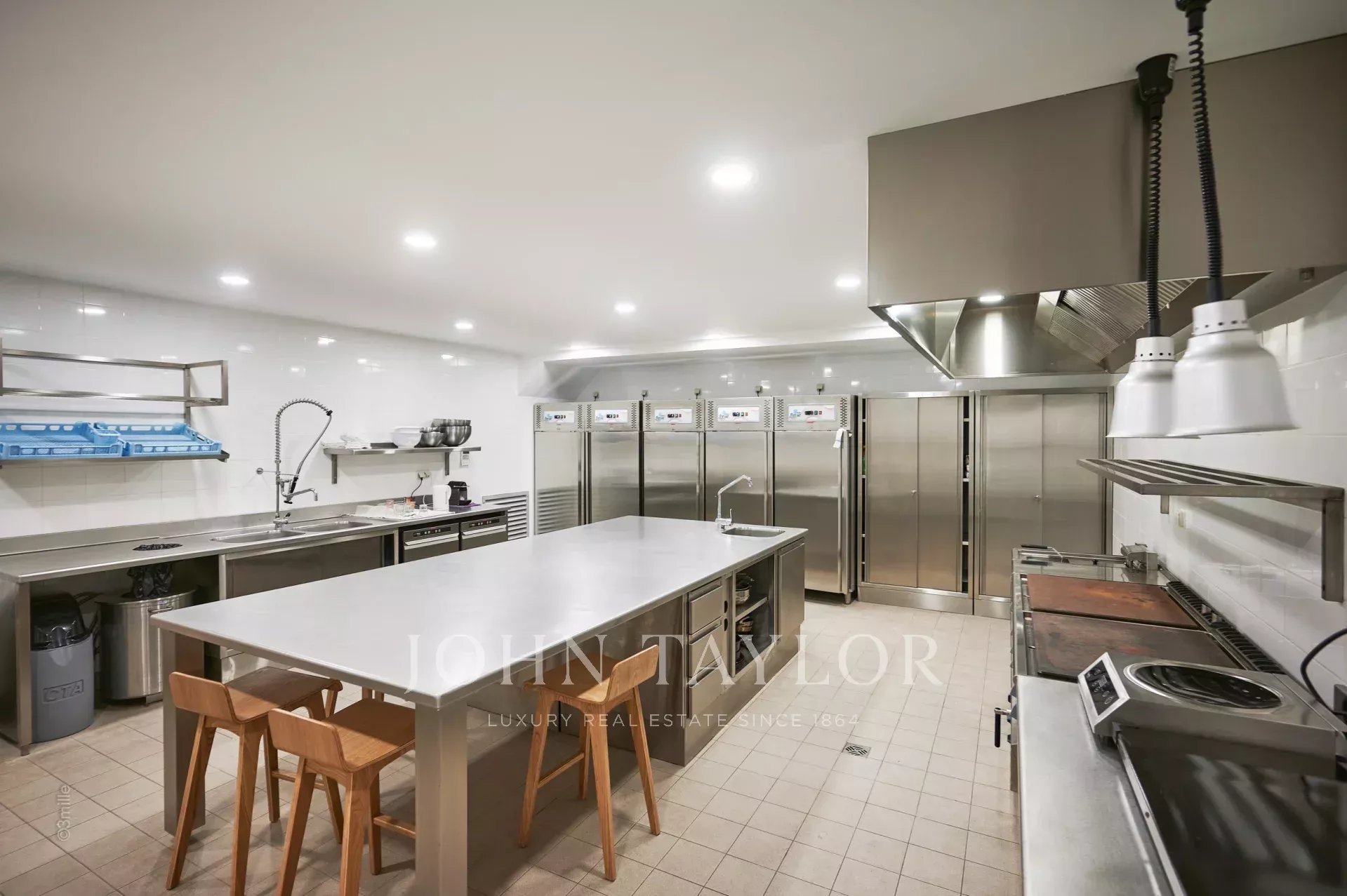 A cave alberga uma lavandaria, uma cozinha profissional e acesso ao parque de estacionamento interior com dois lugares de estacionamento dedicados.