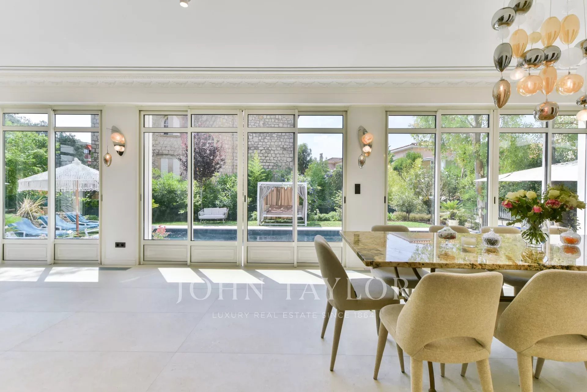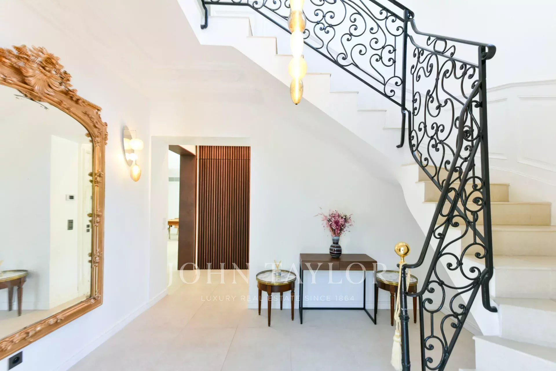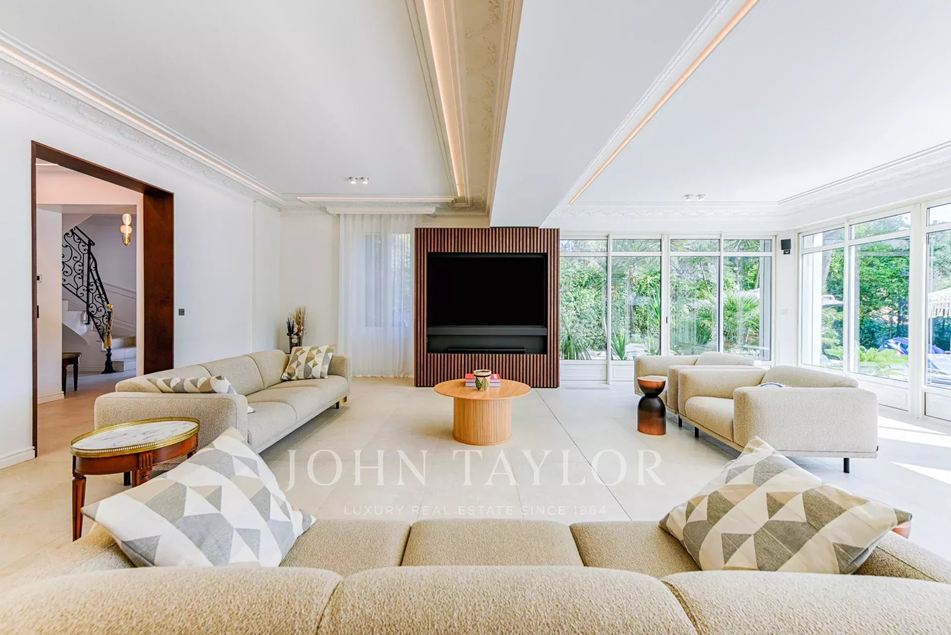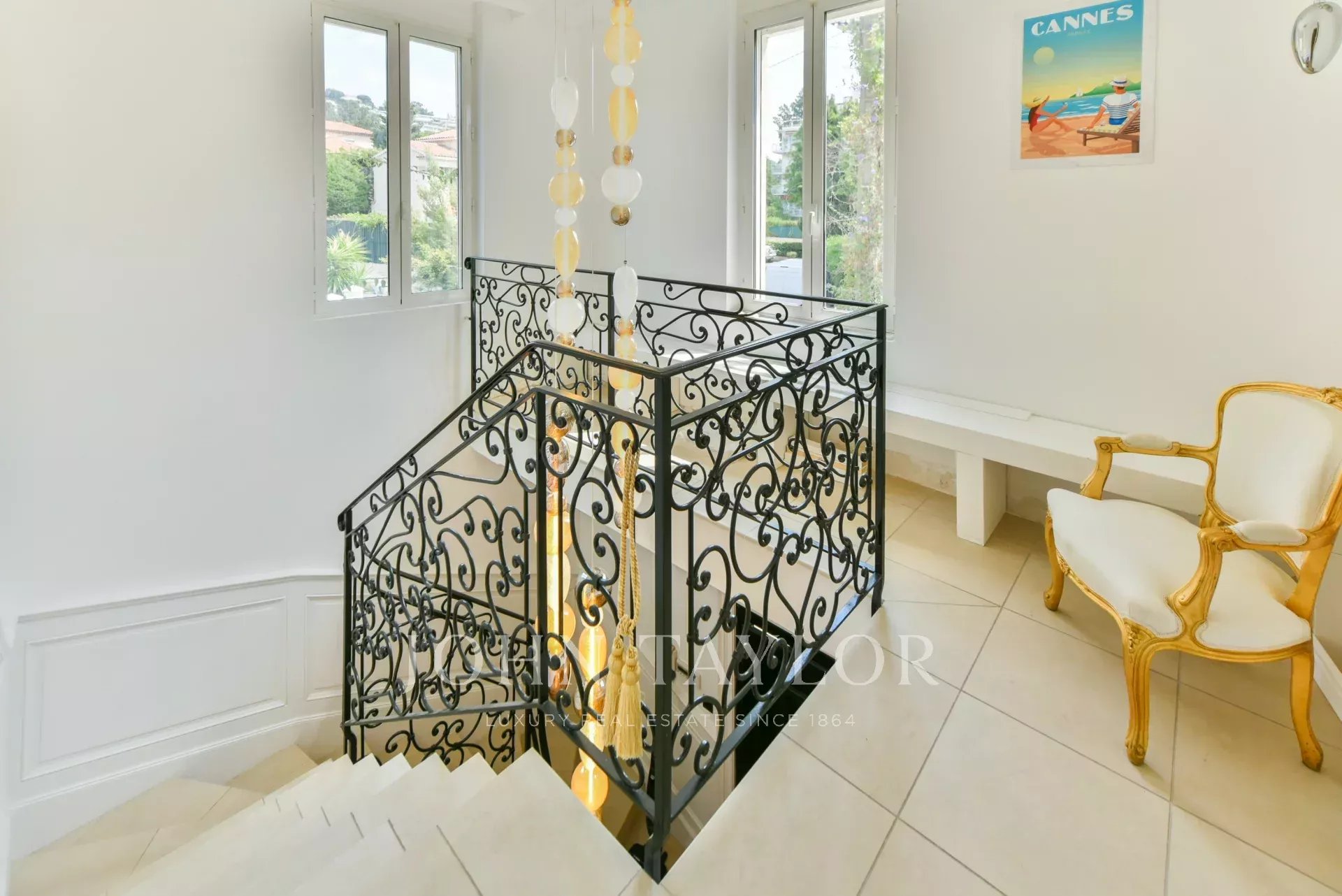 A poucos minutos do centro da cidade de Cannes, esta bela moradia de dois pisos, totalmente climatizada, oferece 300 m2 de espaço habitacional. Completamente renovada, apresenta um design interior atraente, materiais e acessórios topo de gama e terraços amplos e atraentes.