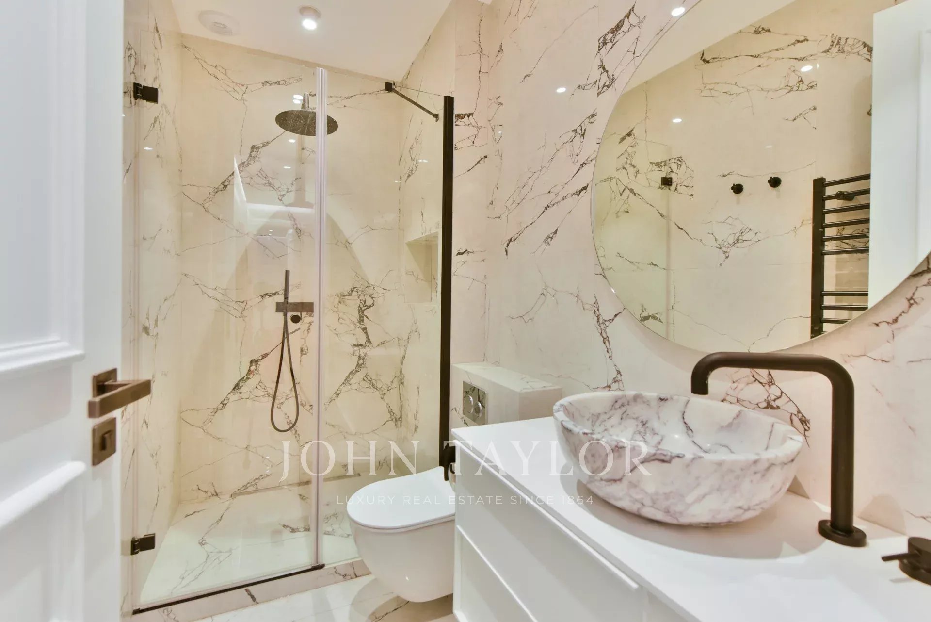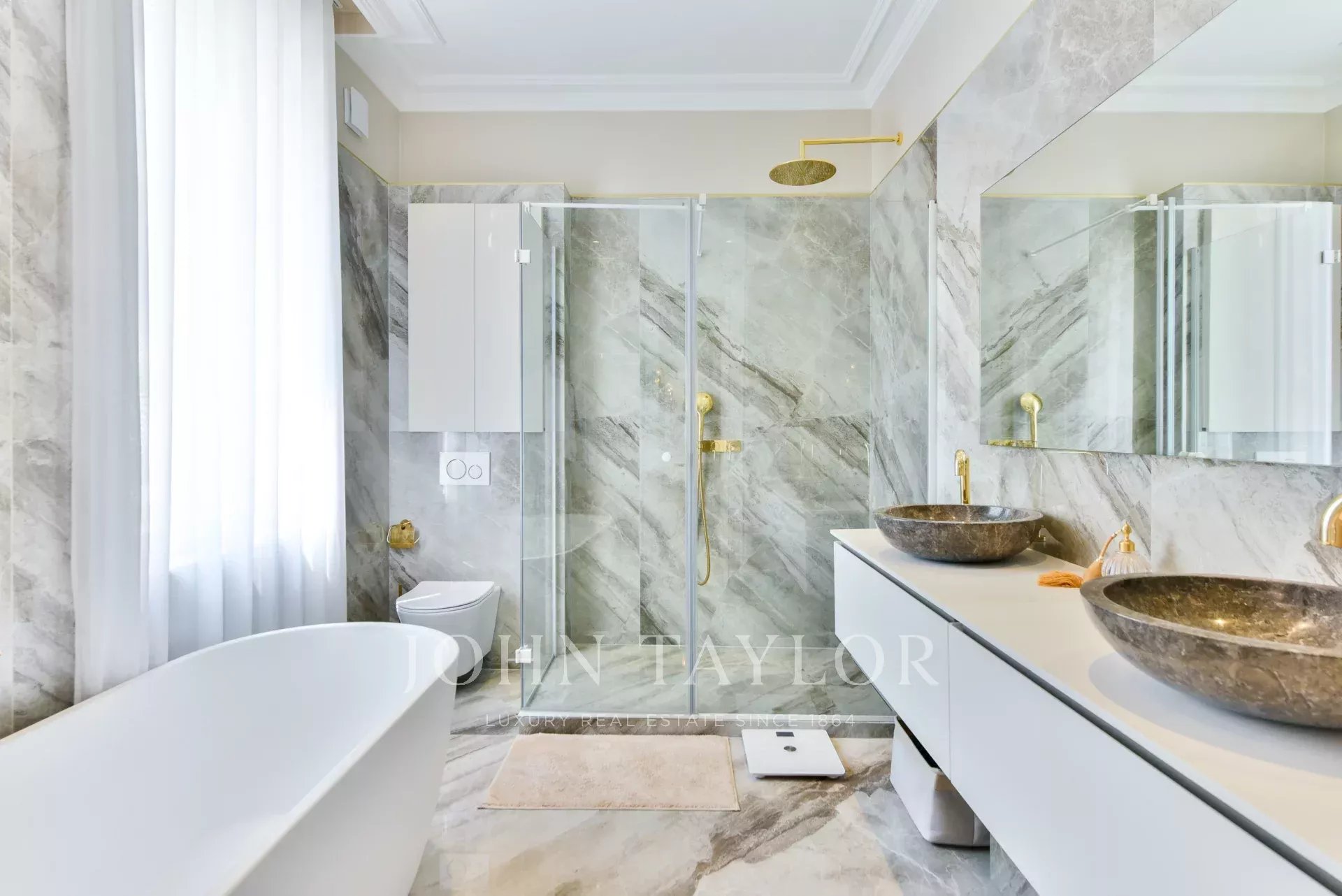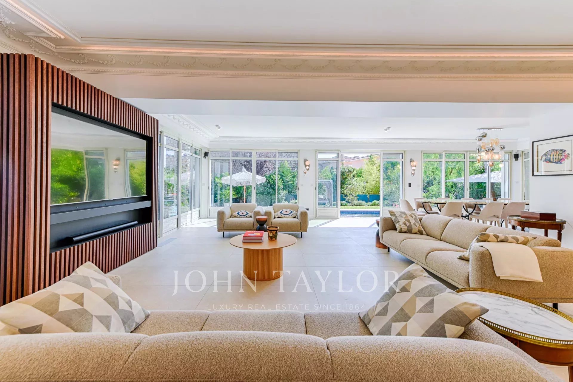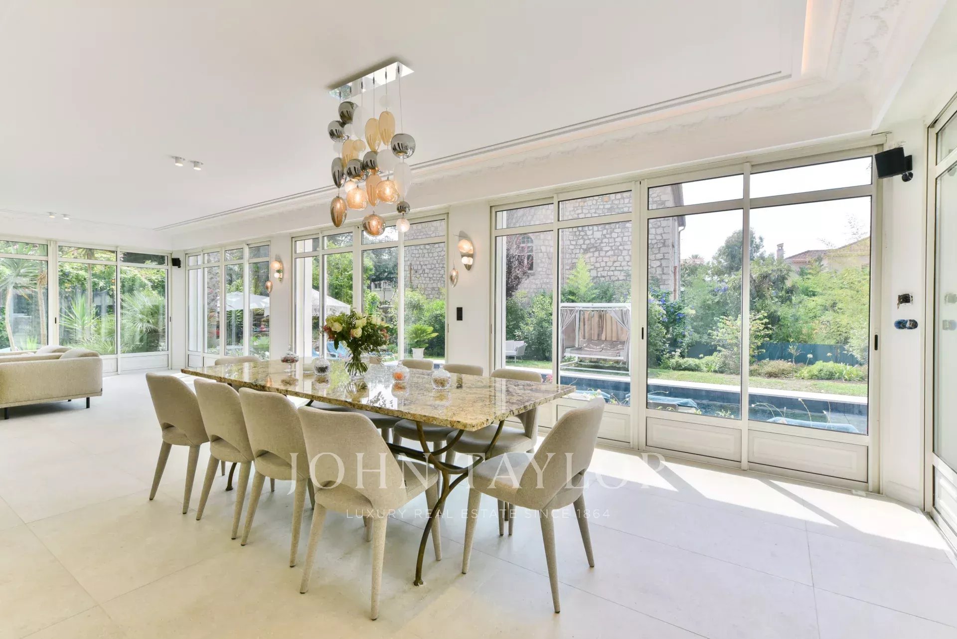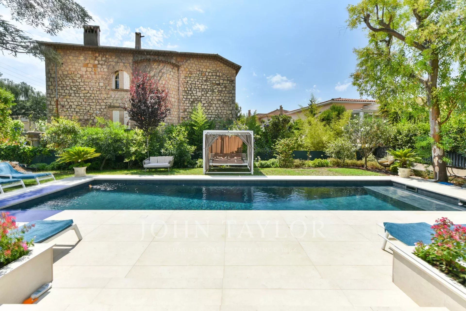 A poucos minutos do centro da cidade de Cannes, esta bela moradia de dois pisos, totalmente climatizada, oferece 300 m2 de espaço habitacional. Completamente renovada, apresenta um design interior atraente, materiais e acessórios topo de gama e terraços amplos e atraentes.