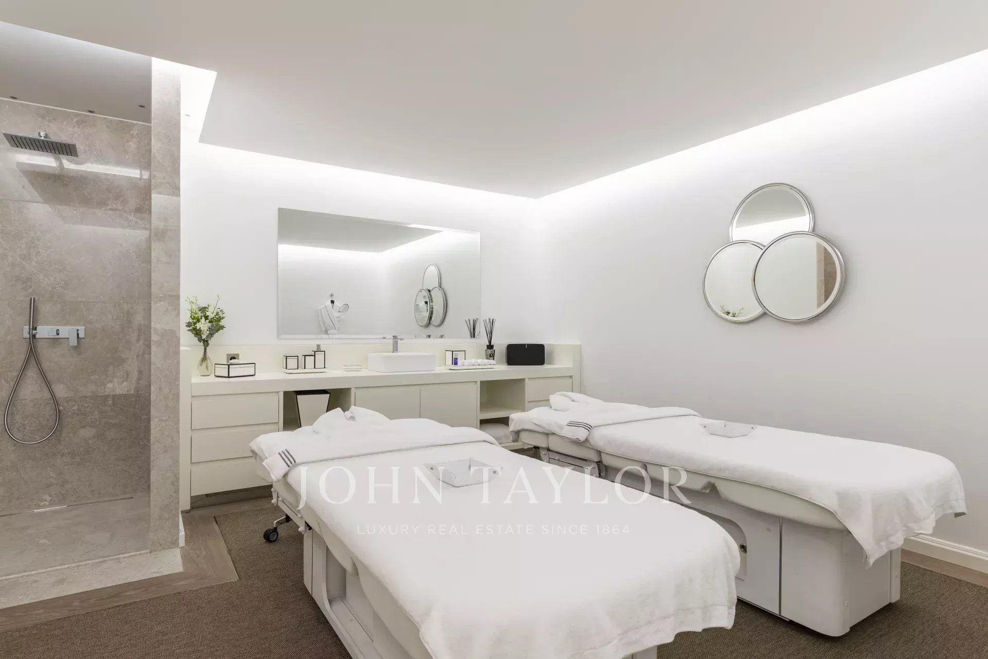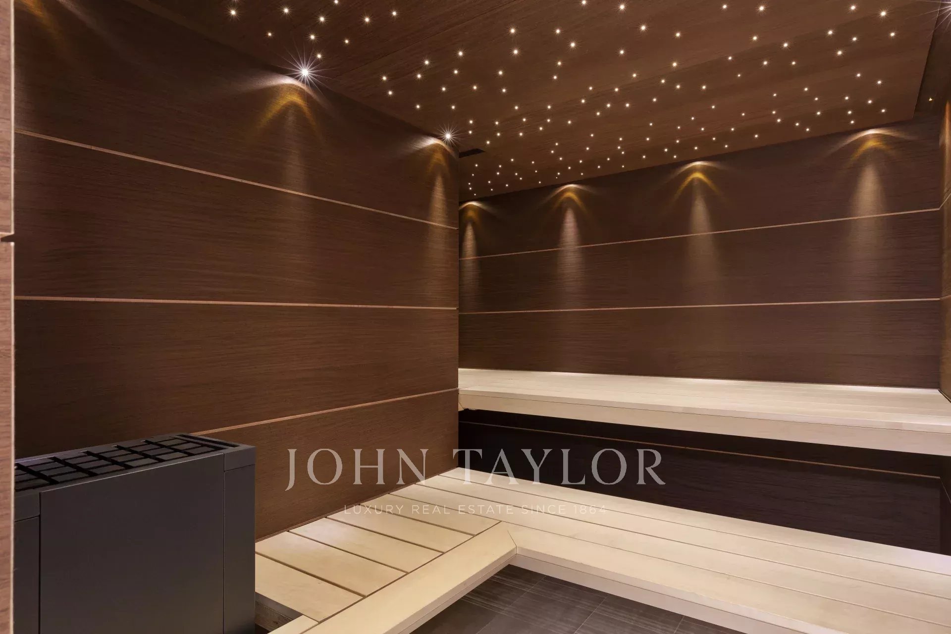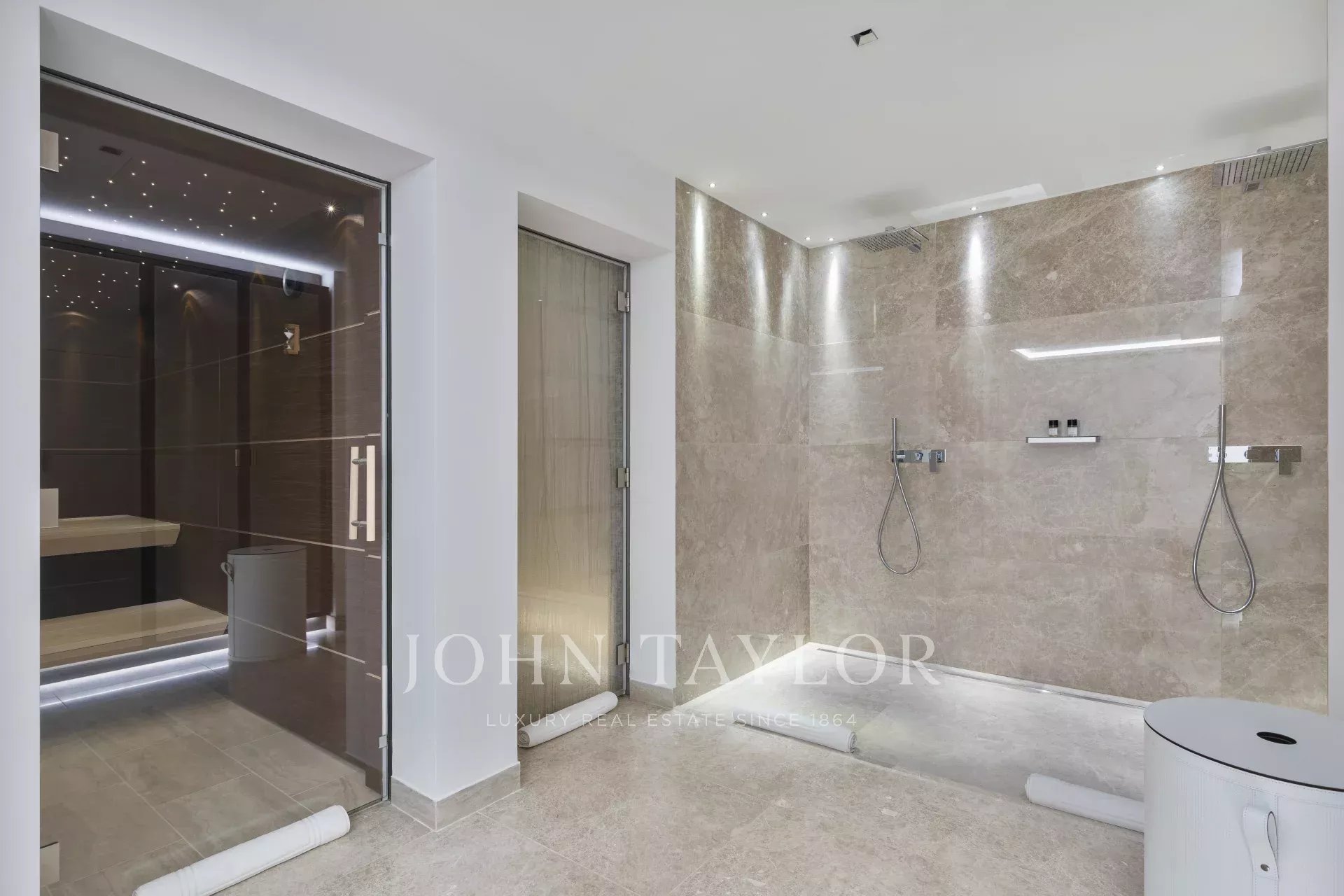Existe também uma área de bem-estar com hammam, sauna e duas salas de massagem, bem como uma grande piscina com cozinha e sala de jantar de verão para um máximo de 26 pessoas.