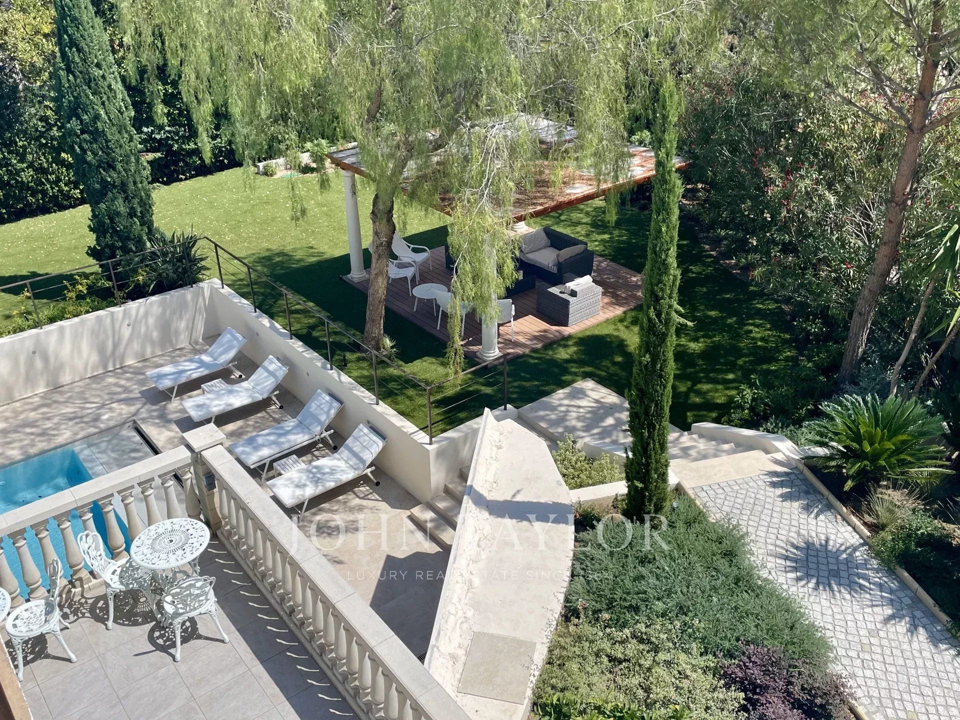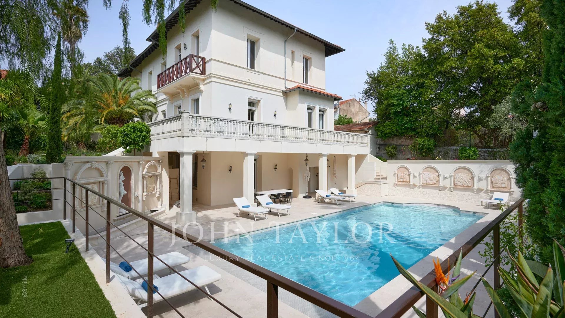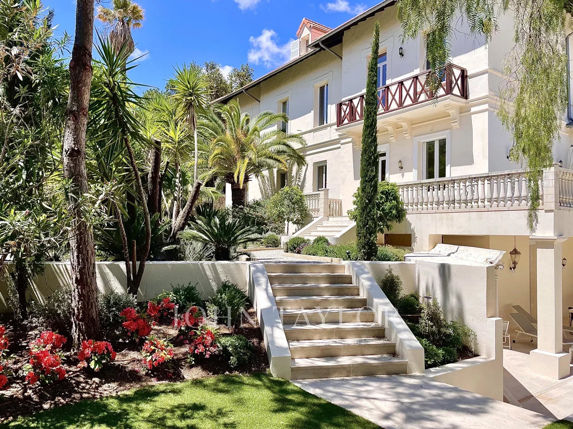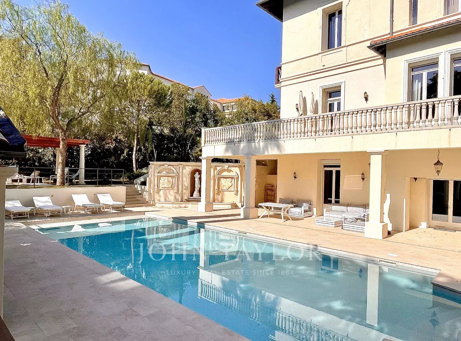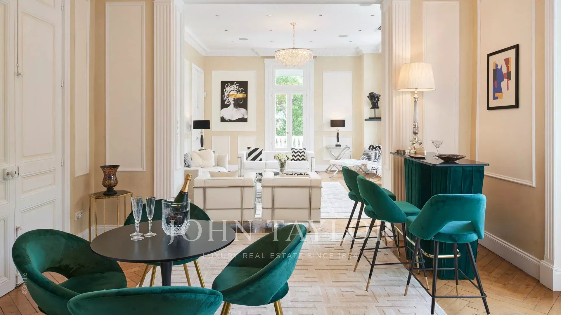 Situada numa zona residencial, a dois passos do coração de Cannes e a 10 minutos a pé do Palais des Festivals, esta luxuosa villa Belle Epoque com 650 m2 de espaço habitacional foi totalmente renovada e climatizada, e está situada em 2.500 m2 de parque.