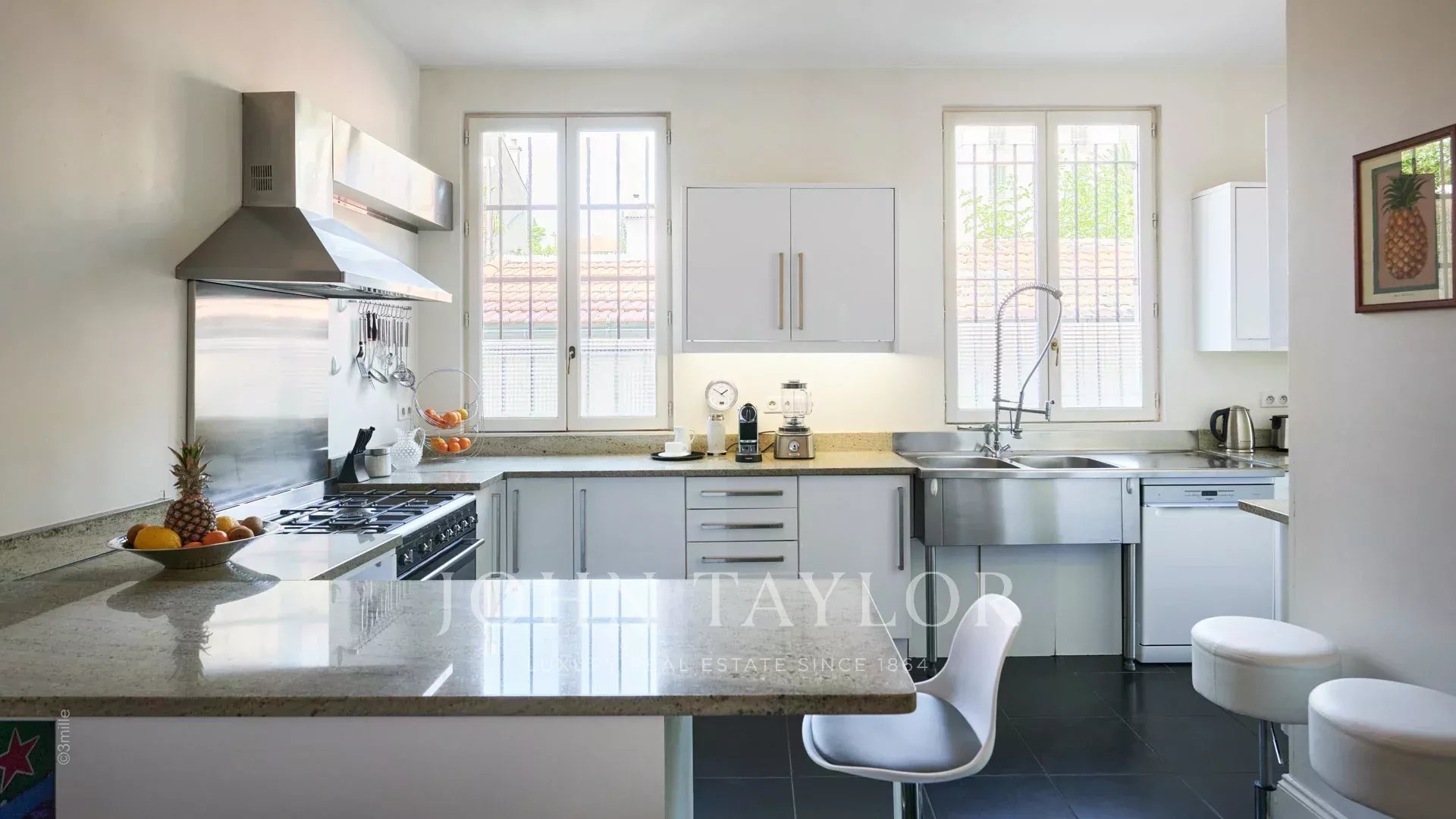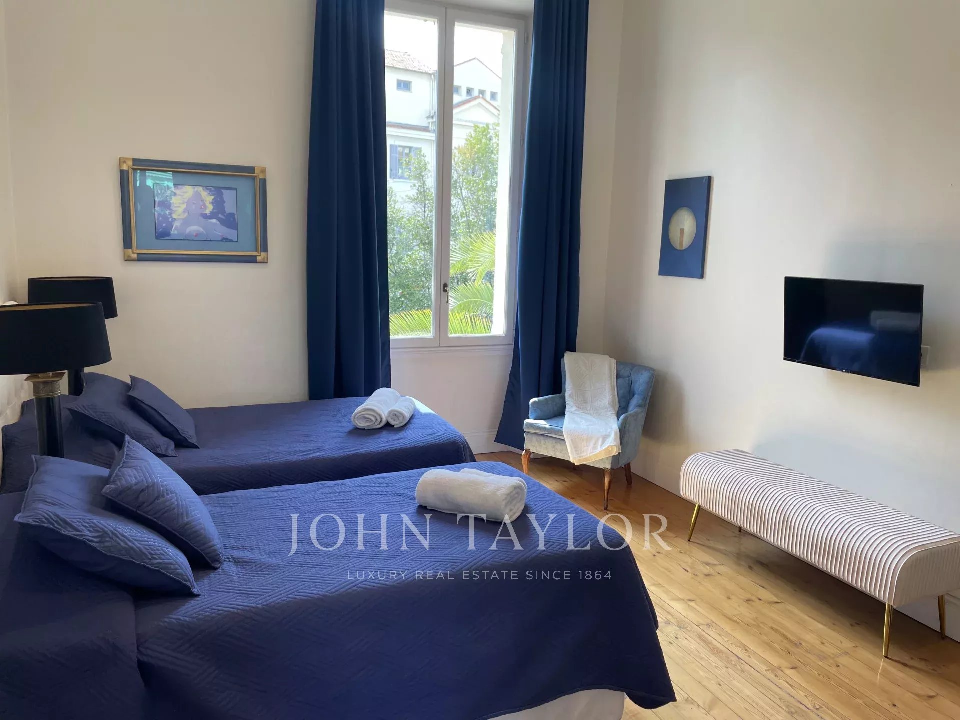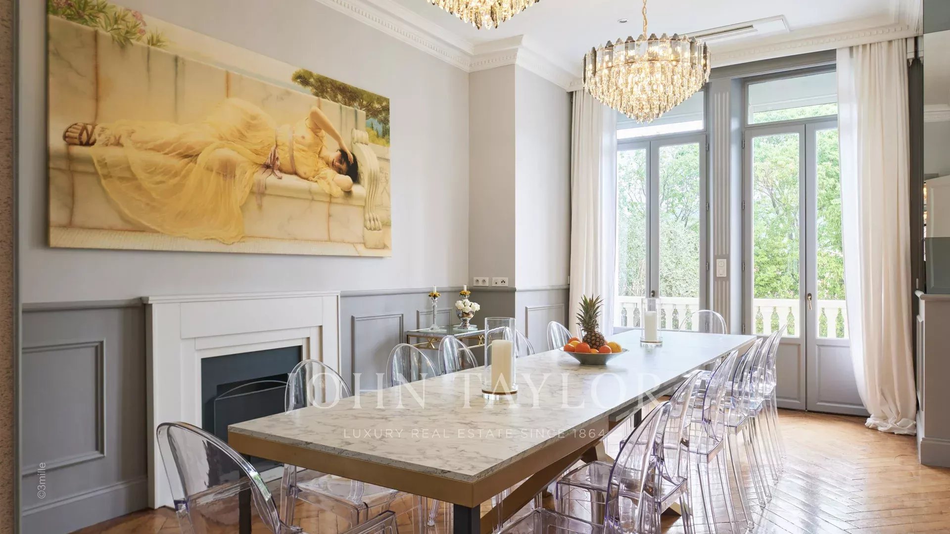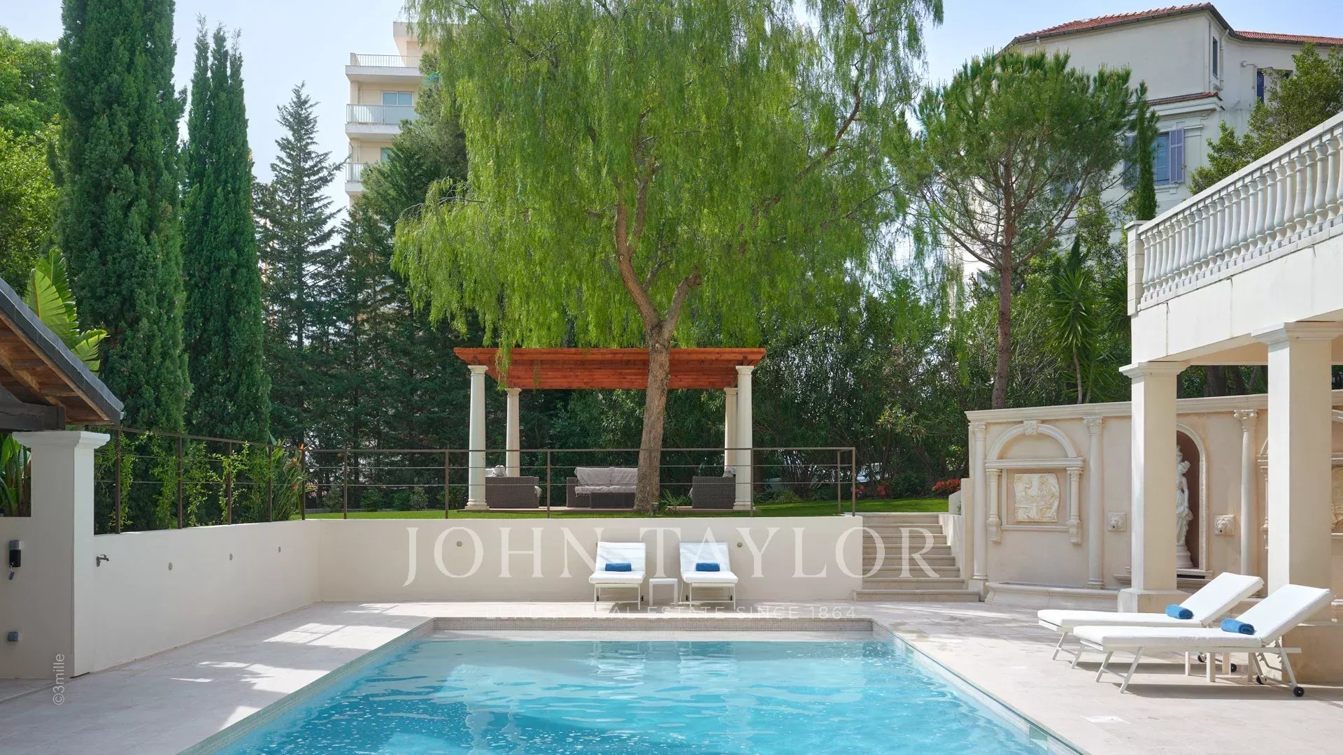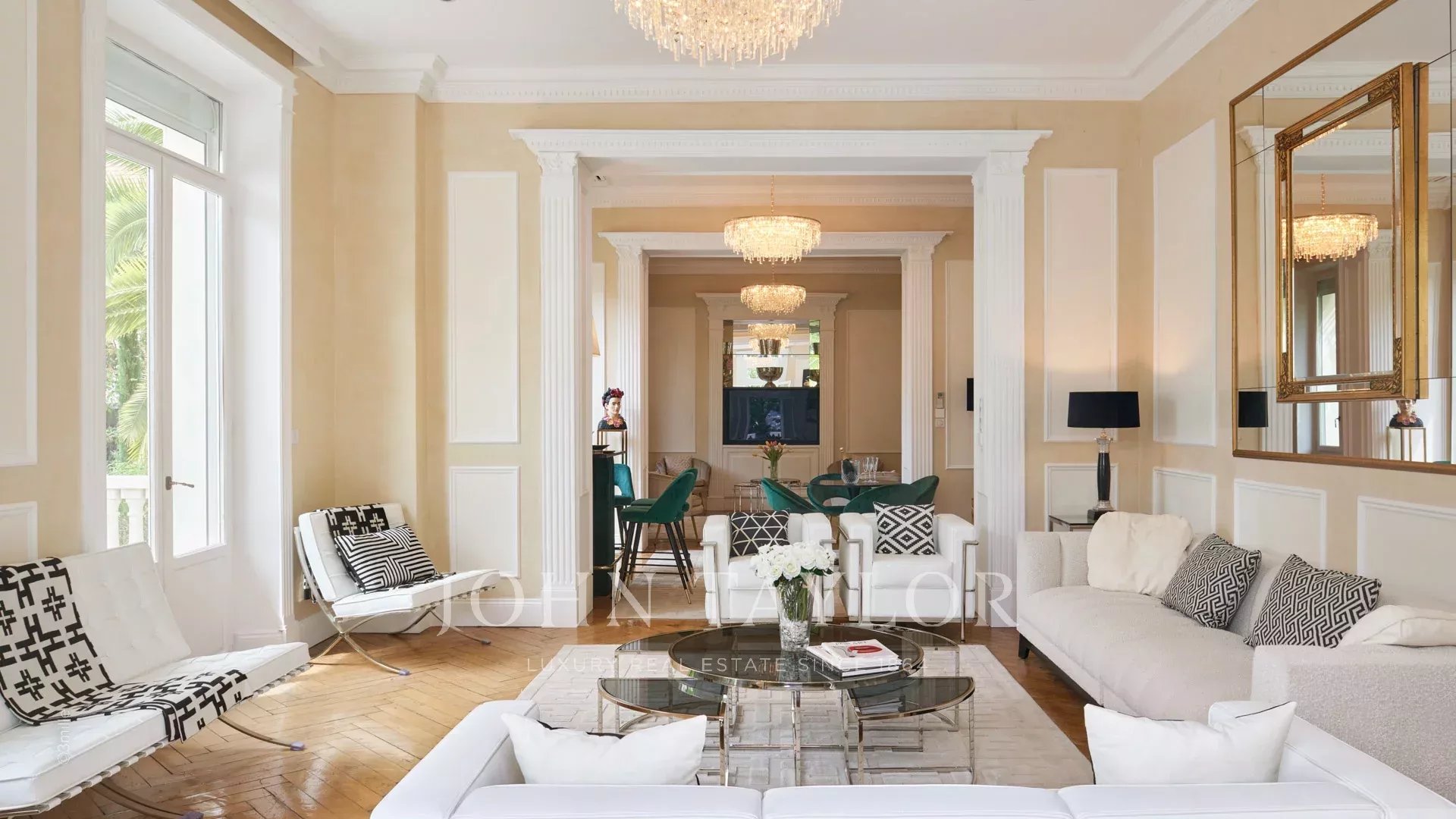 Situada numa zona residencial, a dois passos do coração de Cannes e a 10 minutos a pé do Palais des Festivals, esta luxuosa villa Belle Epoque com 650 m2 de espaço habitacional foi totalmente renovada e climatizada, e está situada em 2.500 m2 de parque.