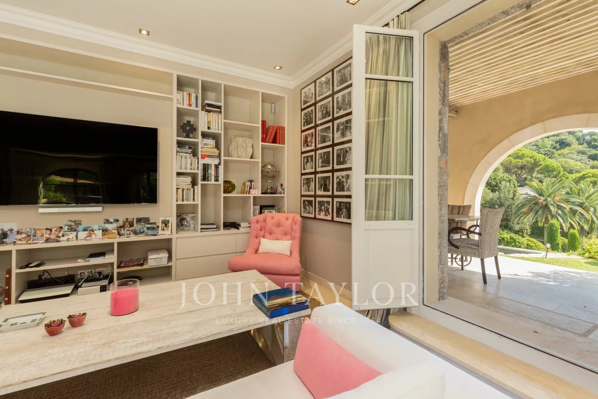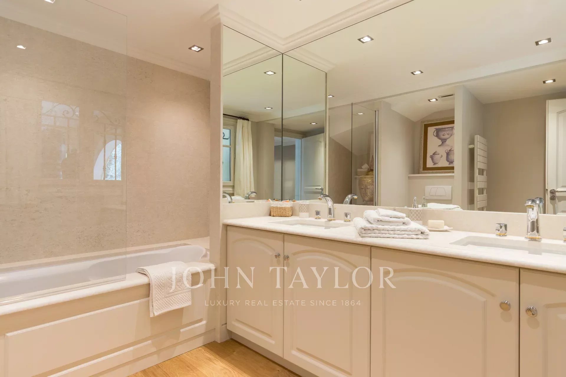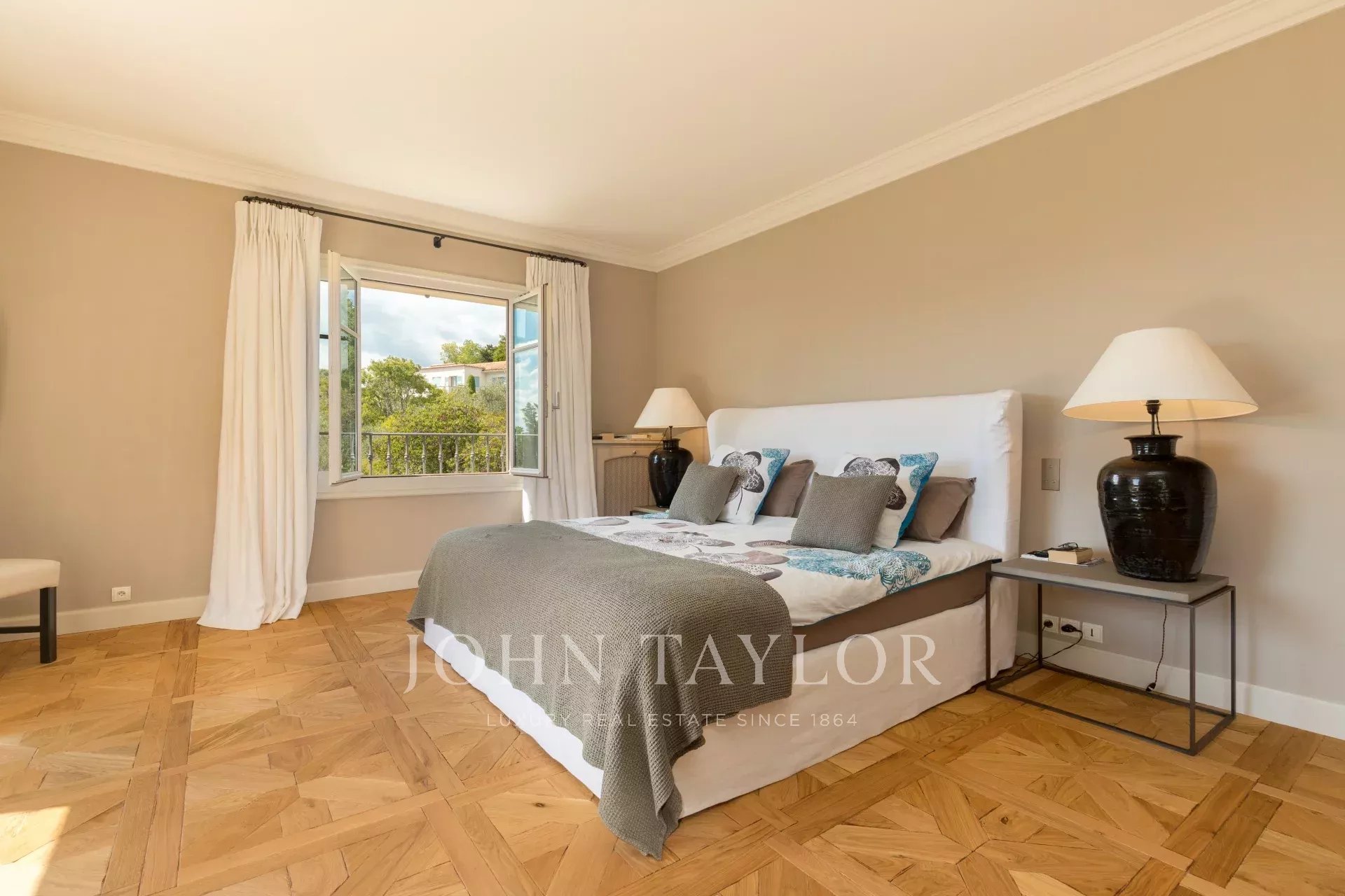 Apenas a alguns minutos a pé do centro da cidade, num dos bairros mais procurados de Cannes, esta bela propriedade possui vistas magníficas sobre o mar e a baía até ao Estérel.