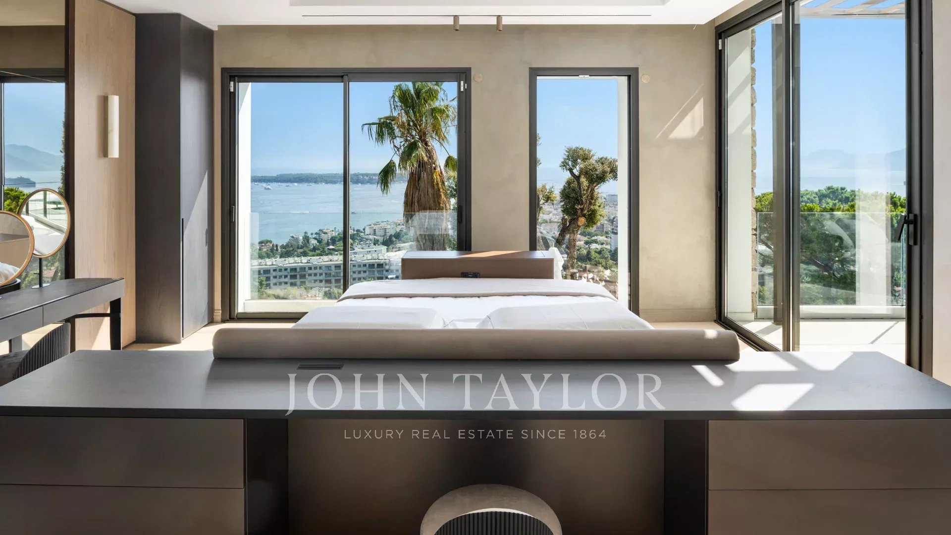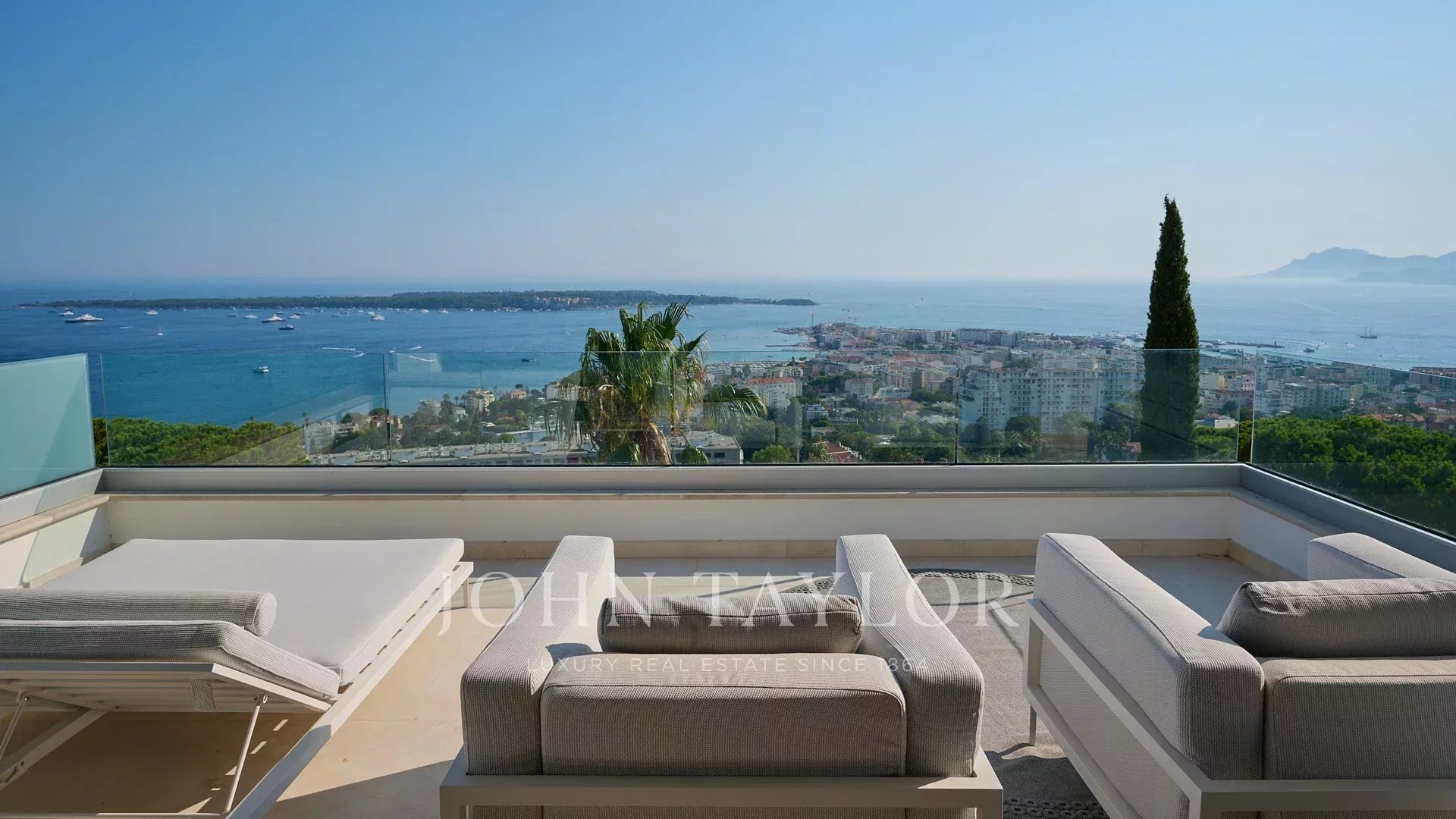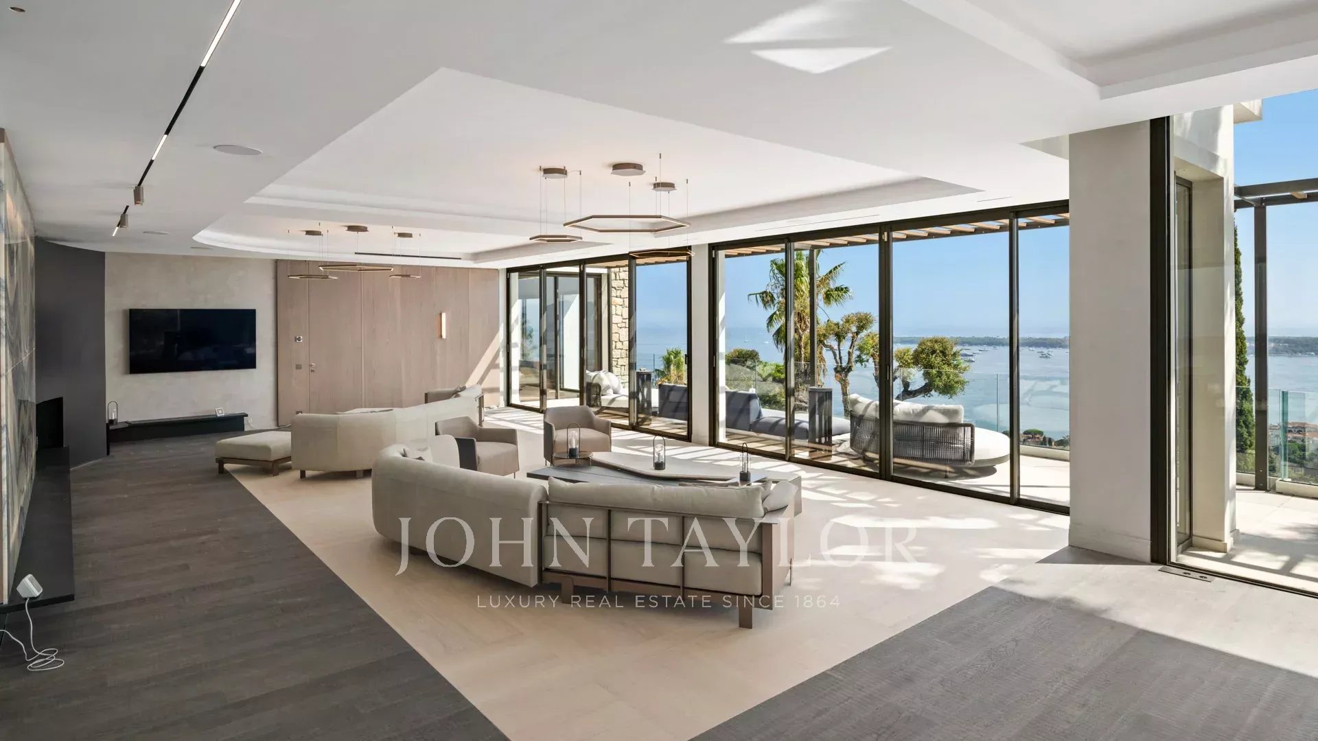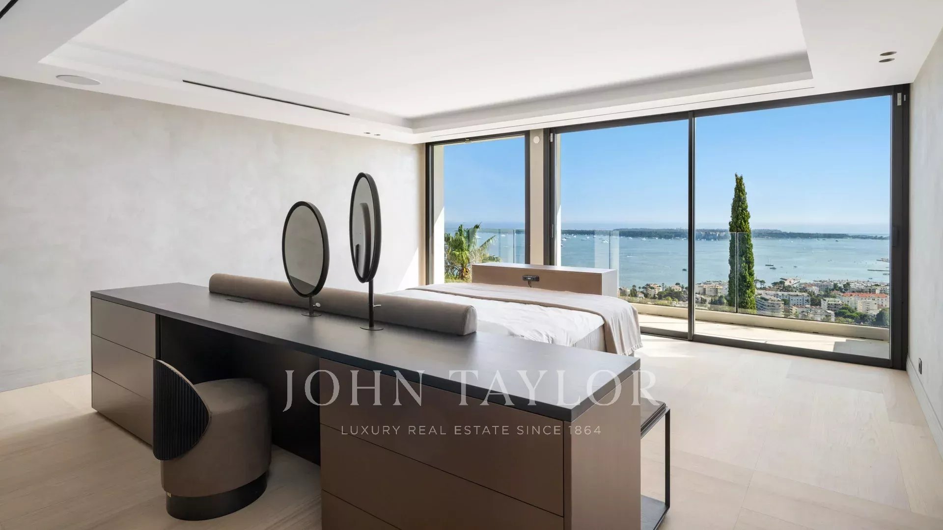 Com 550 m² de área habitacional, a villa apresenta uma decoração sofisticada e vistas ininterruptas sobre a Baía de Cannes e as Ilhas Lérins, garantindo panoramas de cortar a respiração.