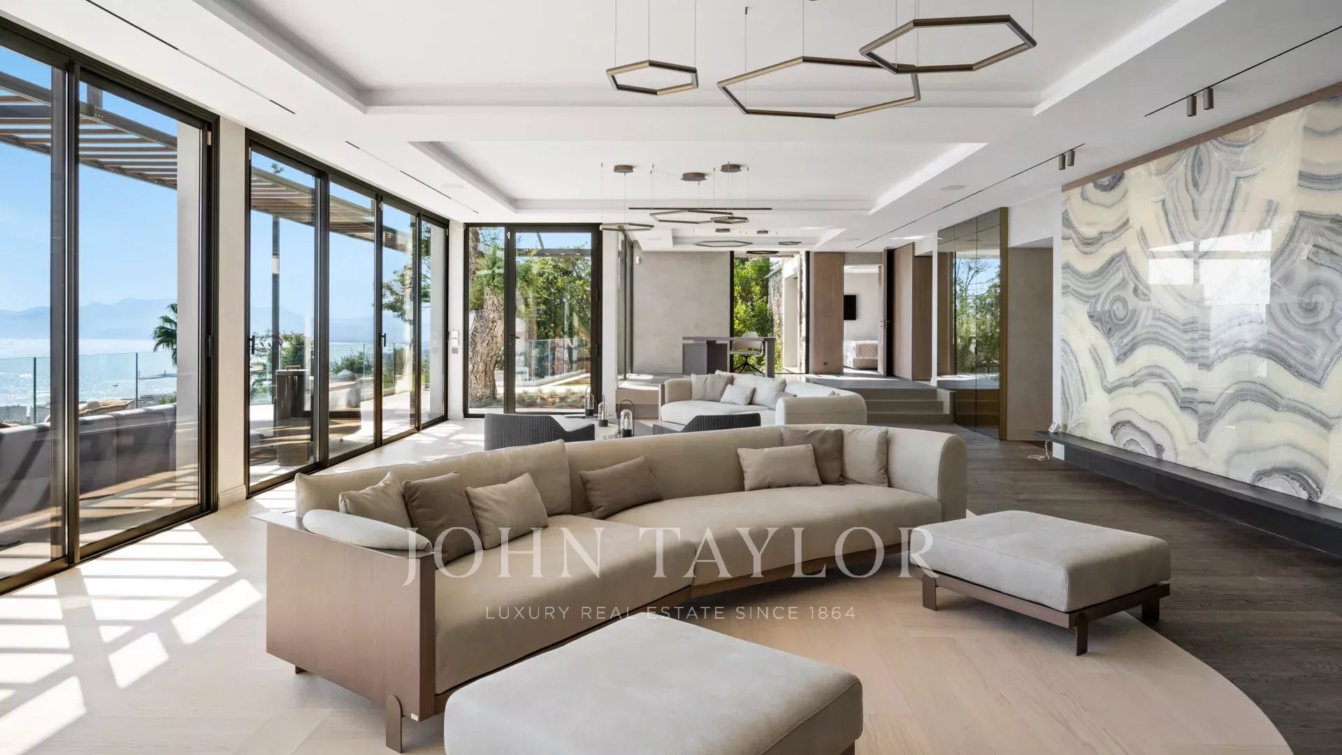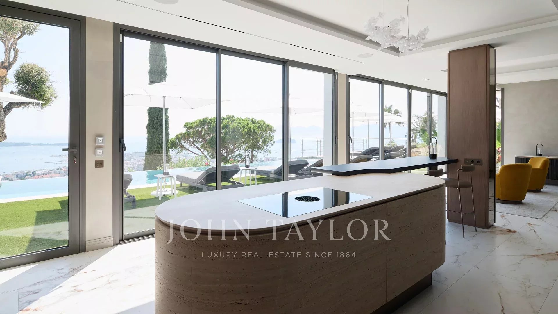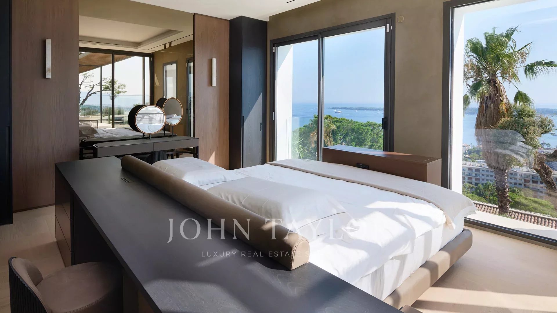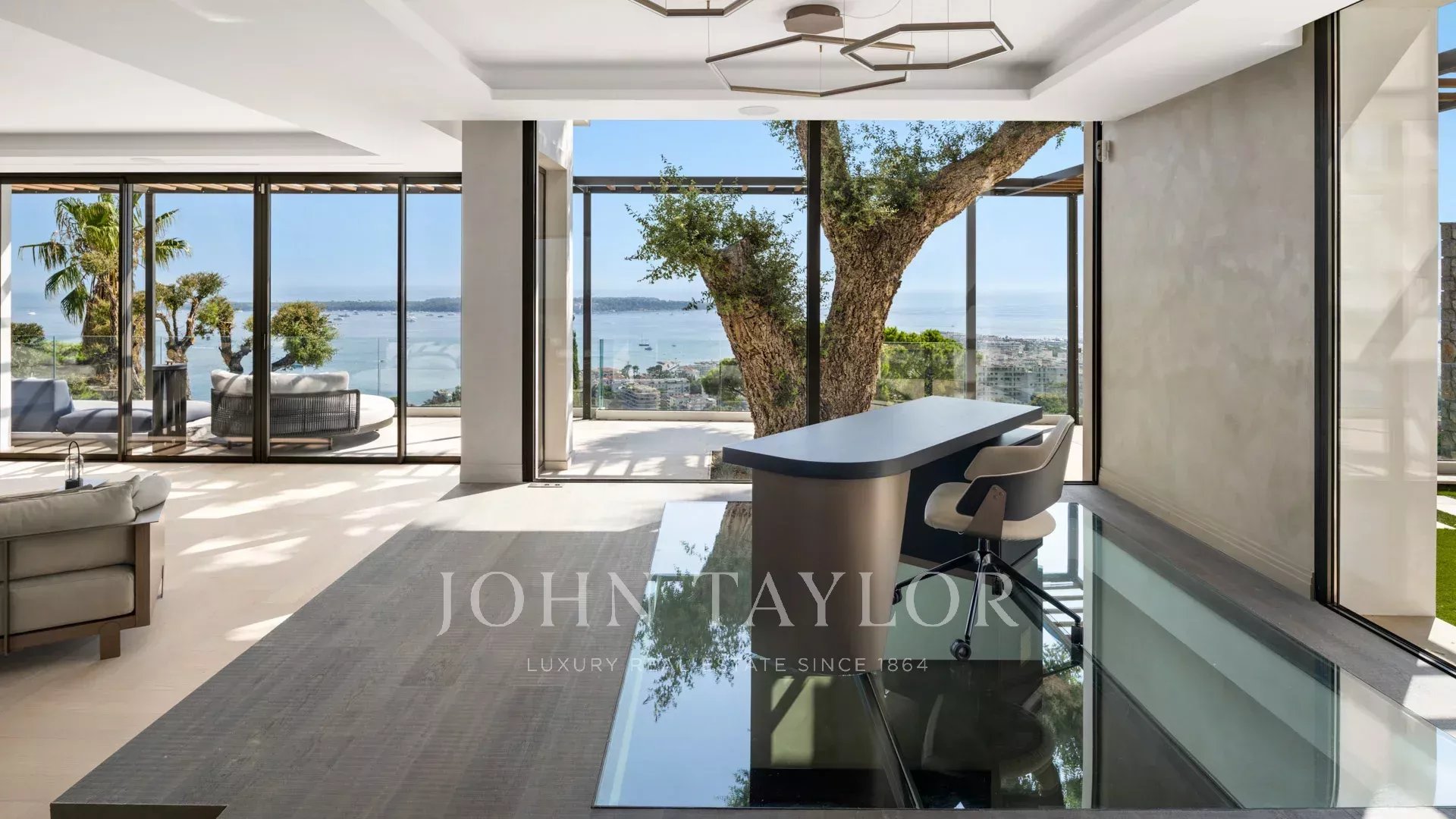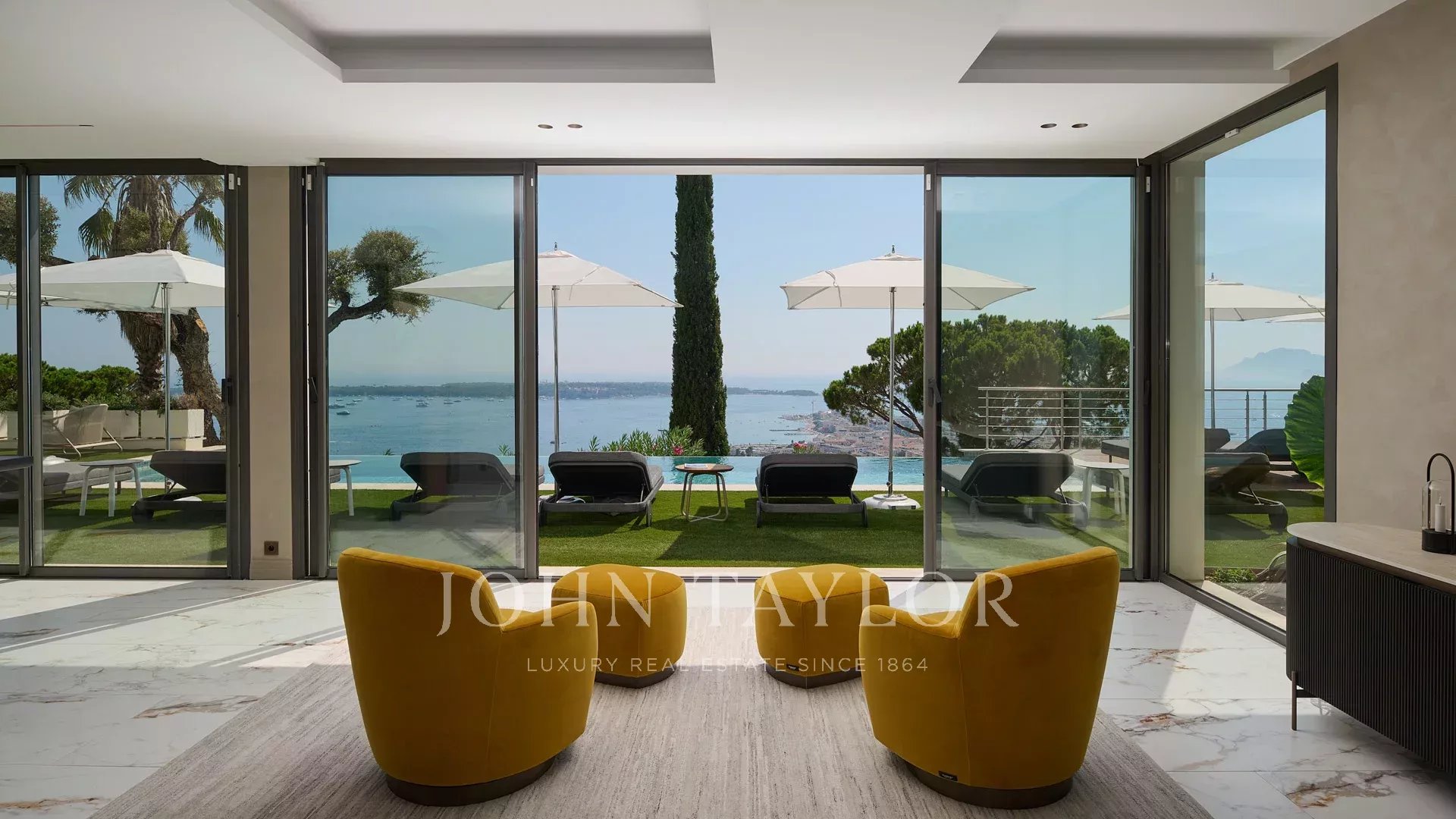 Com 550 m² de área habitacional, a villa apresenta uma decoração sofisticada e vistas ininterruptas sobre a Baía de Cannes e as Ilhas Lérins, garantindo panoramas de cortar a respiração.