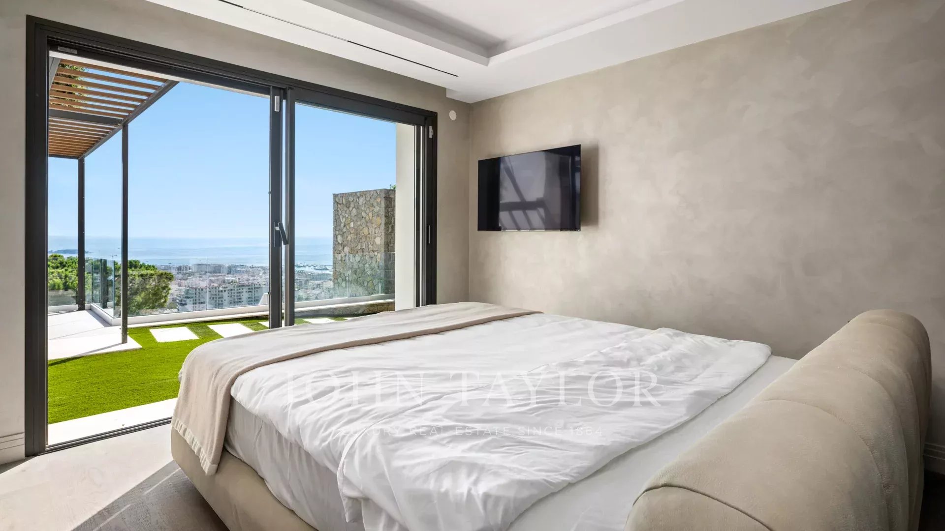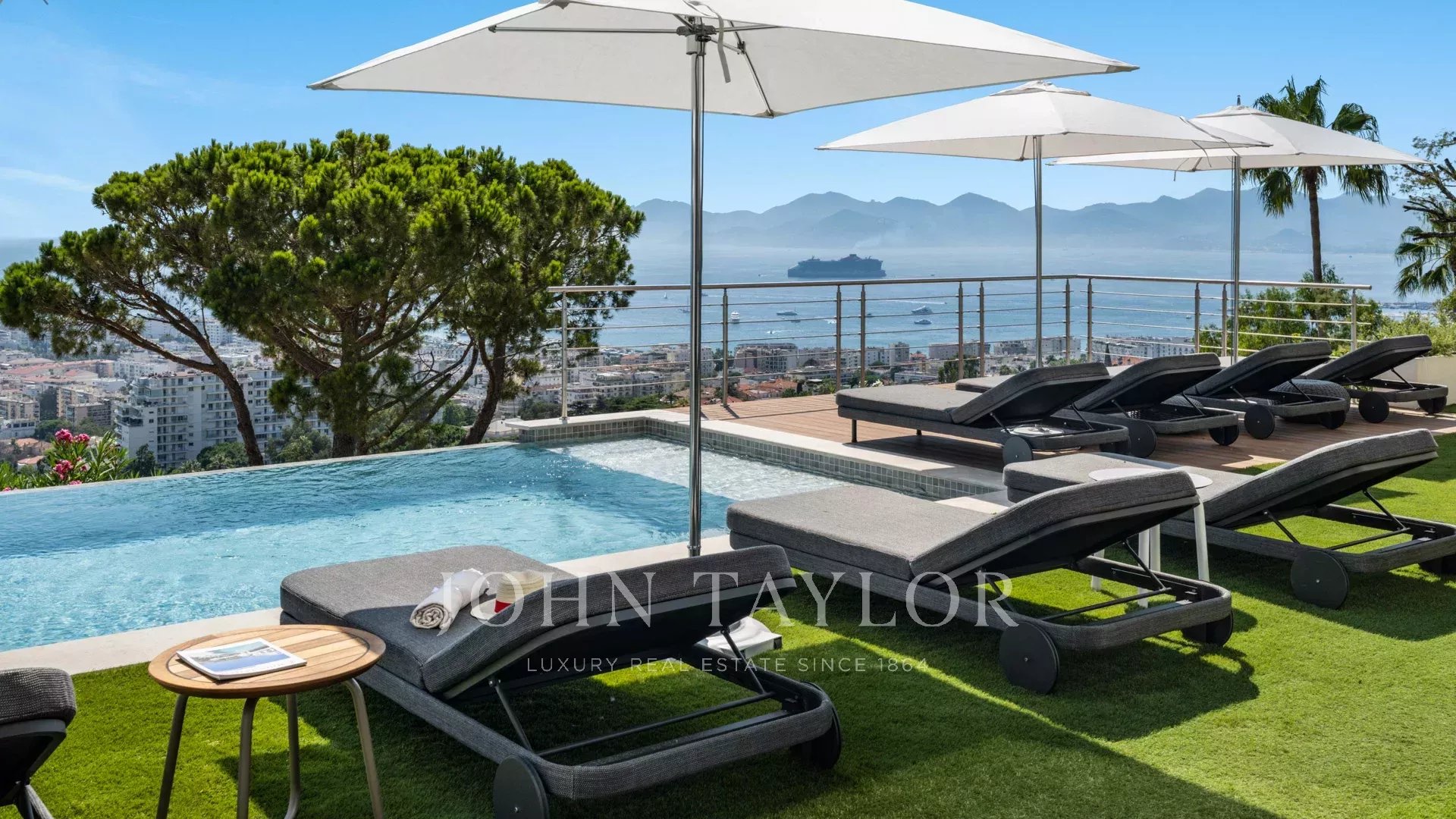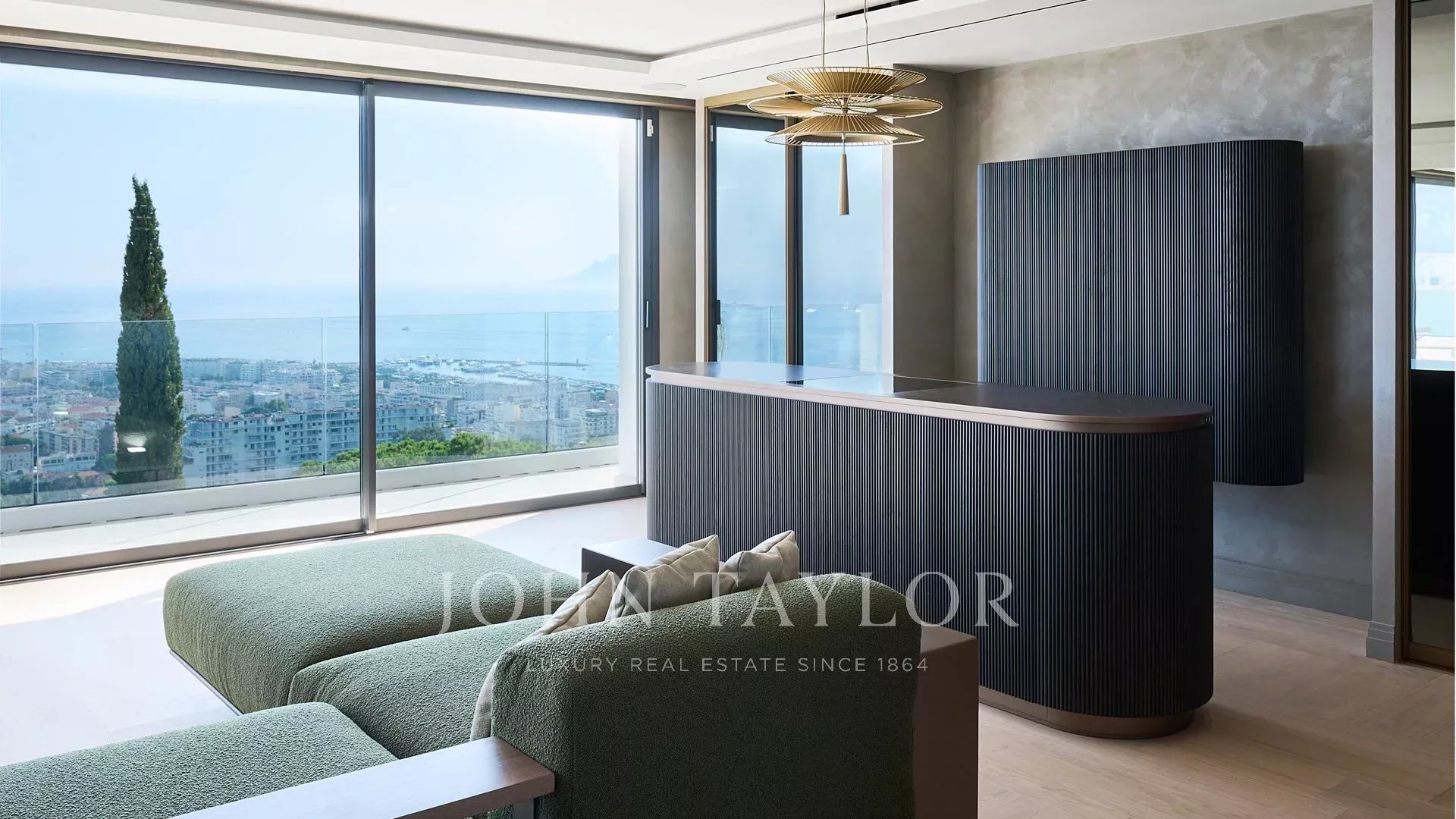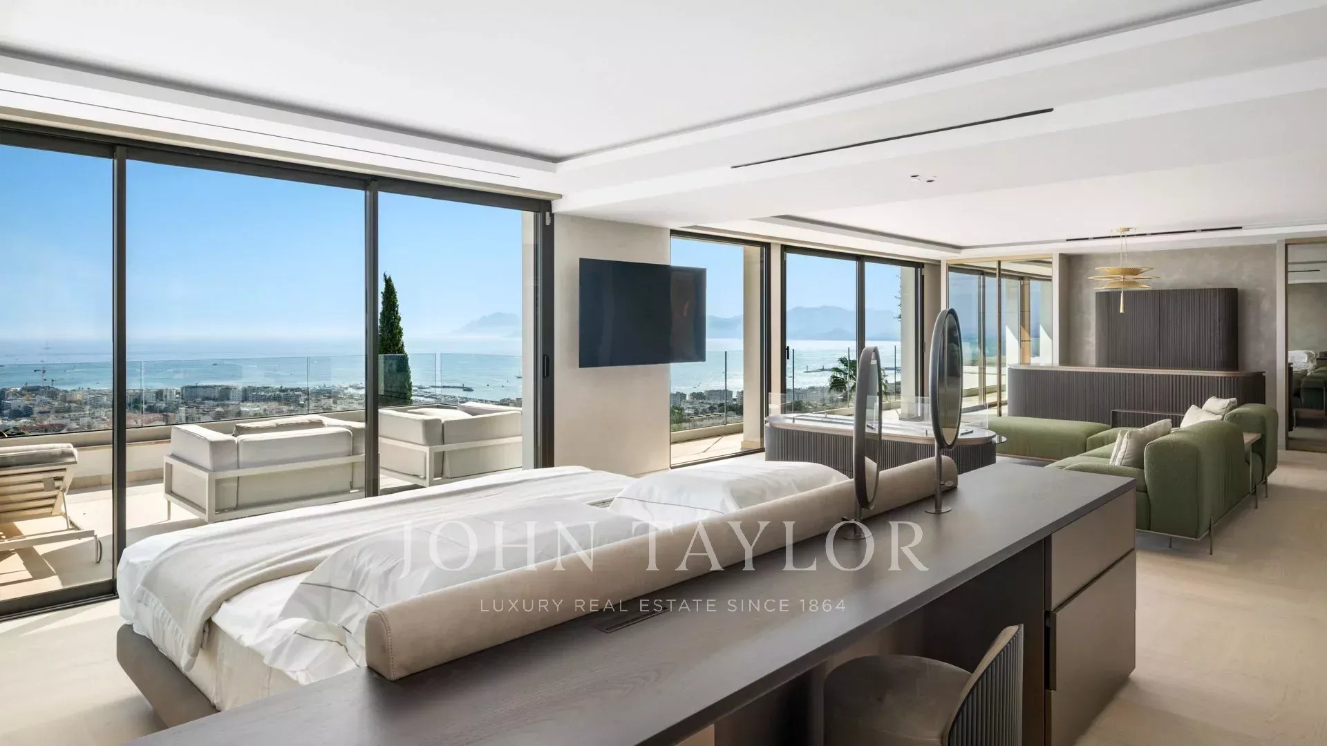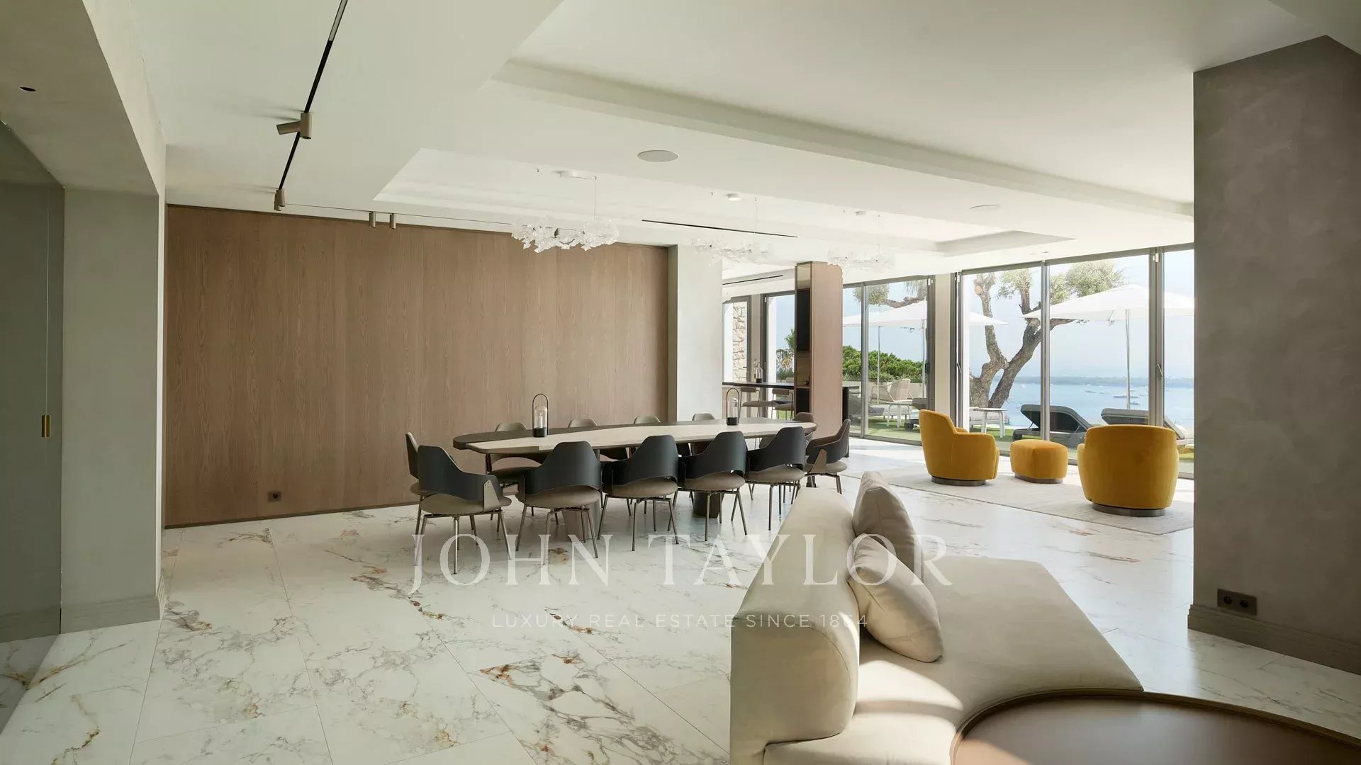 Com 550 m² de área habitacional, a villa apresenta uma decoração sofisticada e vistas ininterruptas sobre a Baía de Cannes e as Ilhas Lérins, garantindo panoramas de cortar a respiração.