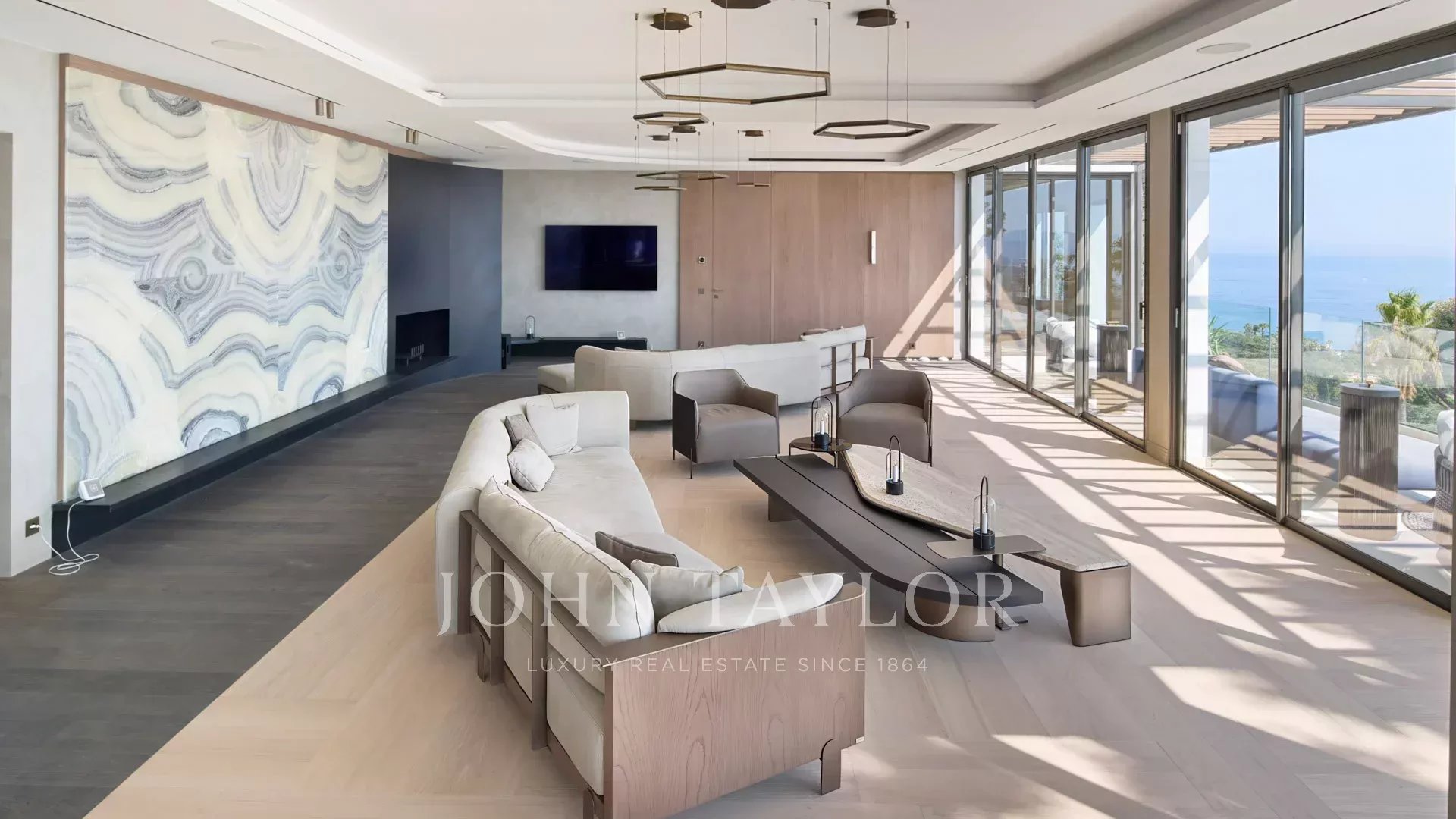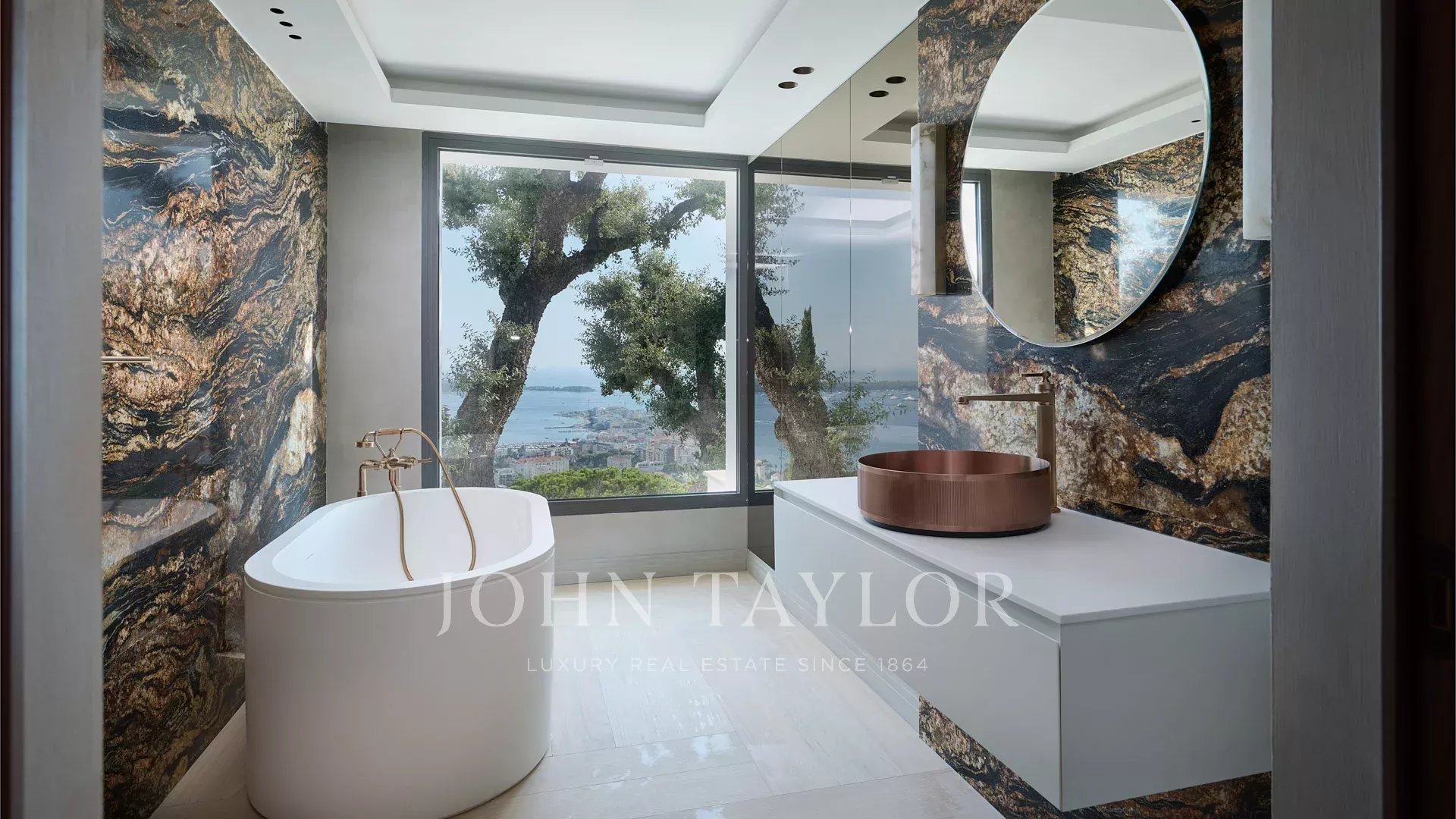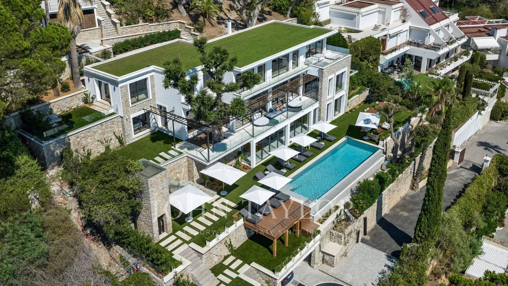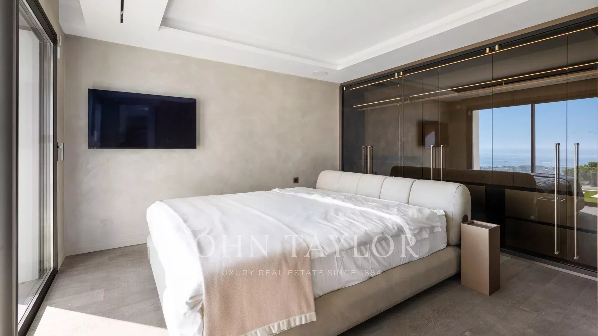 Com 550 m² de área habitacional, a villa apresenta uma decoração sofisticada e vistas ininterruptas sobre a Baía de Cannes e as Ilhas Lérins, garantindo panoramas de cortar a respiração.