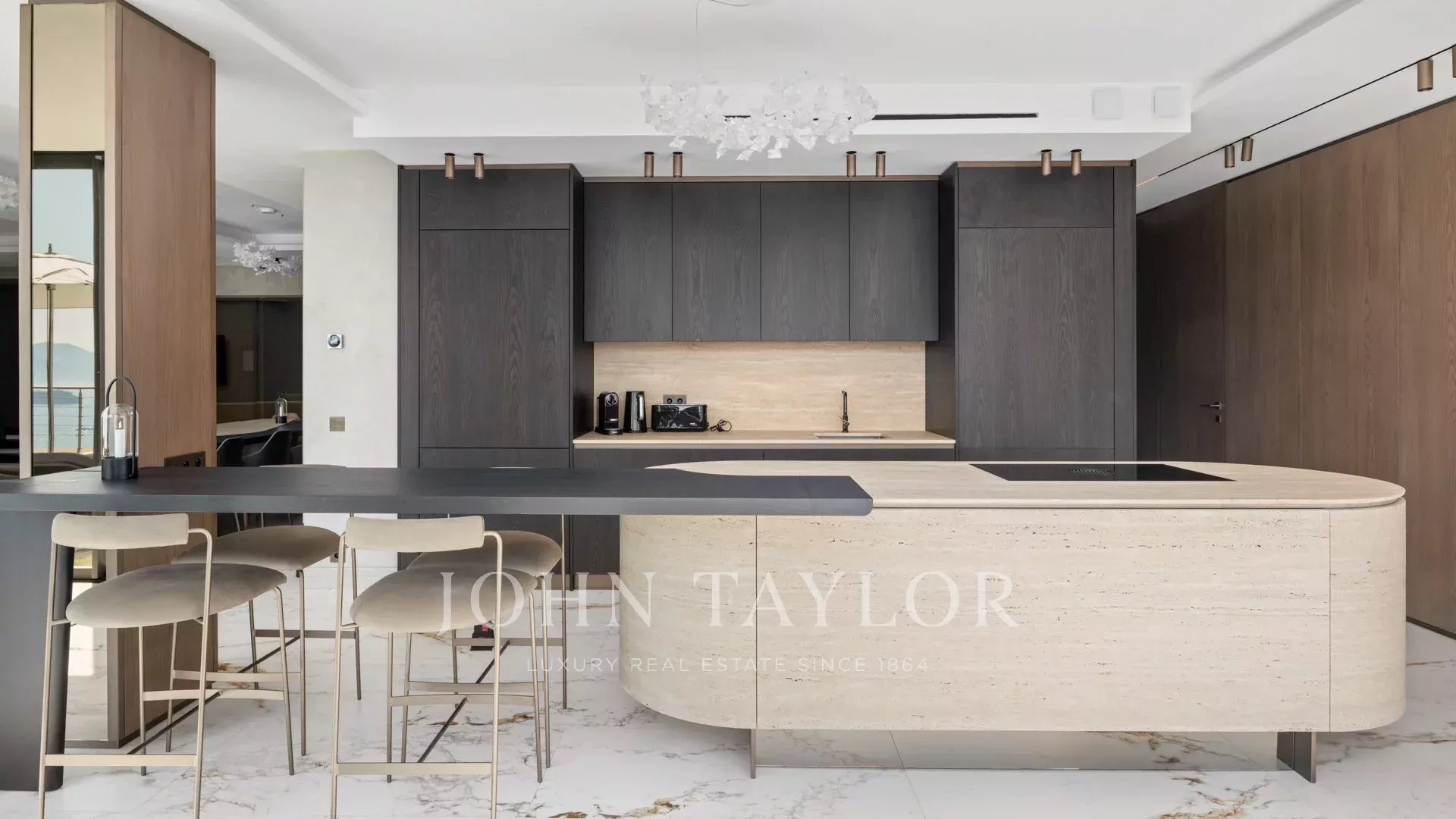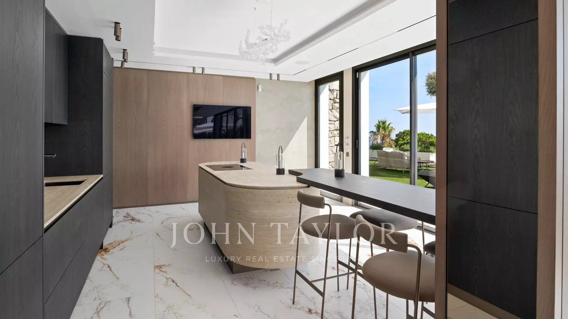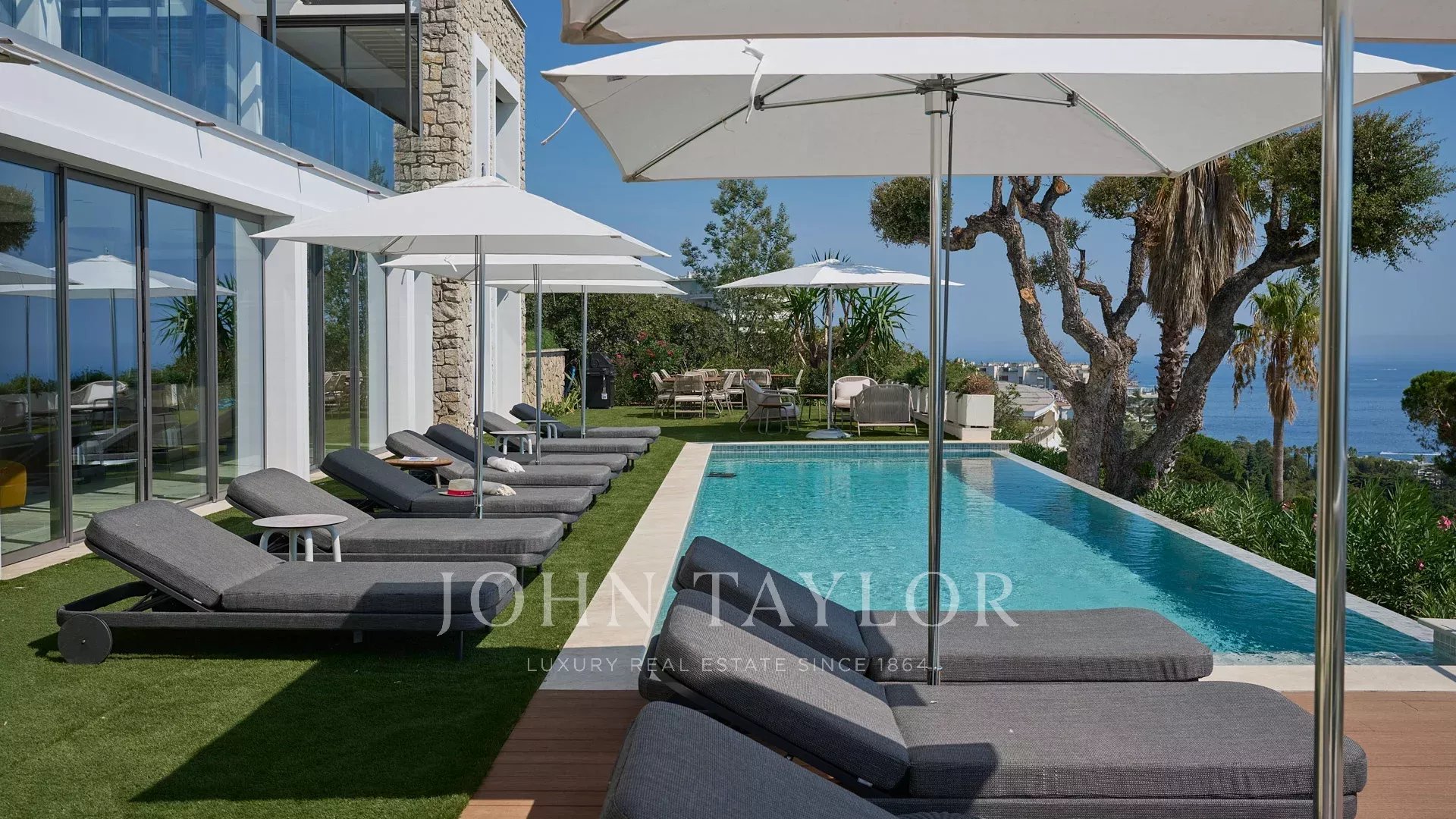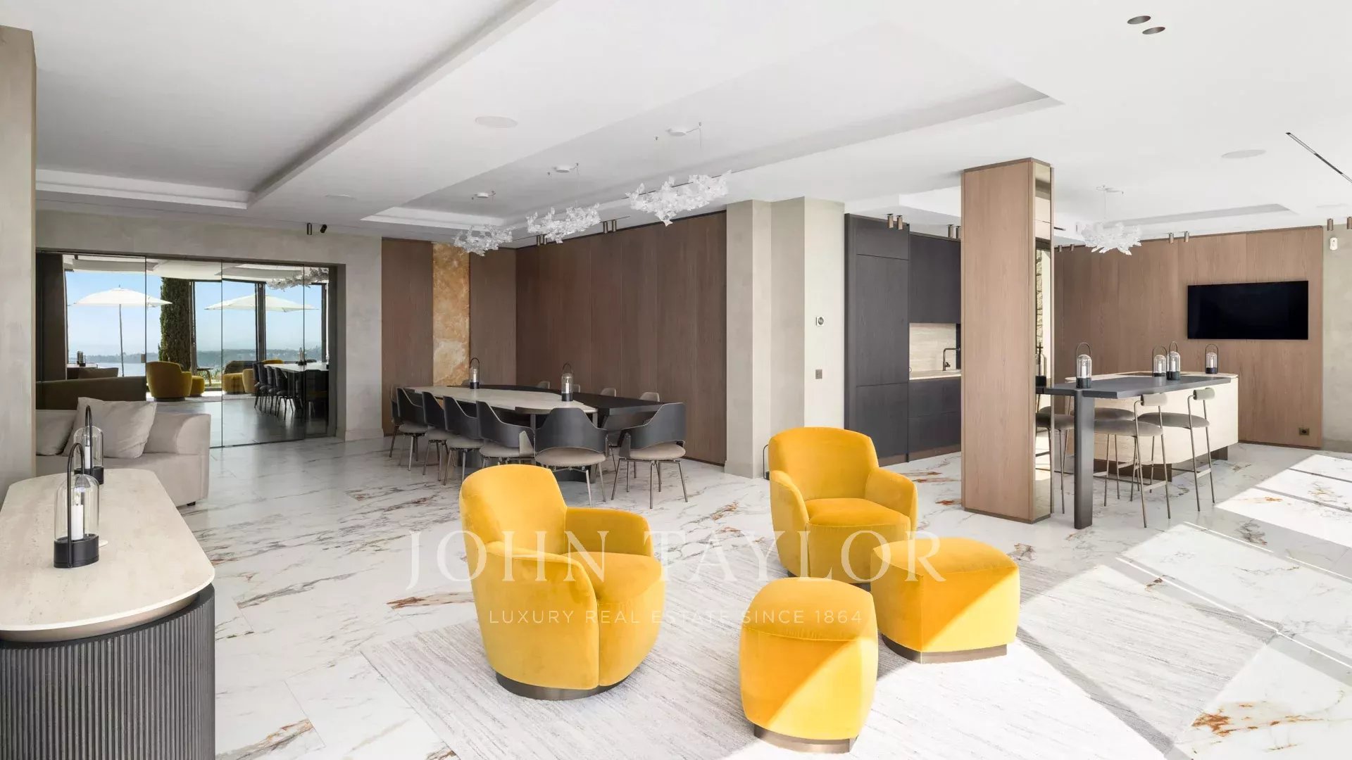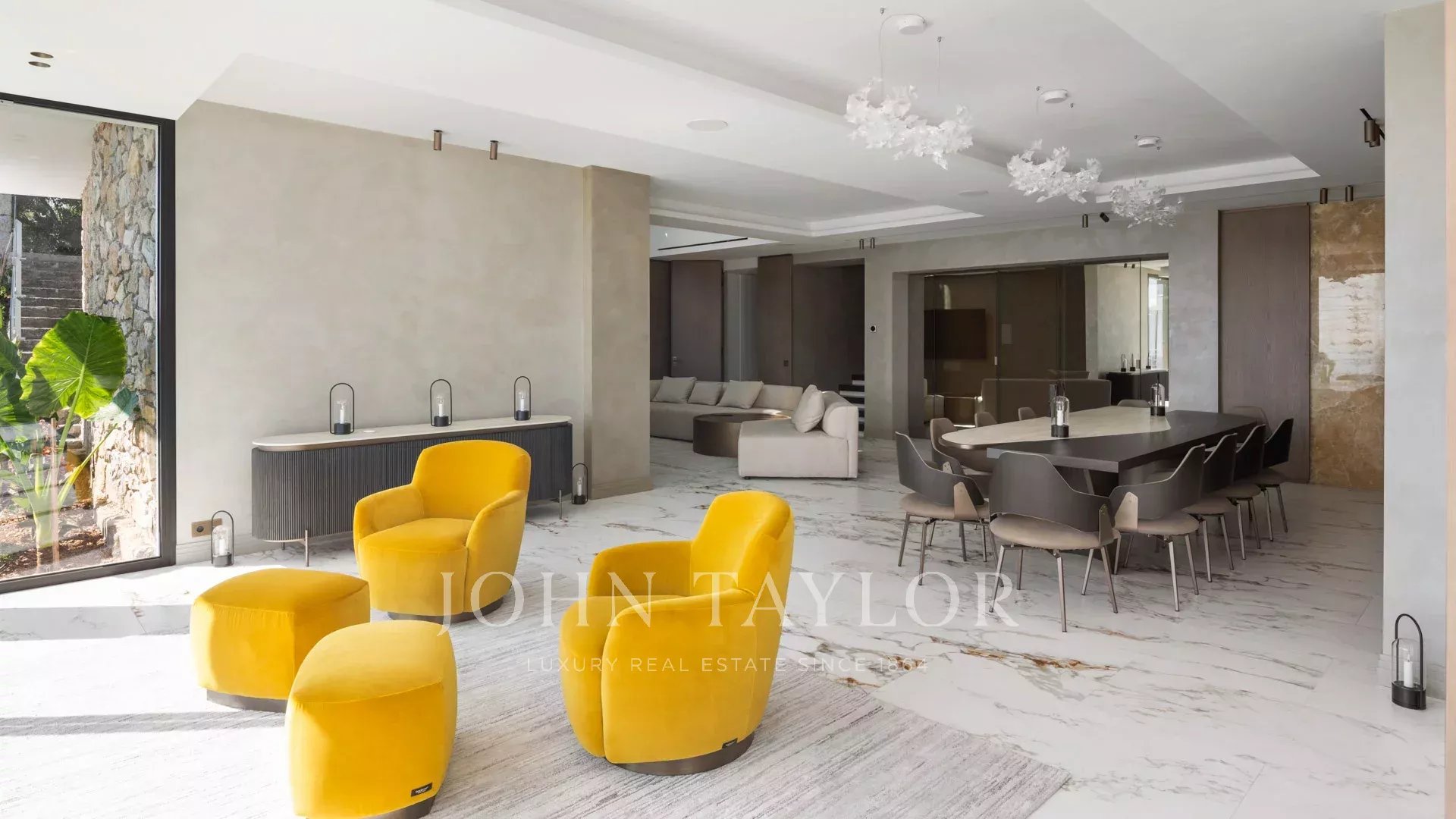 Com 550 m² de área habitacional, a villa apresenta uma decoração sofisticada e vistas ininterruptas sobre a Baía de Cannes e as Ilhas Lérins, garantindo panoramas de cortar a respiração.